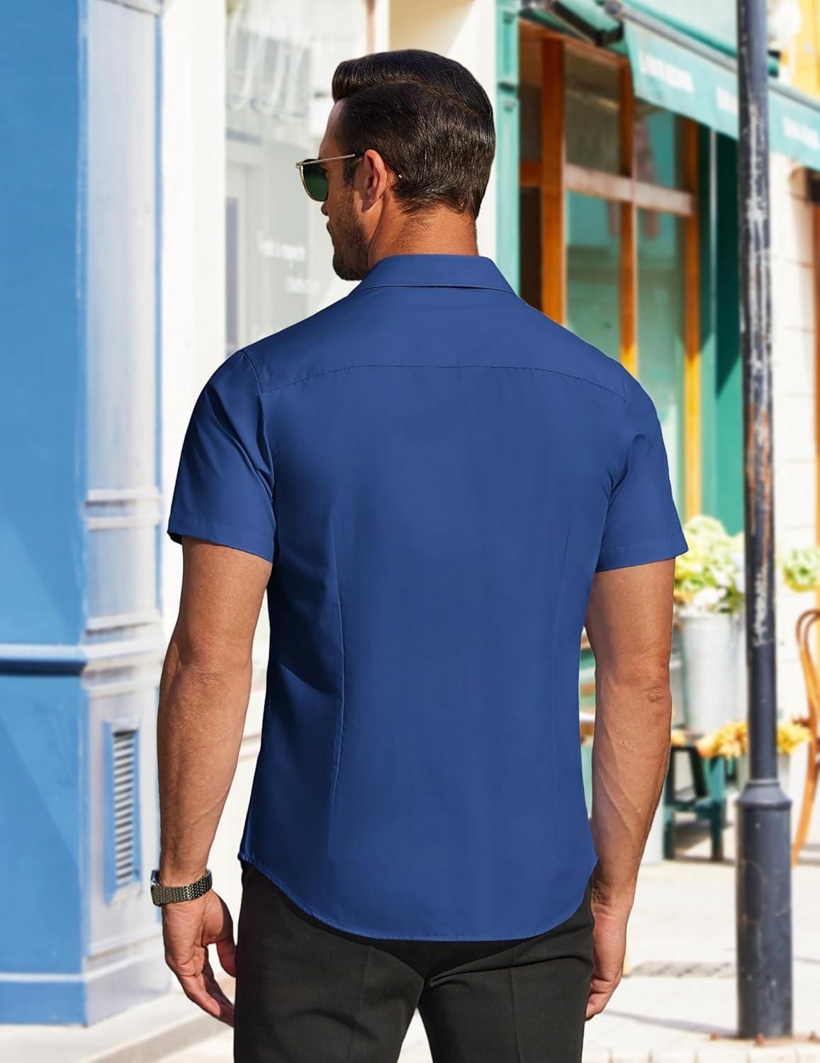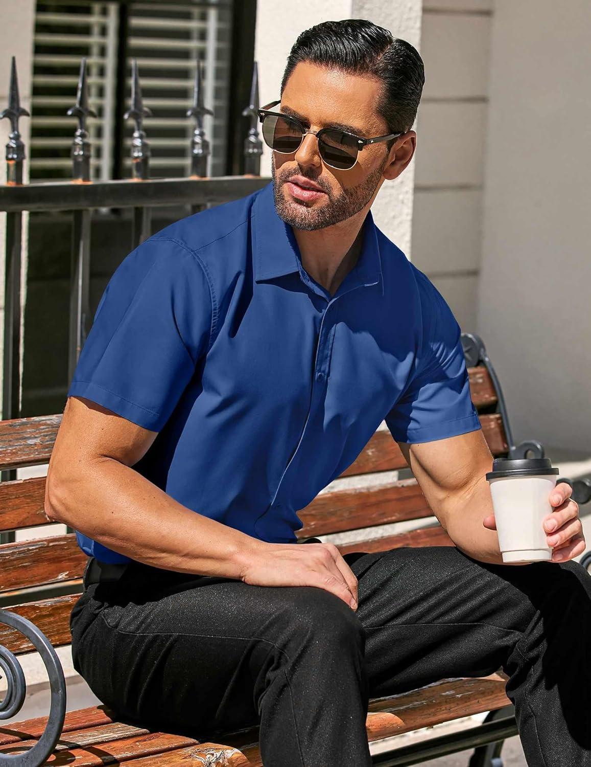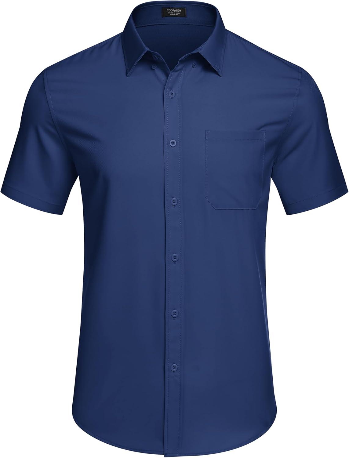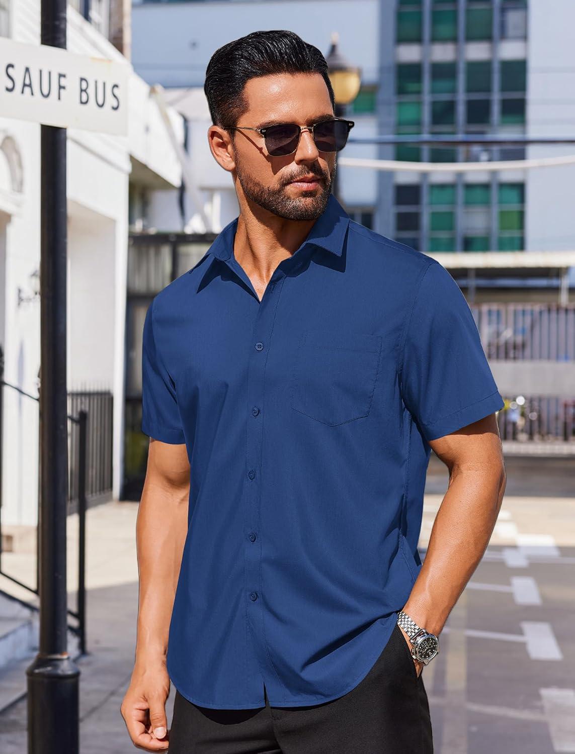 COOFANDY Mens Casual Dress Shirt Short Sleeve Wrinkle Free Dress Shirt Business Casual Shirts(Deep Blue)