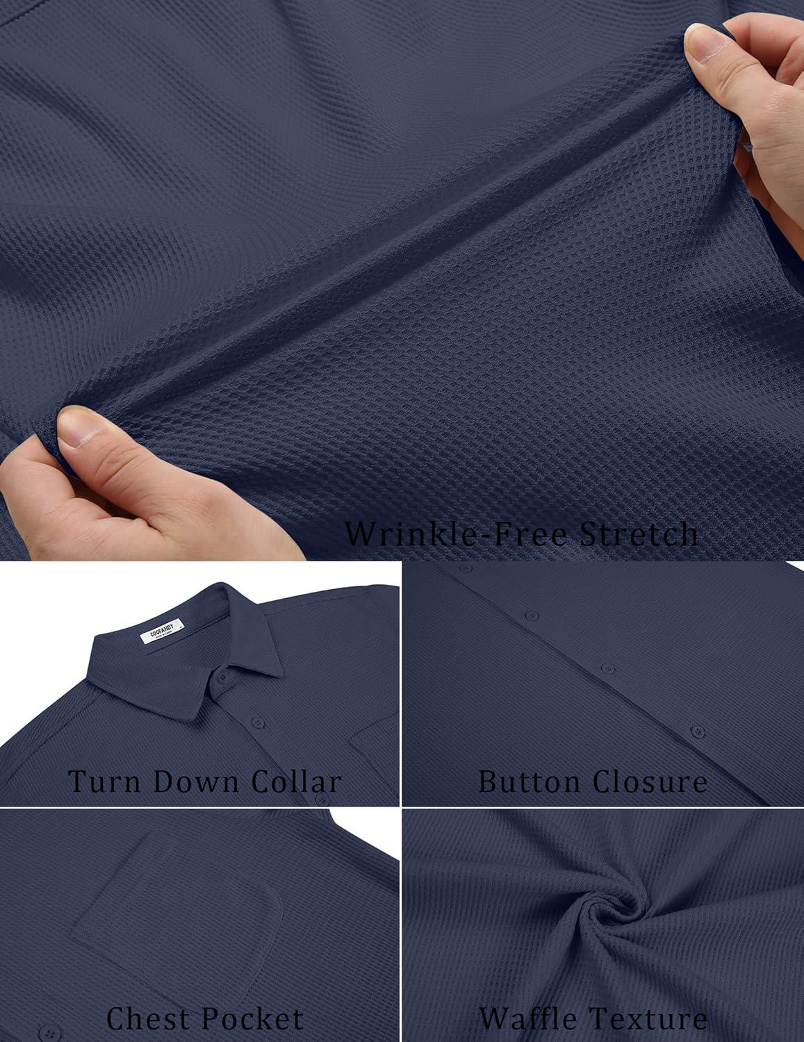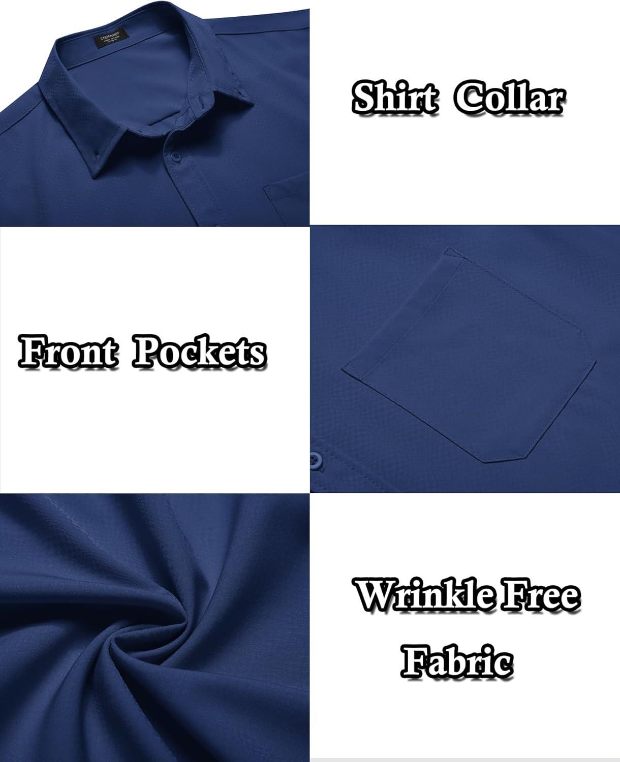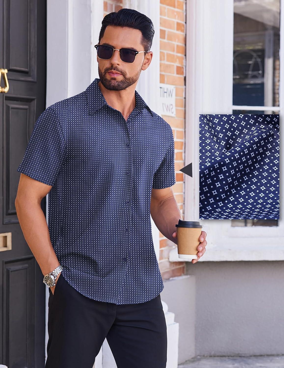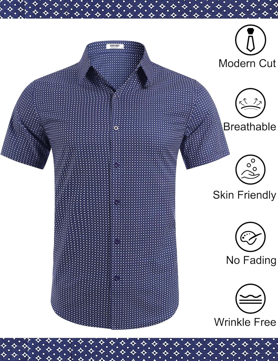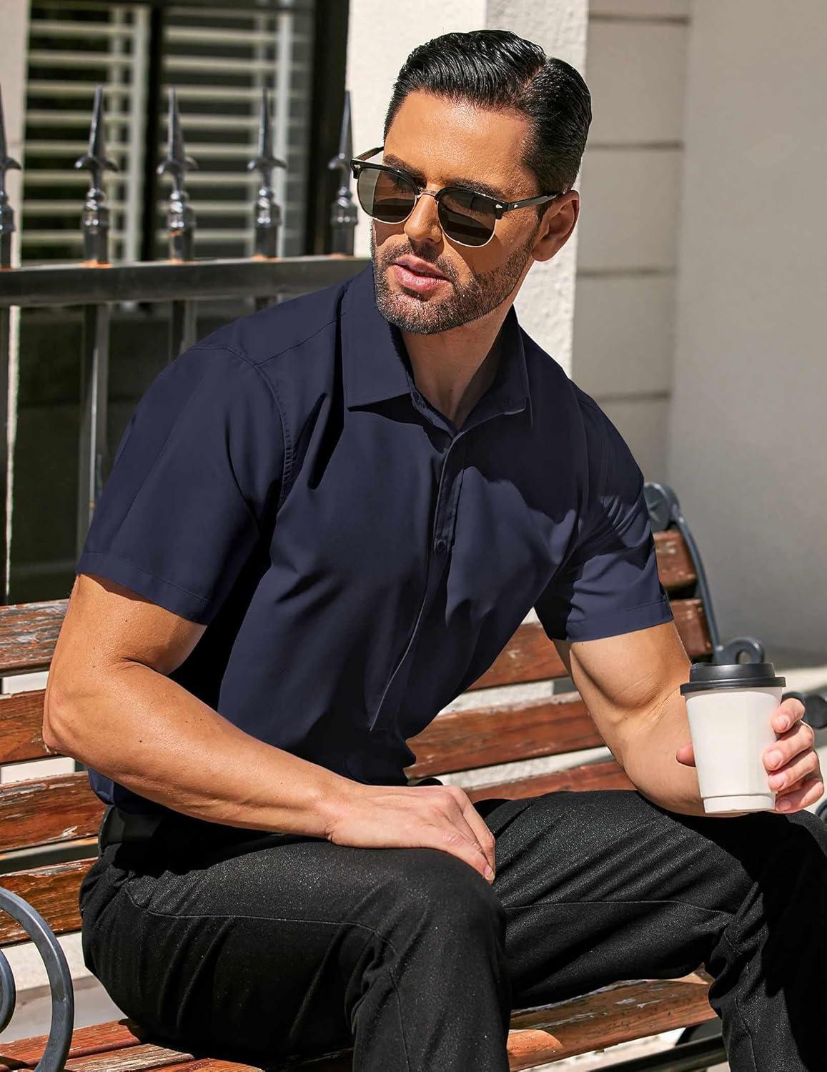 COOFANDY Mens Casual Dress Shirt Short Sleeve Wrinkle Free Dress Shirt Business Casual Shirts(Deep Blue)