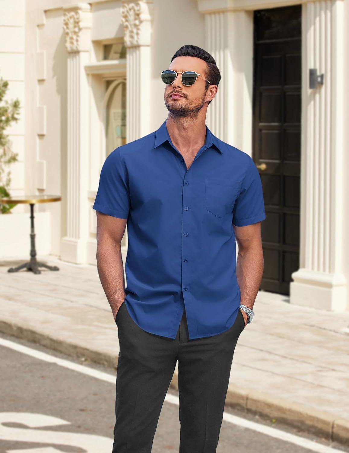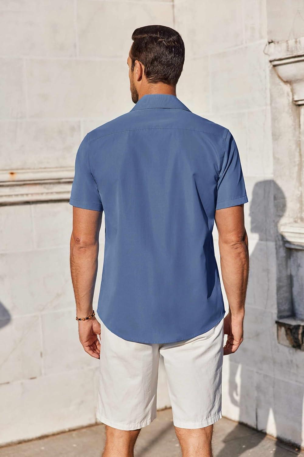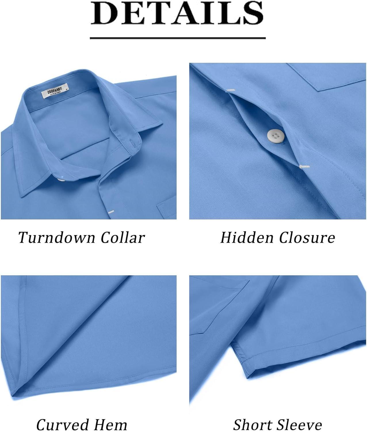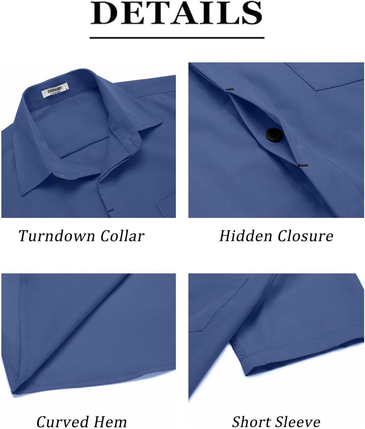 COOFANDY Mens Short Sleeve Dress Shirts Wrinkle Free Button Down Shirts Stain Shield Shirts with Pocket(Denim Blue)