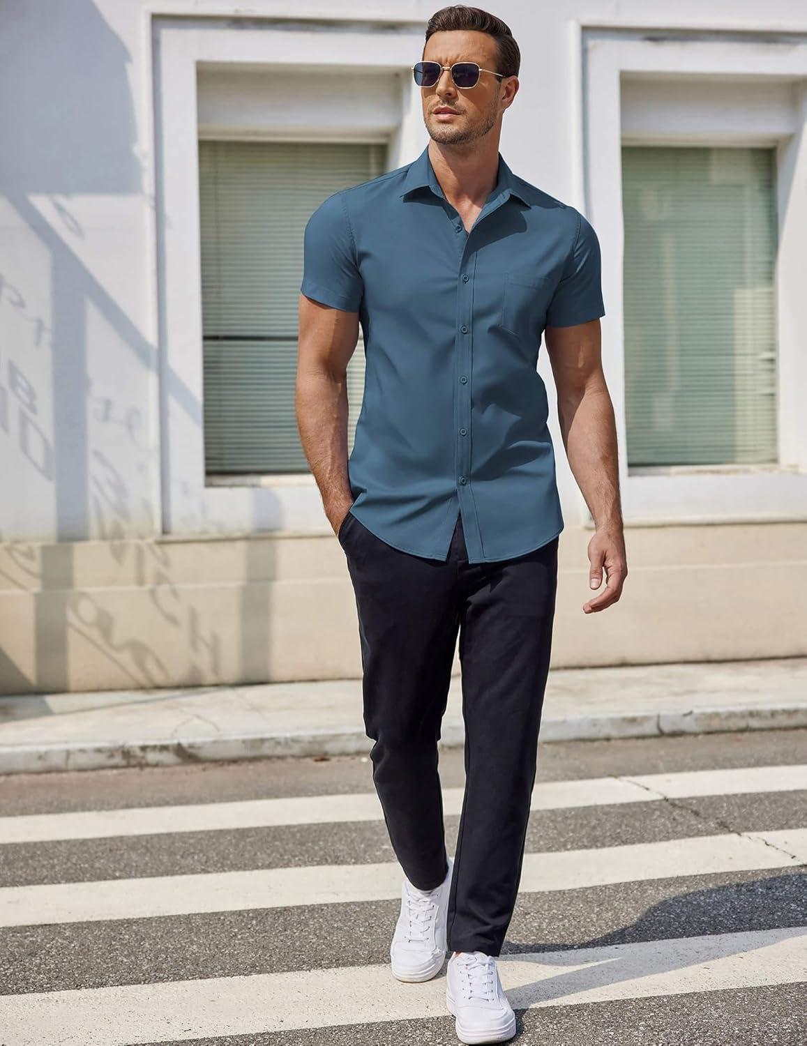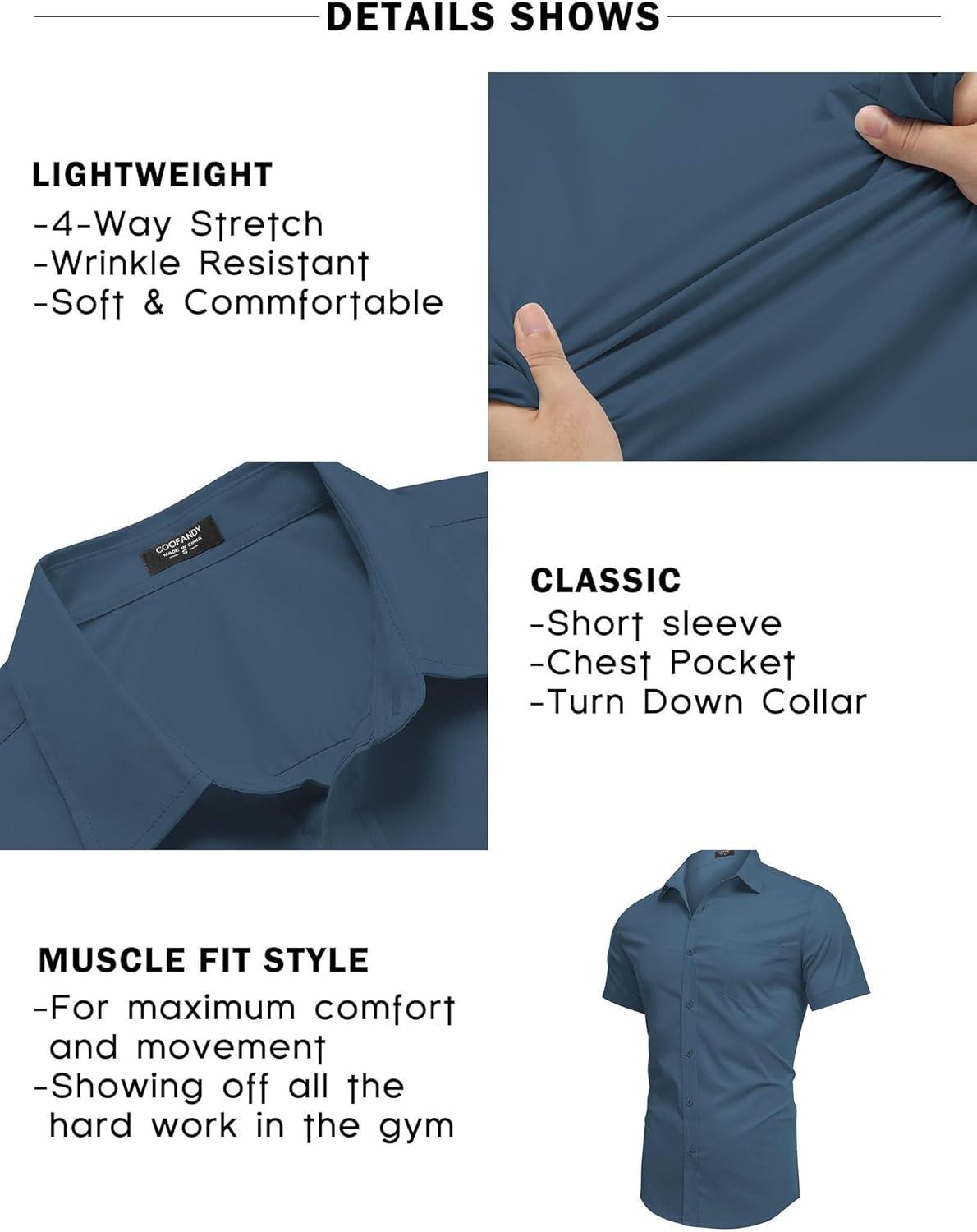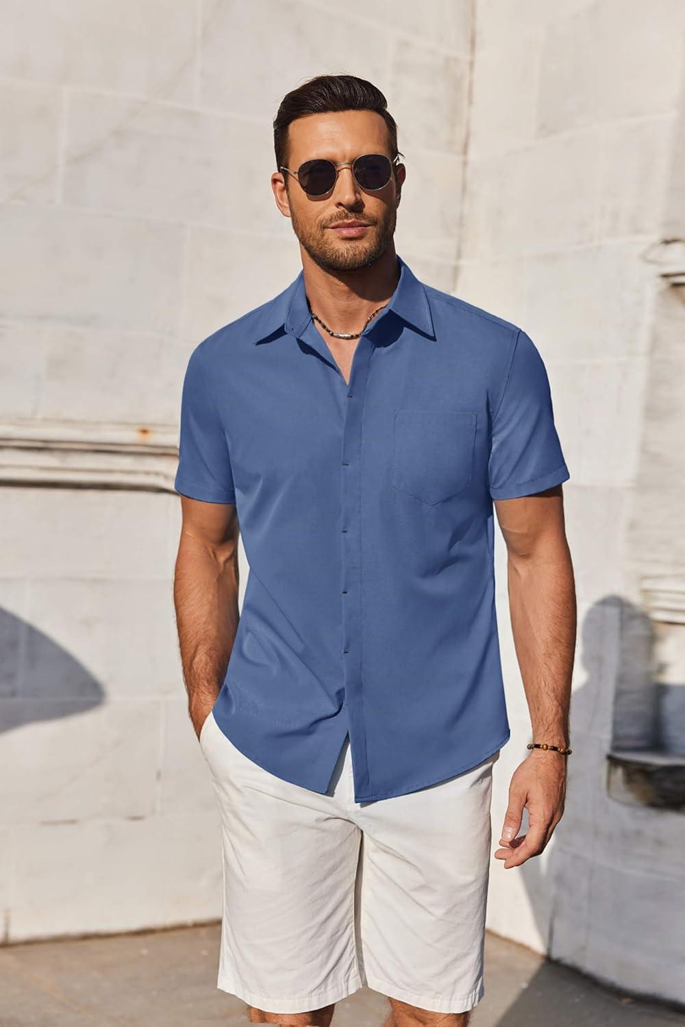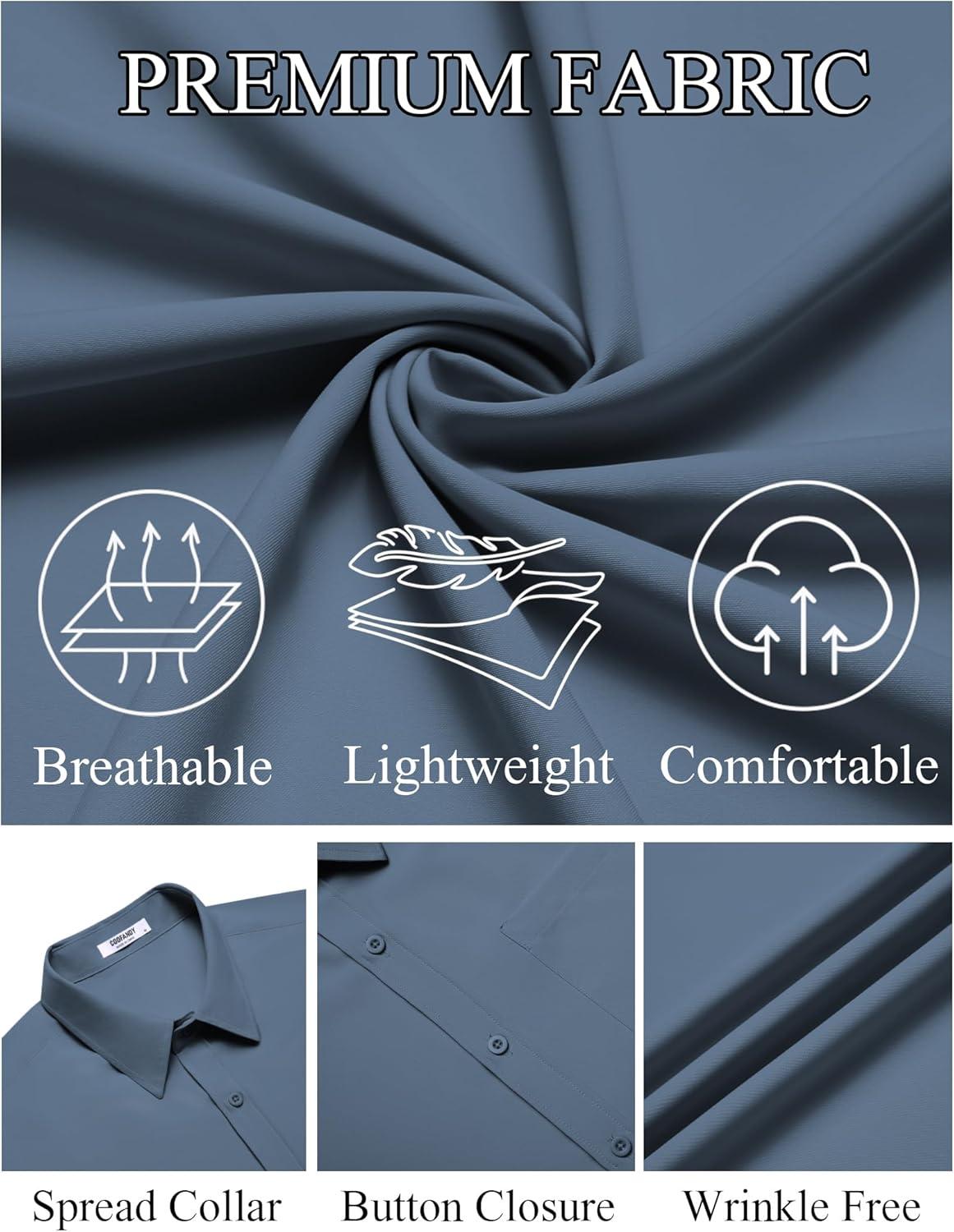 COOFANDY Mens Short Sleeve Dress Shirts Wrinkle Free Button Down Shirts Stain Shield Shirts with Pocket(Denim Blue)