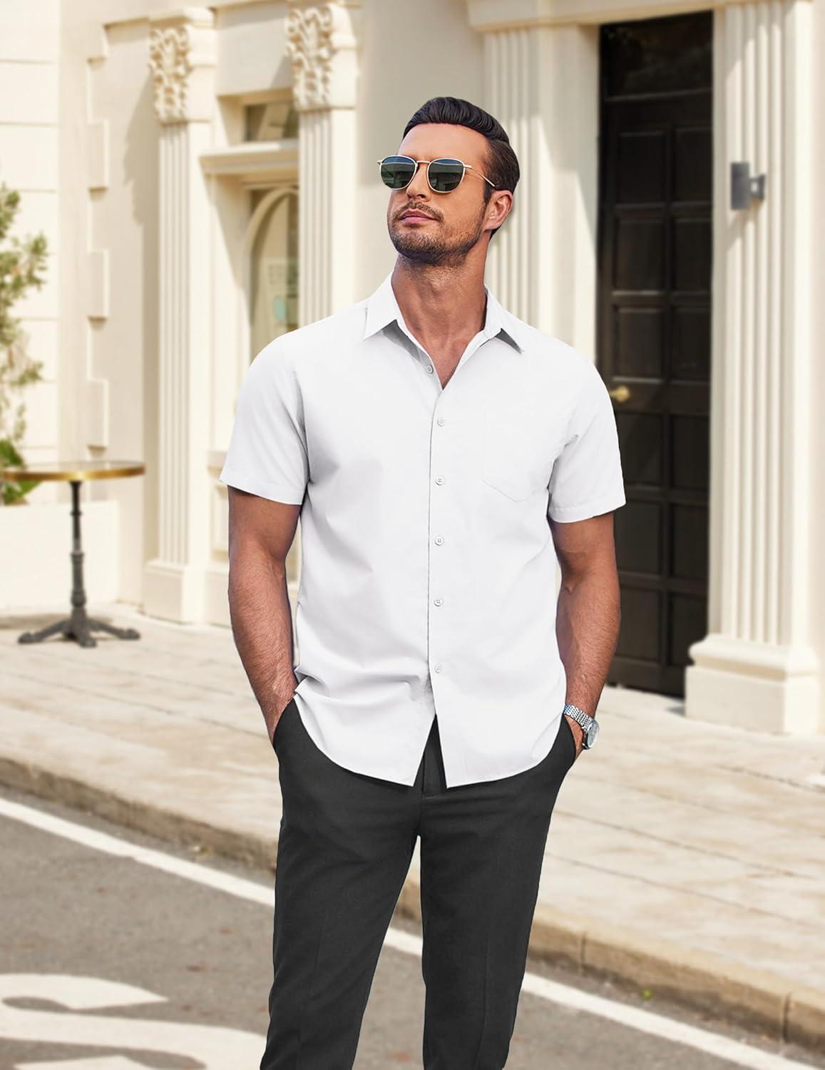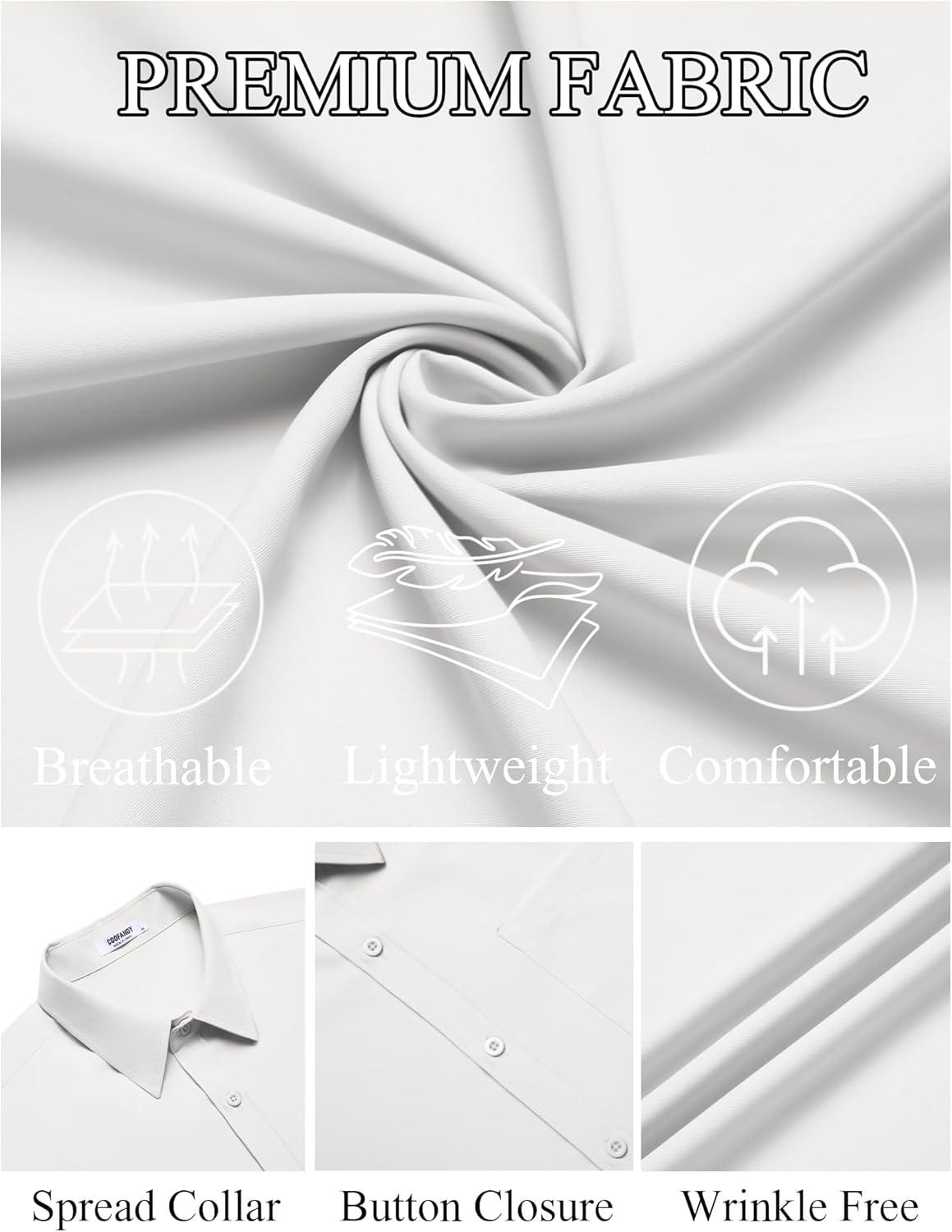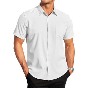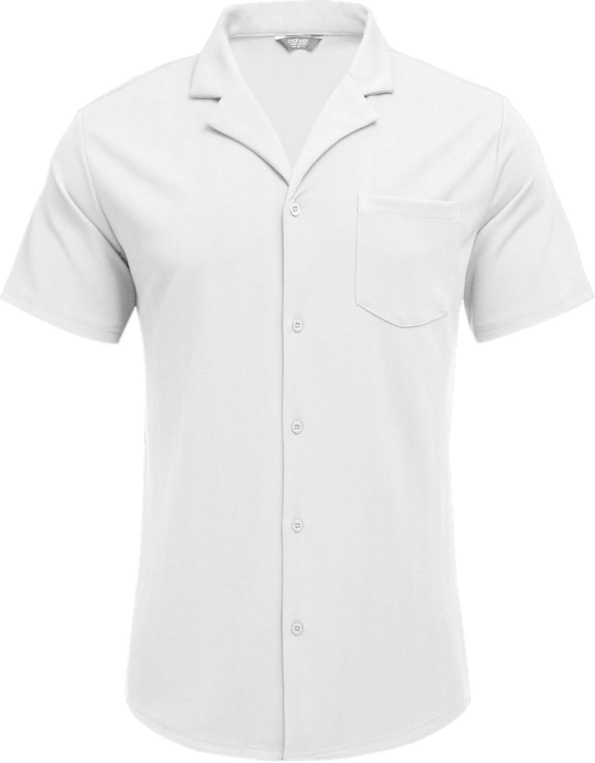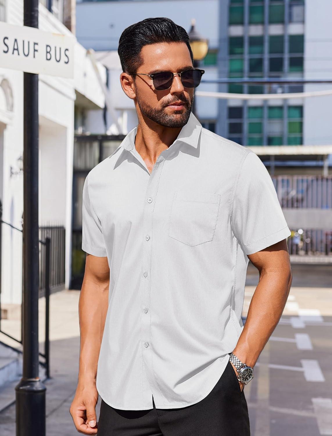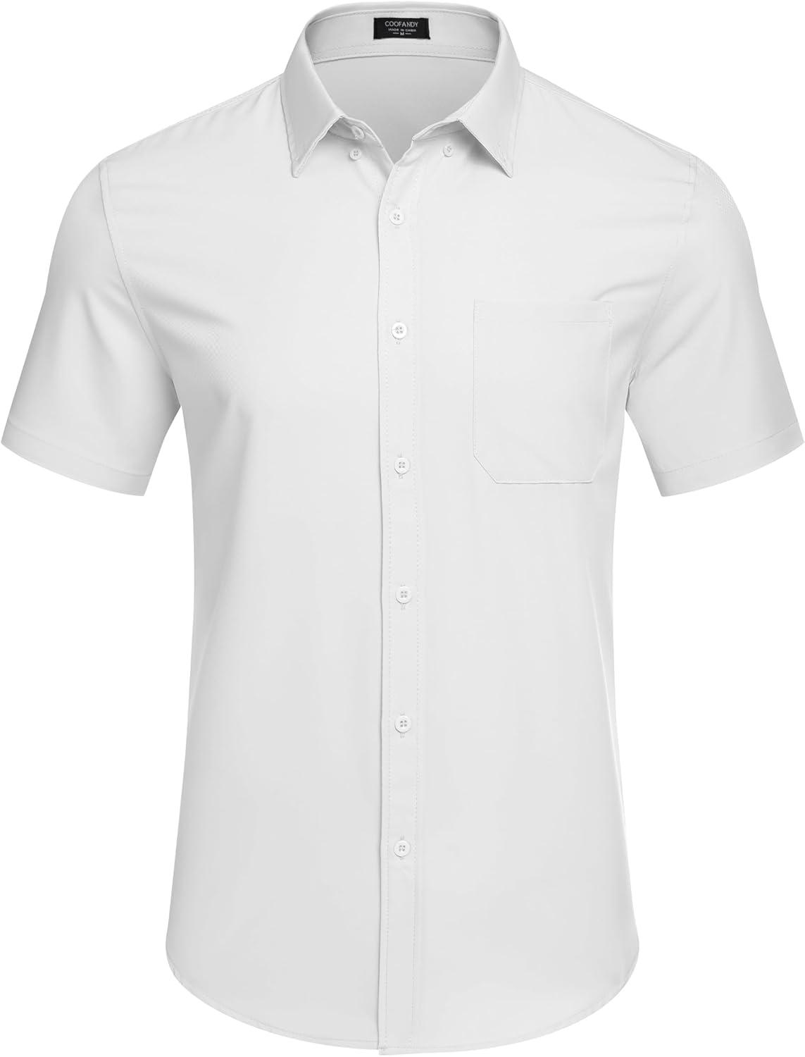 COOFANDY Mens Short Sleeve Dress Shirts Wrinkle Free Button Down Shirts Stain Shield Shirts with Pocket(White)