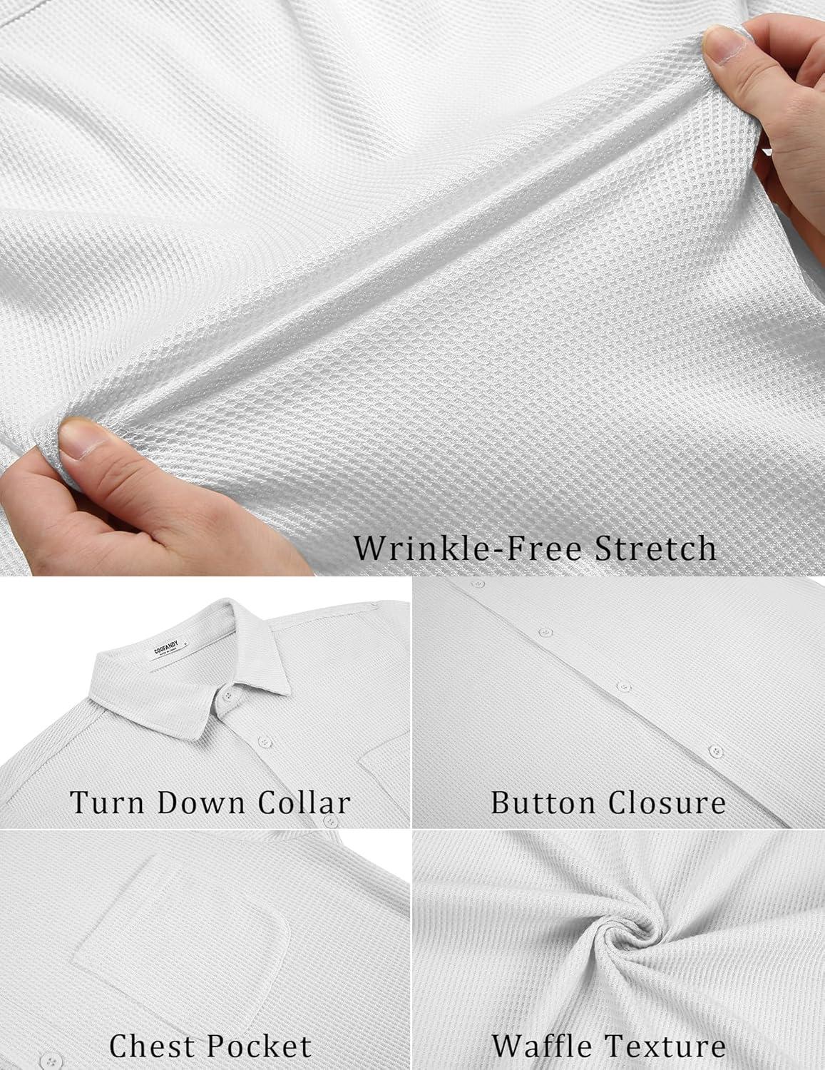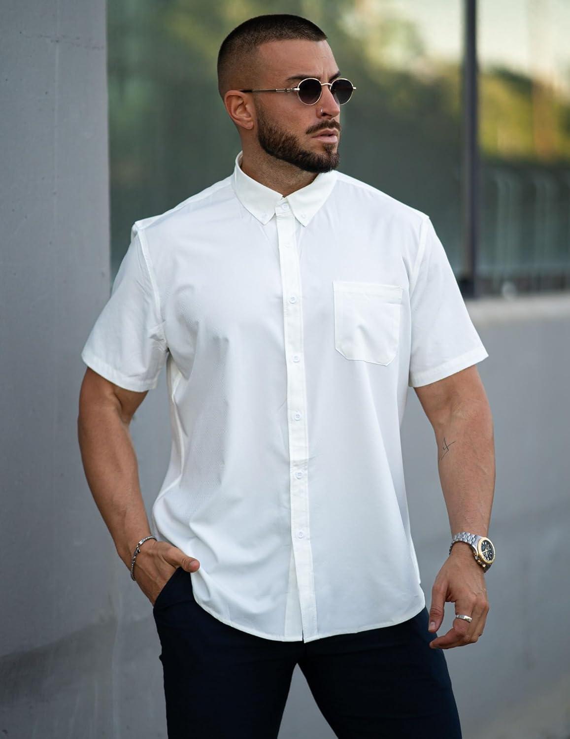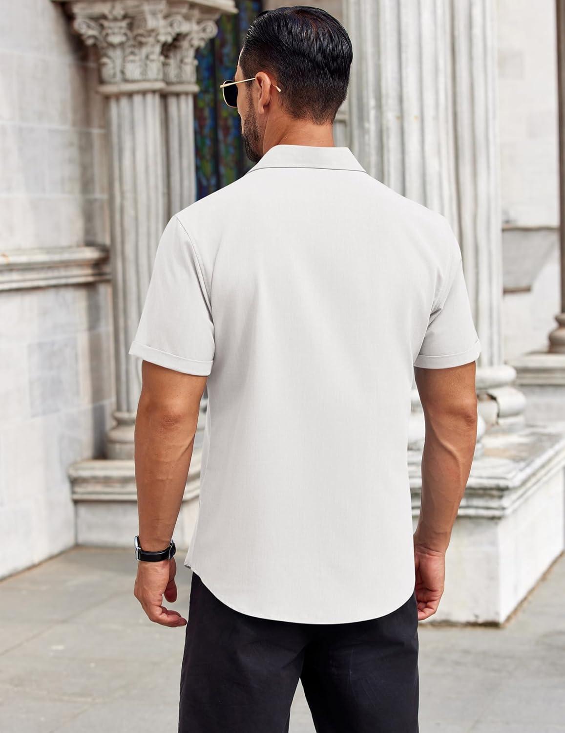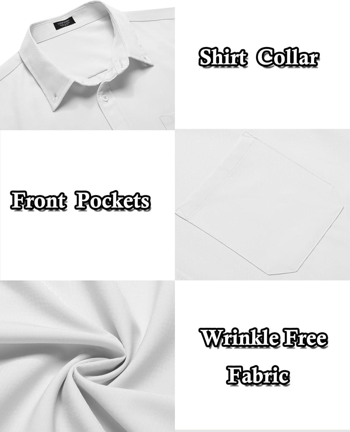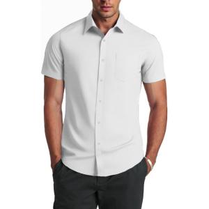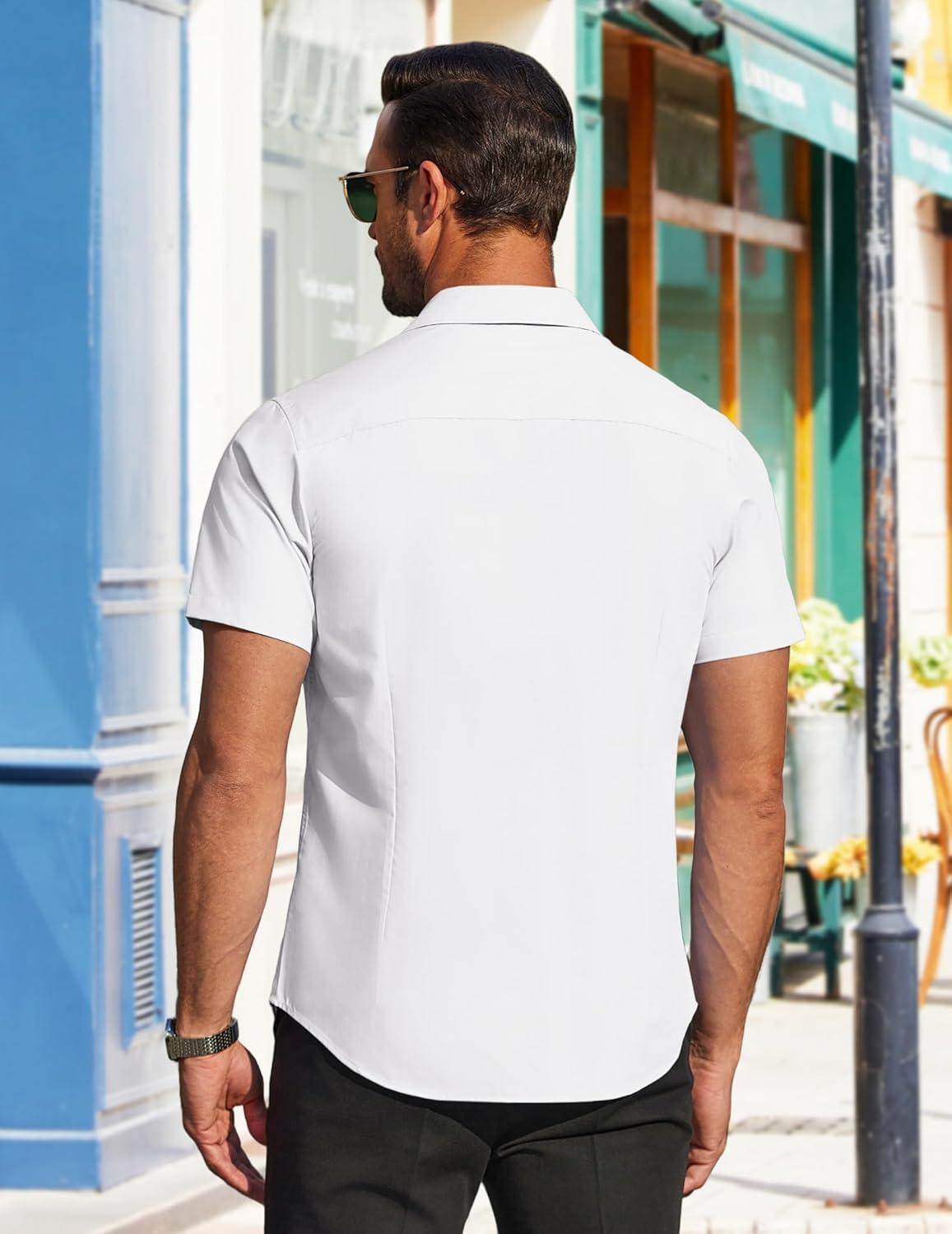 COOFANDY Mens Short Sleeve Dress Shirts Wrinkle Free Button Down Shirts Stain Shield Shirts with Pocket(White)