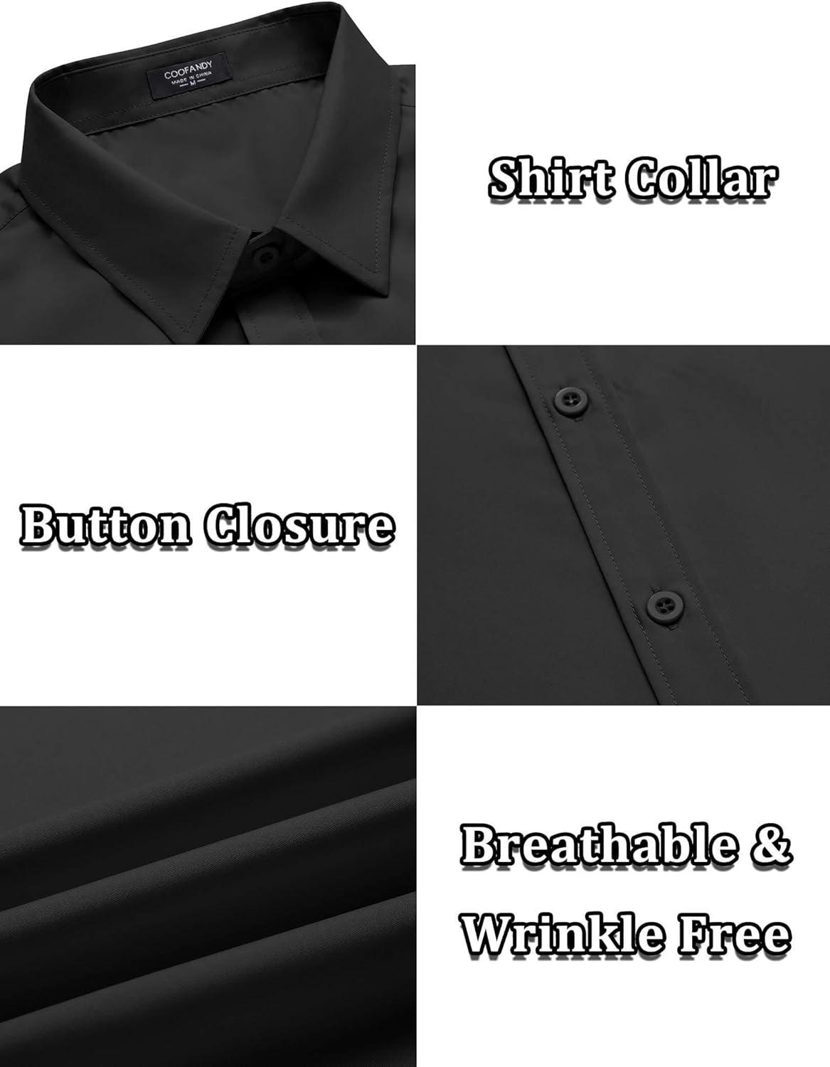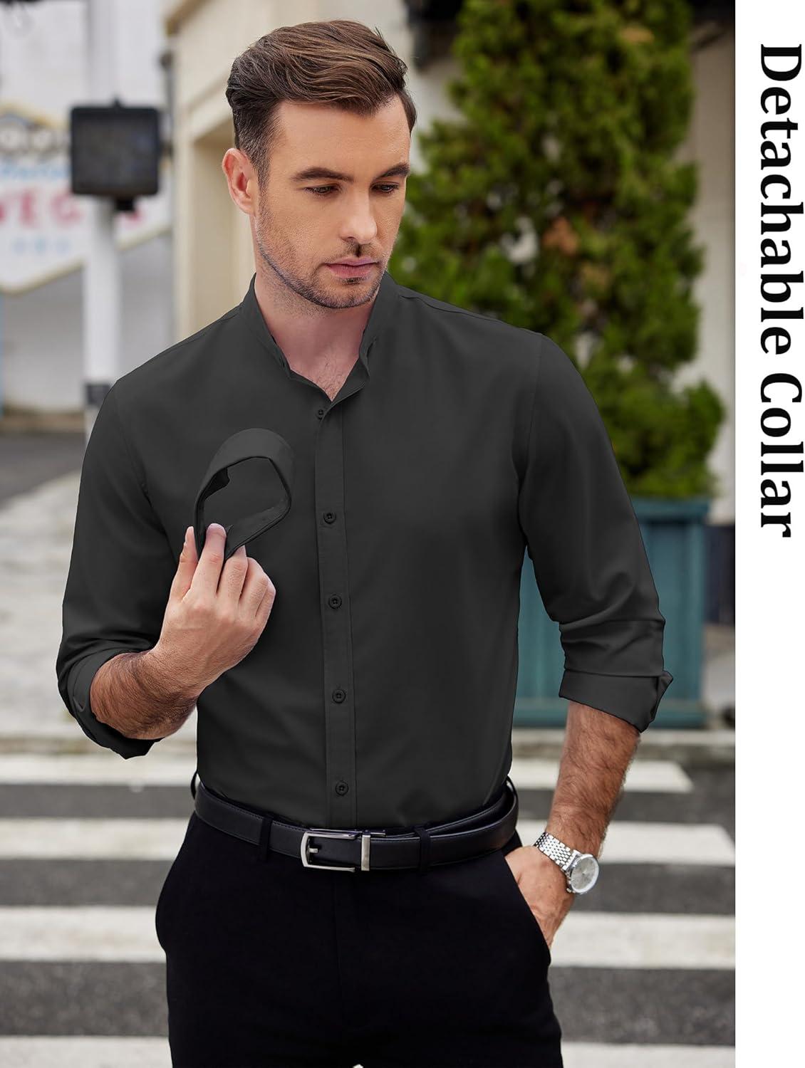 COOFANDY Mens 2-in-1 Dress Shirts Detachable Collar Long Sleeve Wrinkle Free Shirt Business Casual Button Down Shirt(Black)