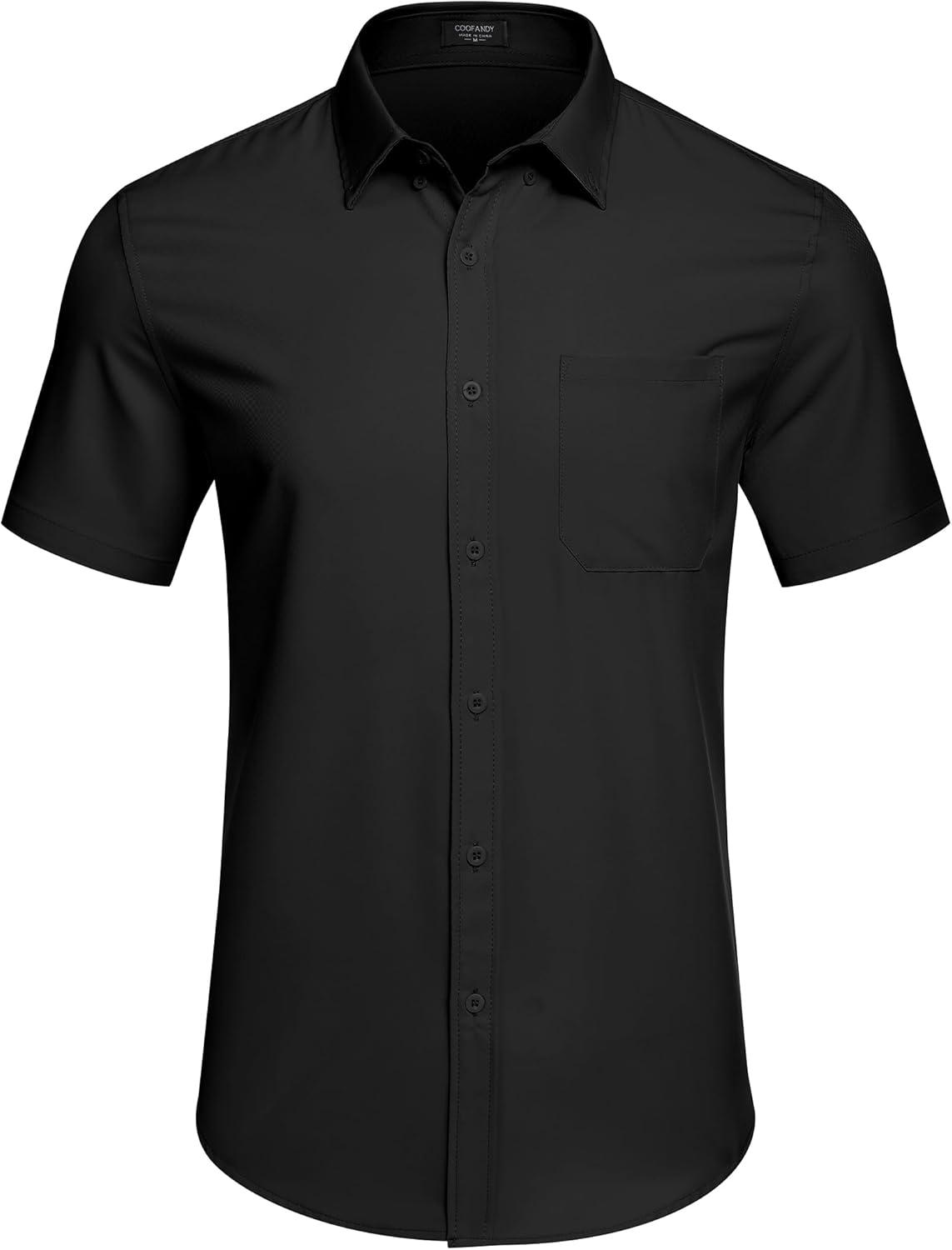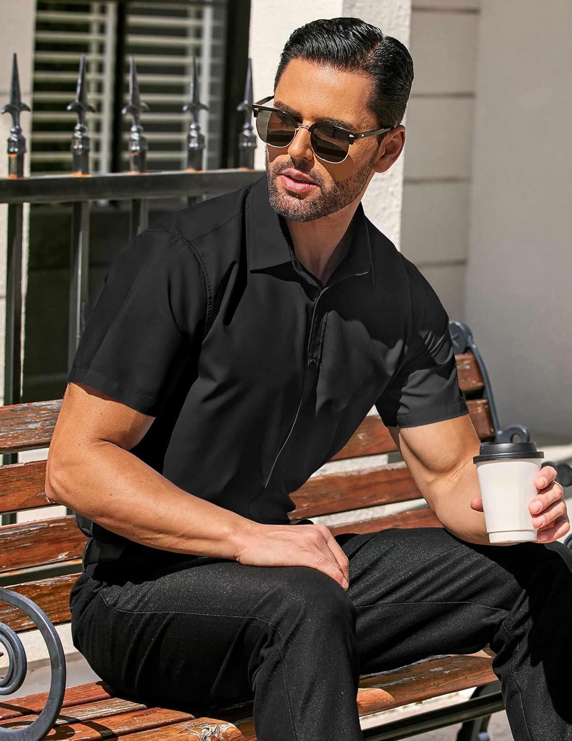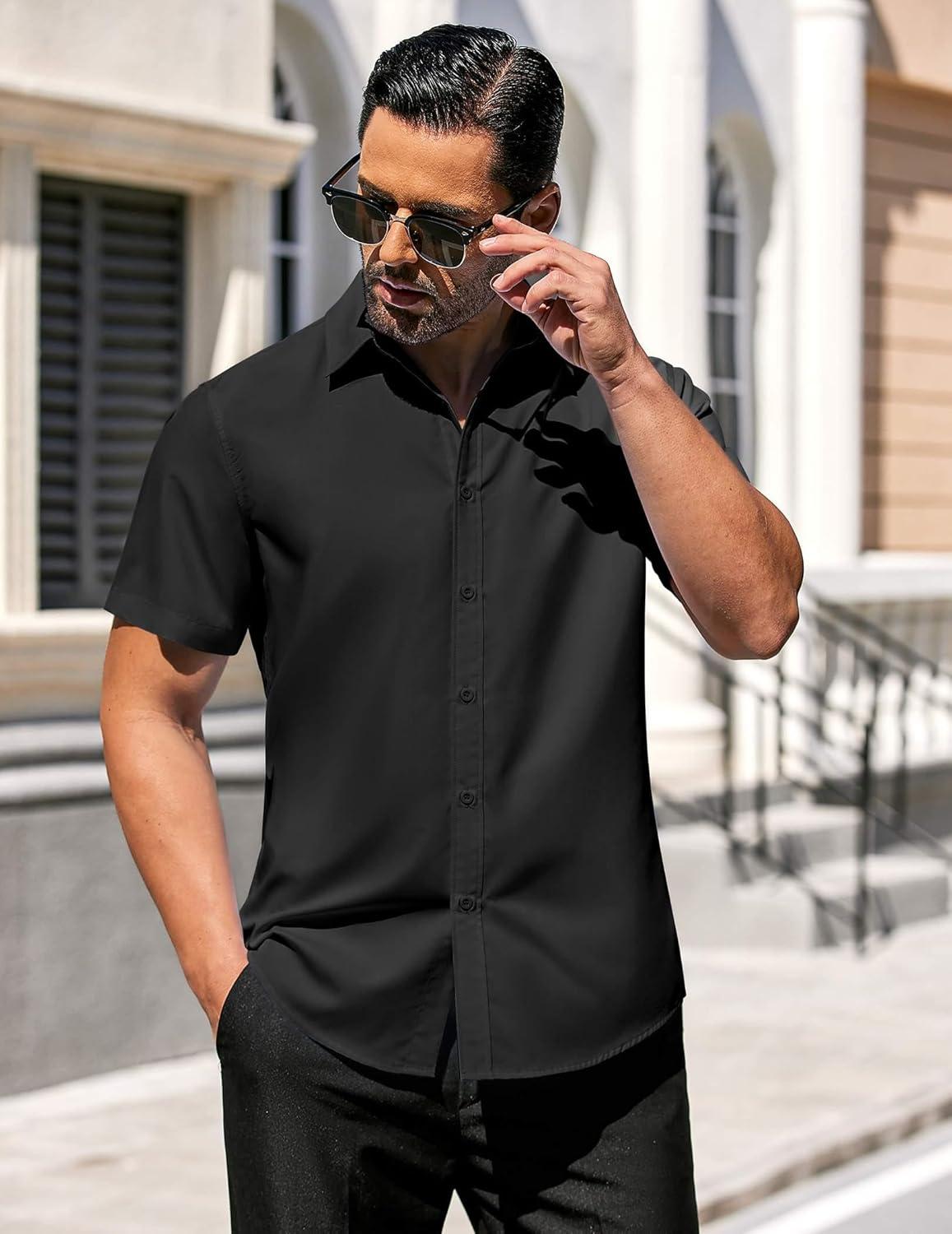 COOFANDY Mens Casual Dress Shirt Short Sleeve Wrinkle Free Dress Shirt Business Casual Shirts(Black)