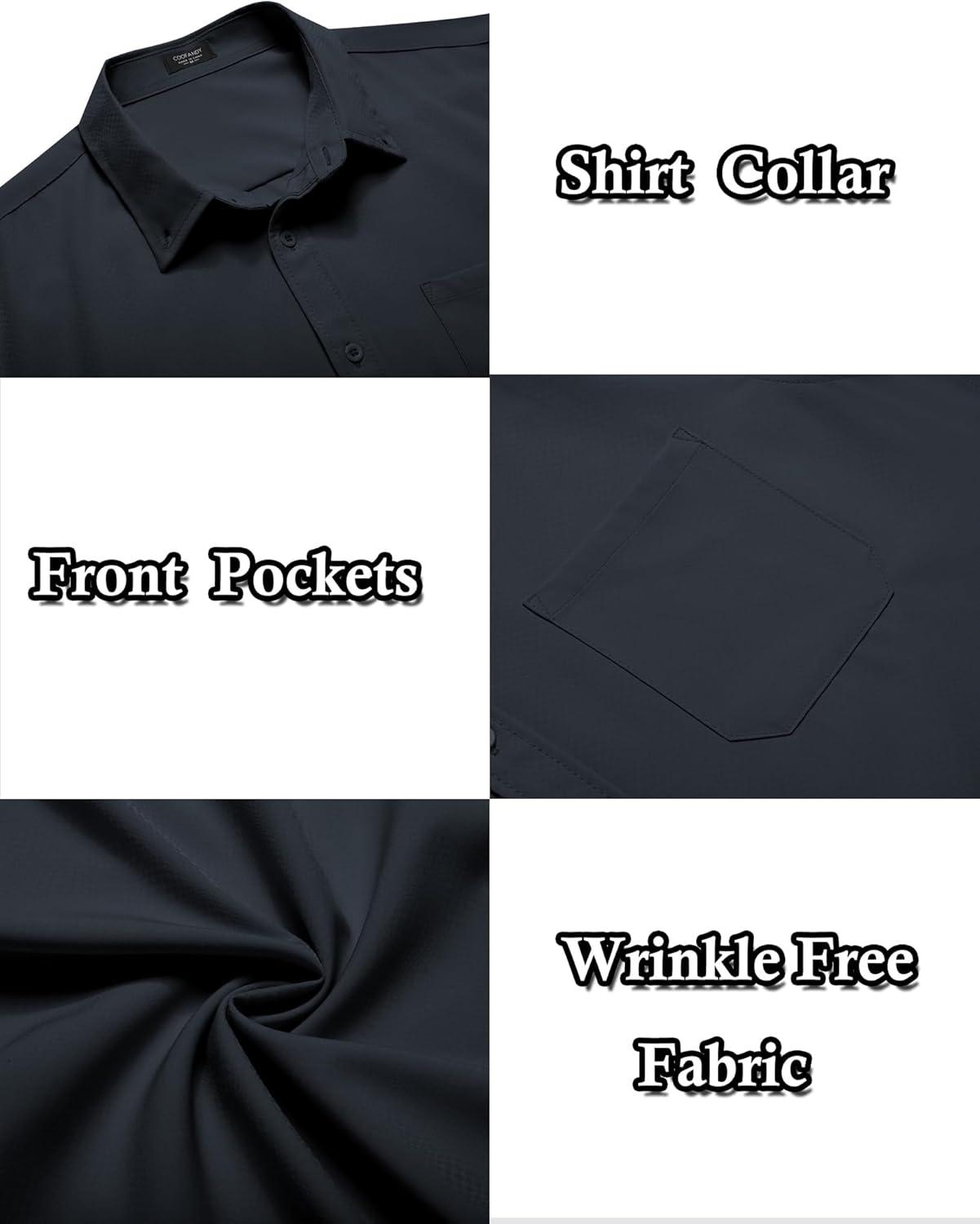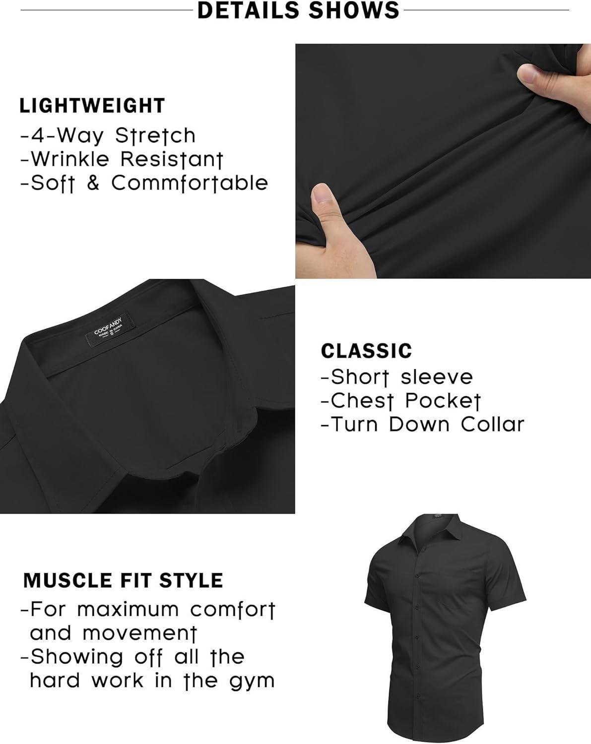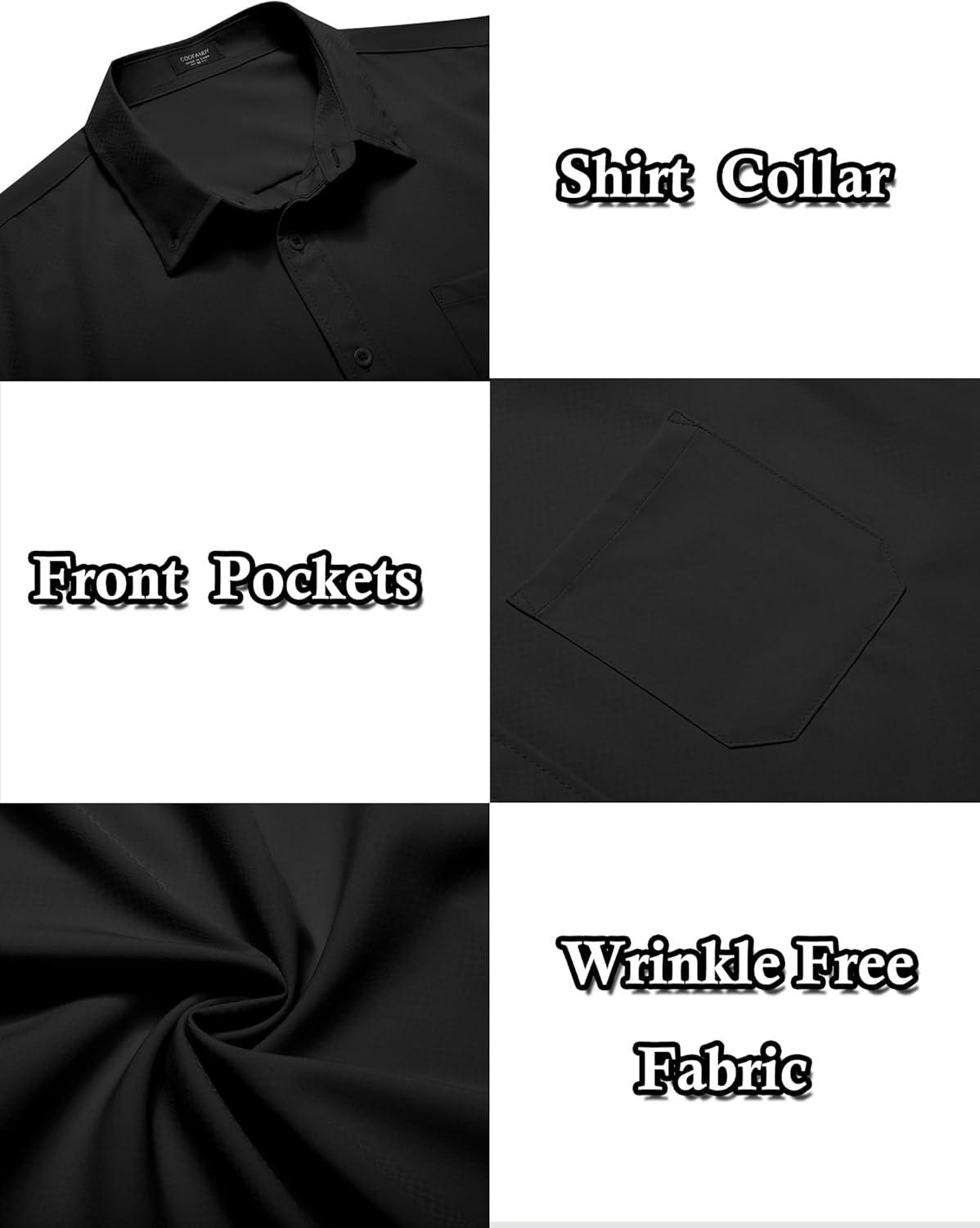 COOFANDY Mens Casual Dress Shirt Short Sleeve Wrinkle Free Dress Shirt Business Casual Shirts(Black)