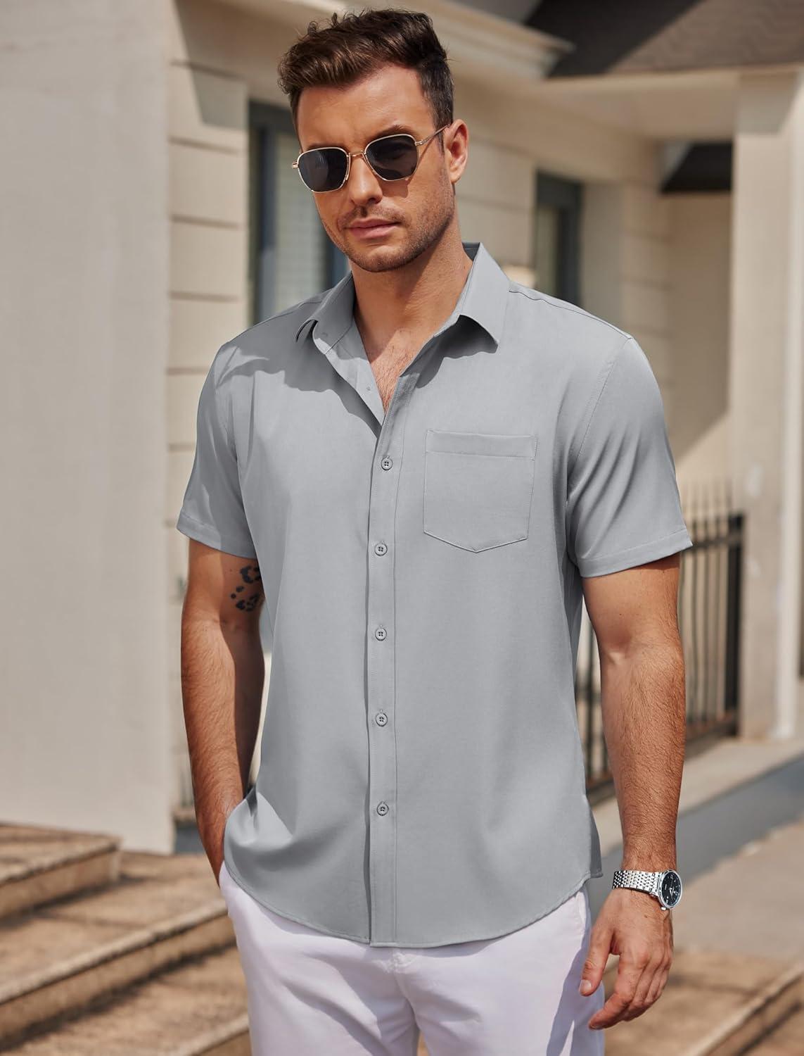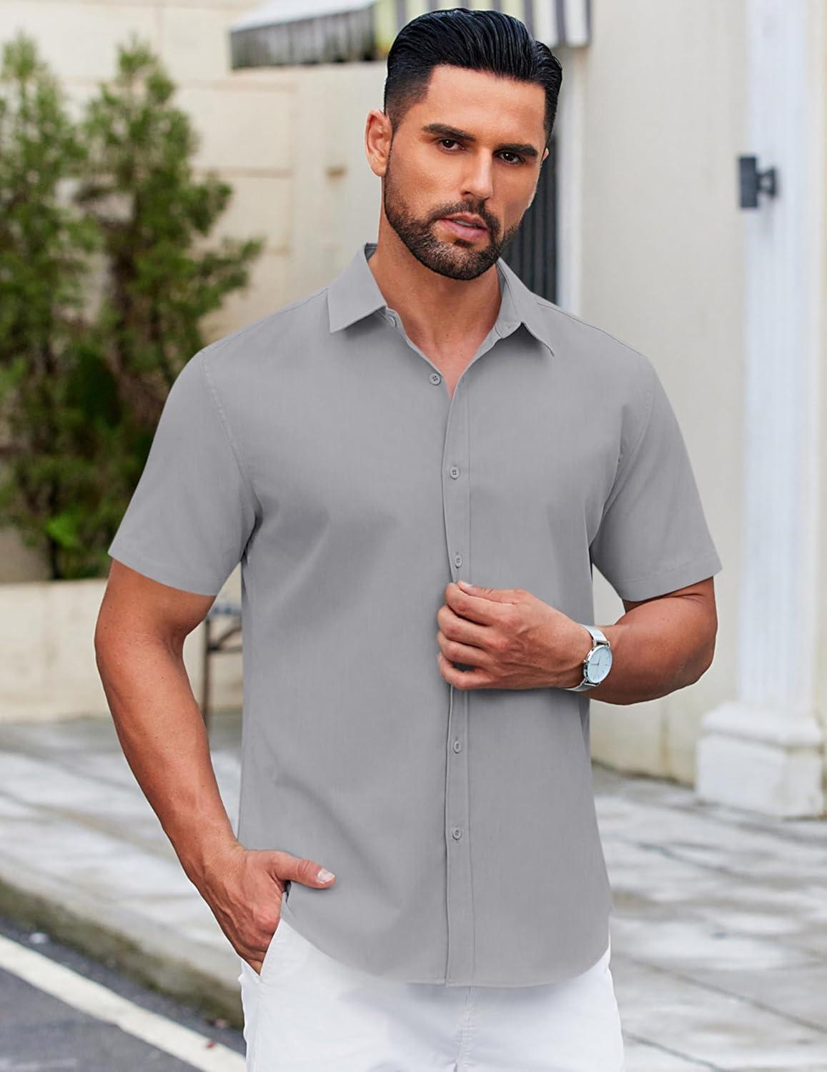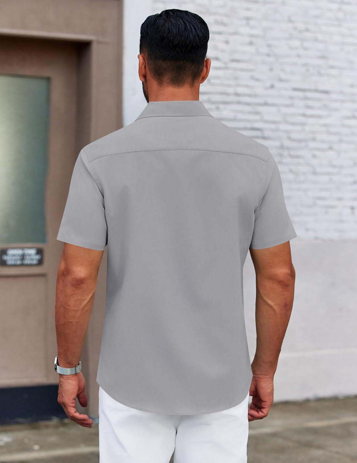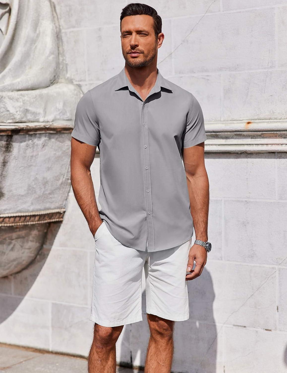 COOFANDY Mens Casual Button Down Shirts Lightweight Short Sleeve Shirts(Light Gray)