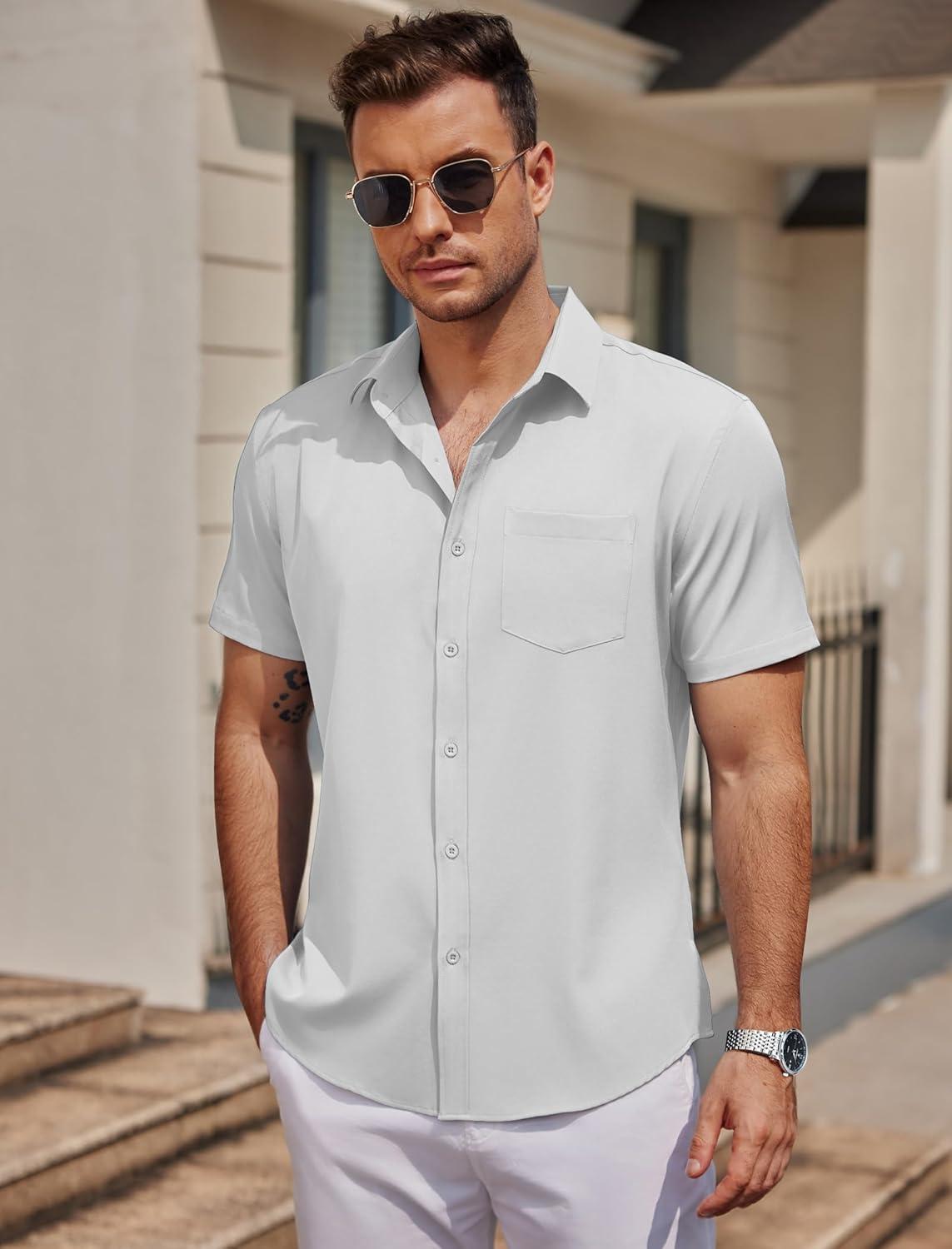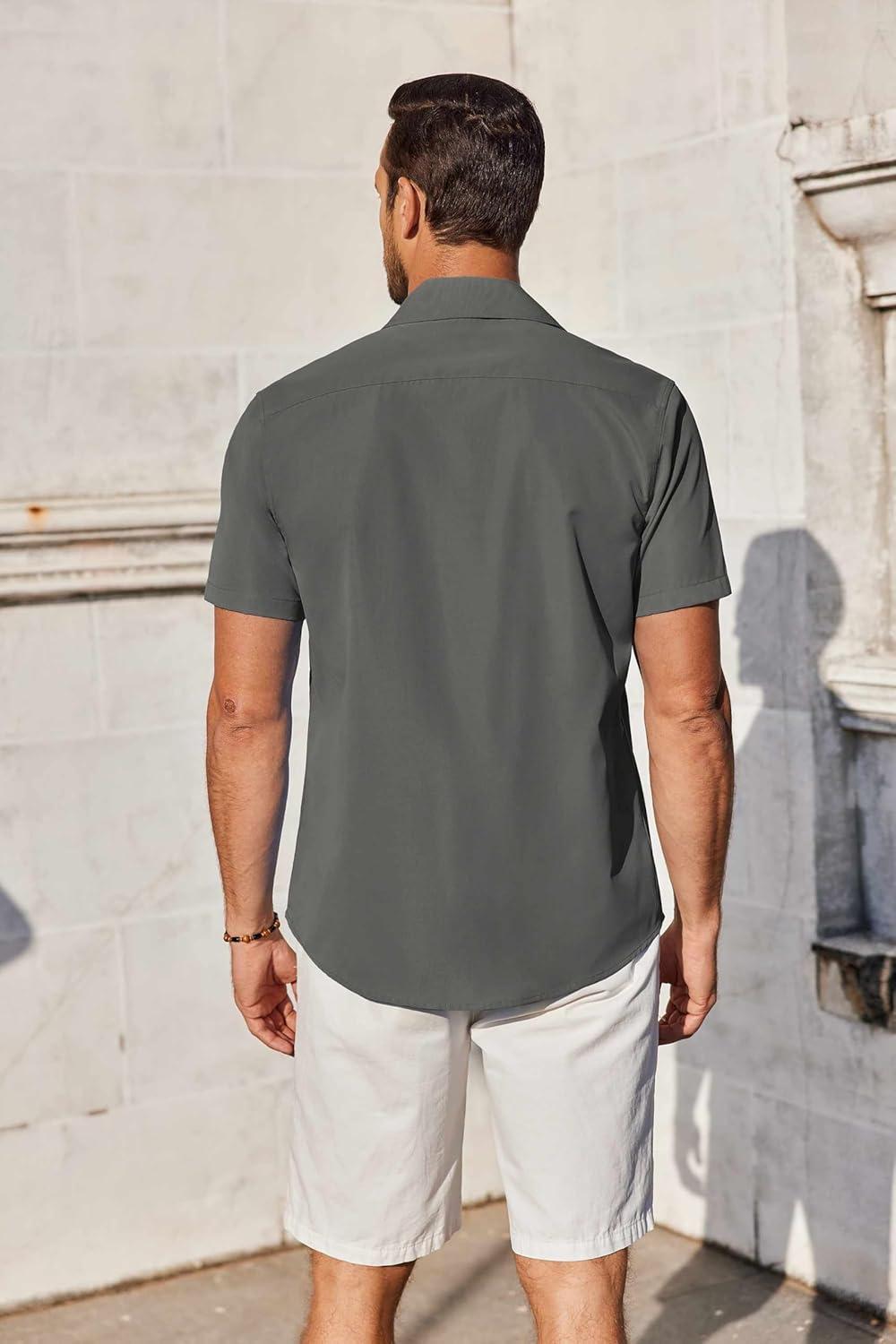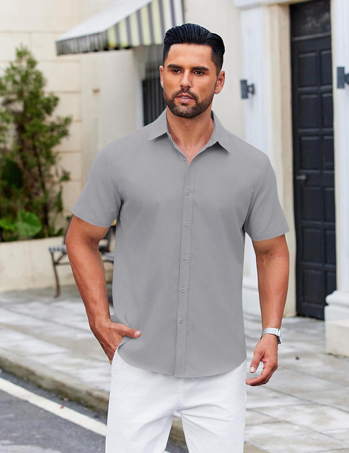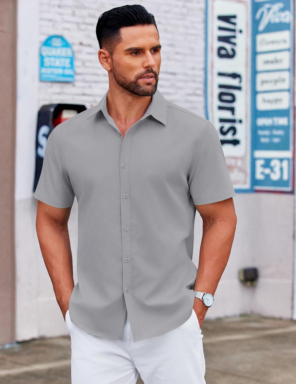 COOFANDY Mens Casual Button Down Shirts Lightweight Short Sleeve Shirts(Light Gray)