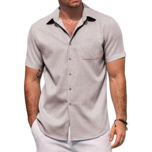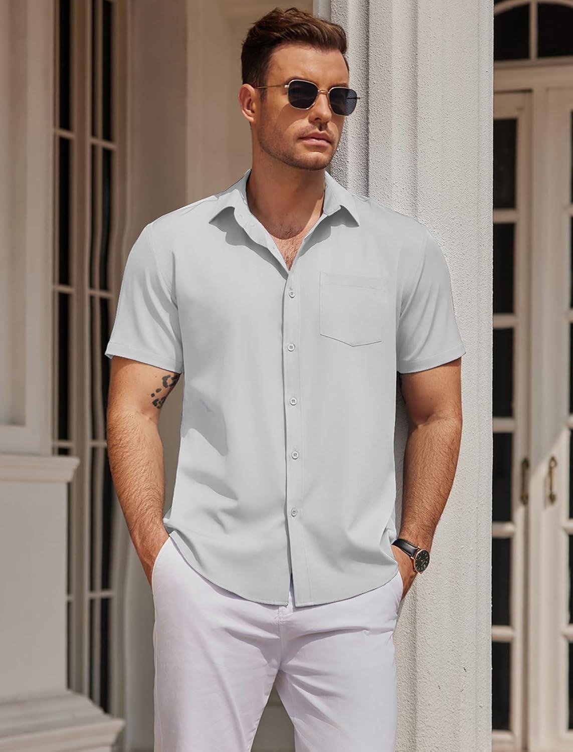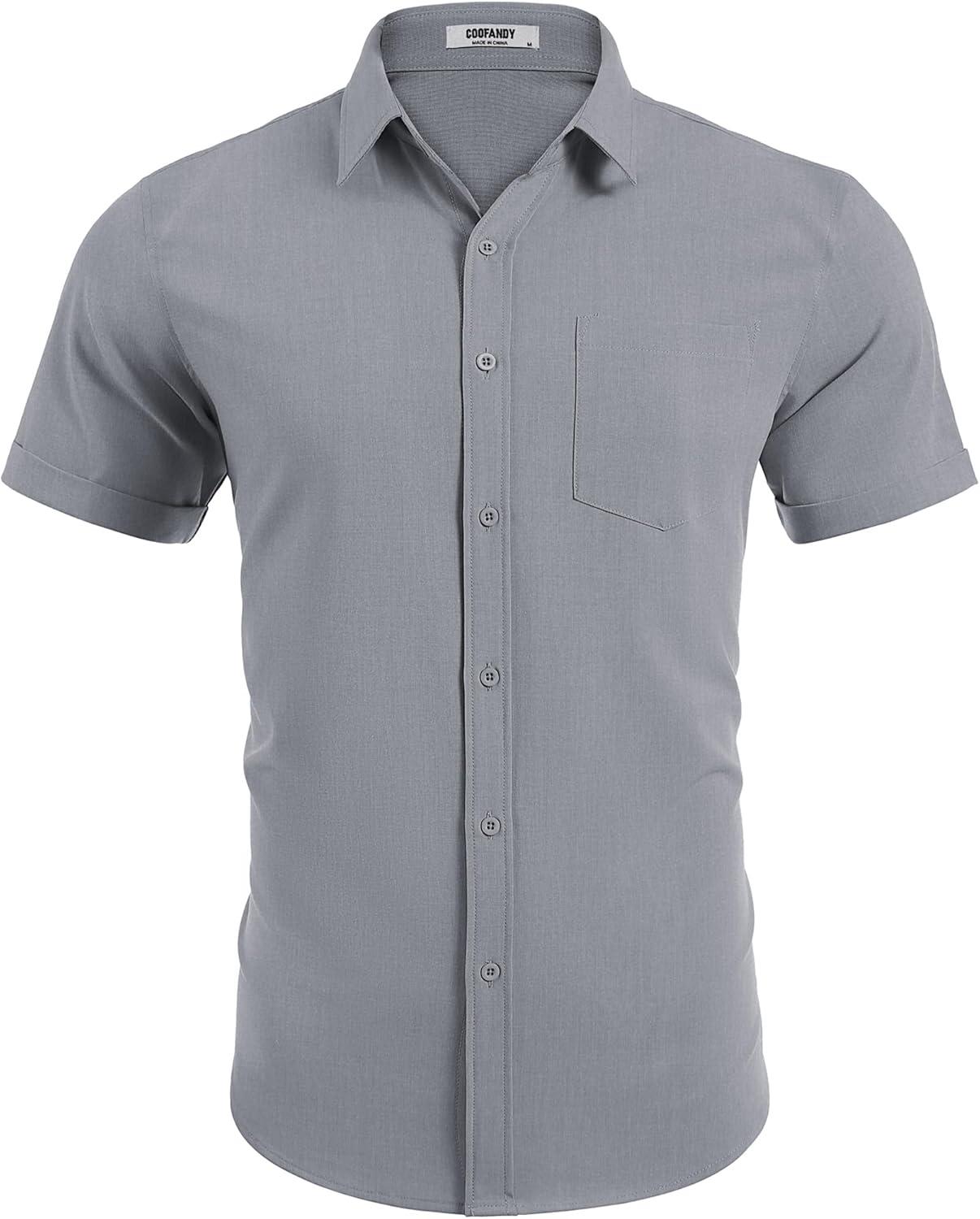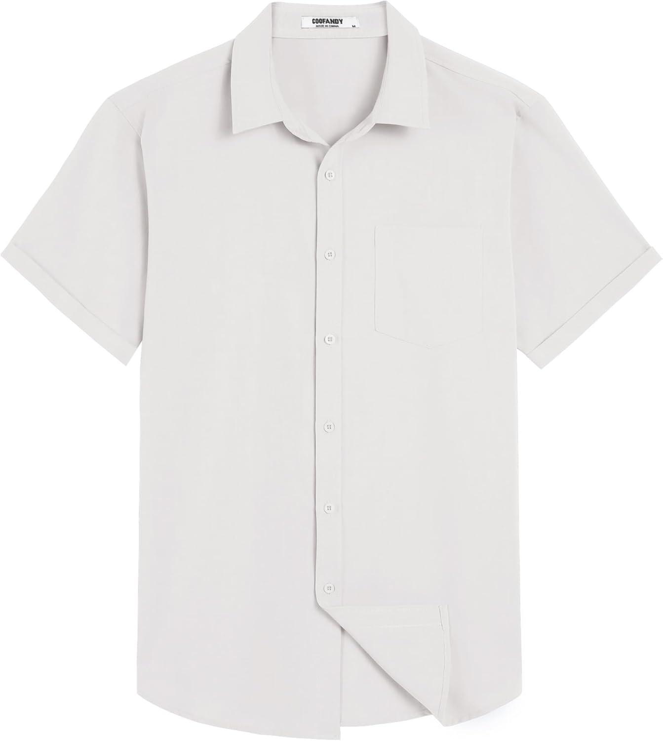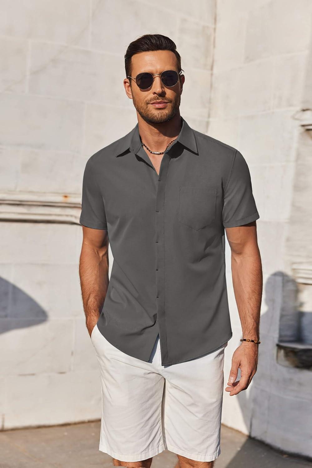 COOFANDY Mens Casual Button Down Shirts Lightweight Short Sleeve Shirts(Light Gray)