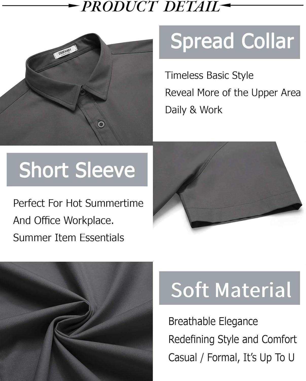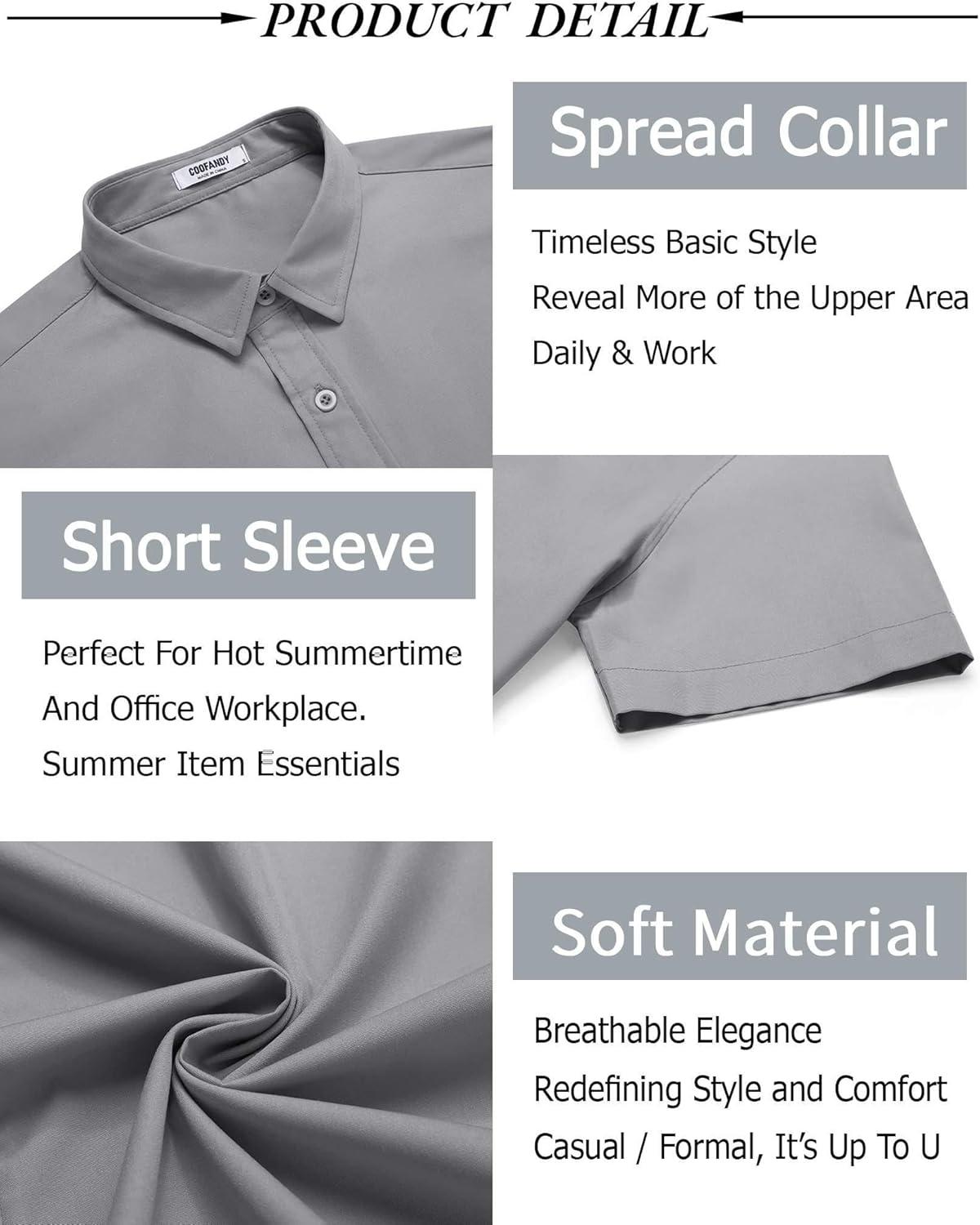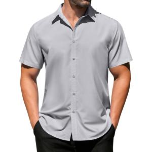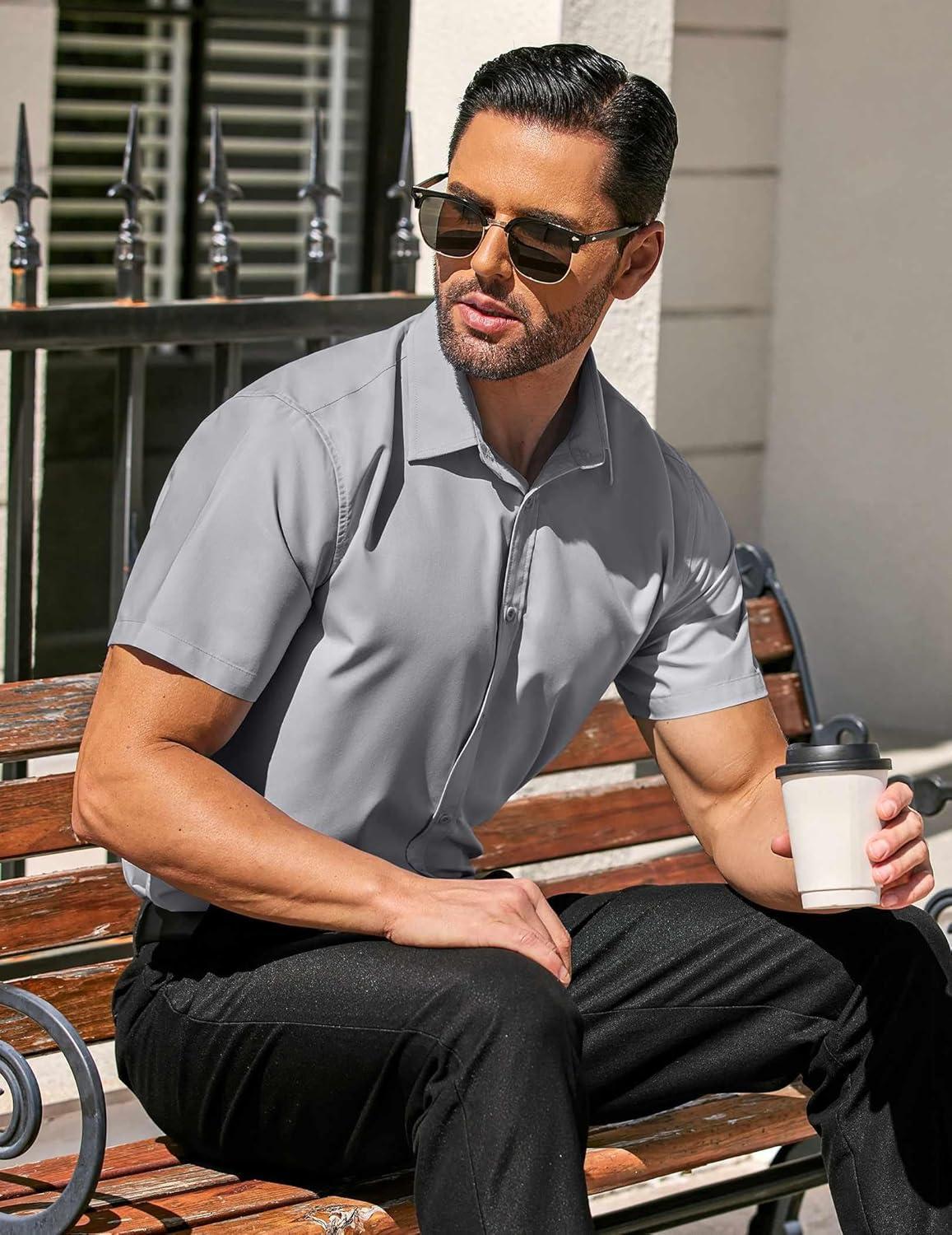 COOFANDY Mens Casual Dress Shirt Short Sleeve Wrinkle Free Dress Shirt Business Casual Shirts(Light Grey)