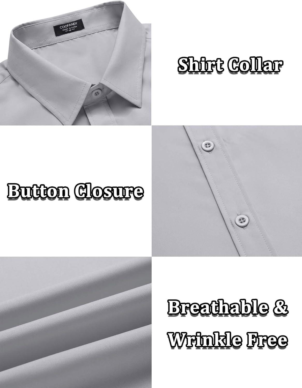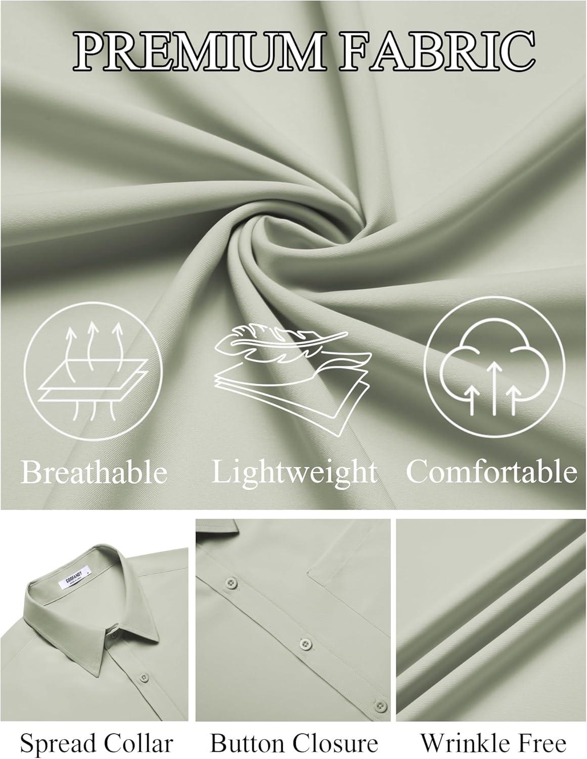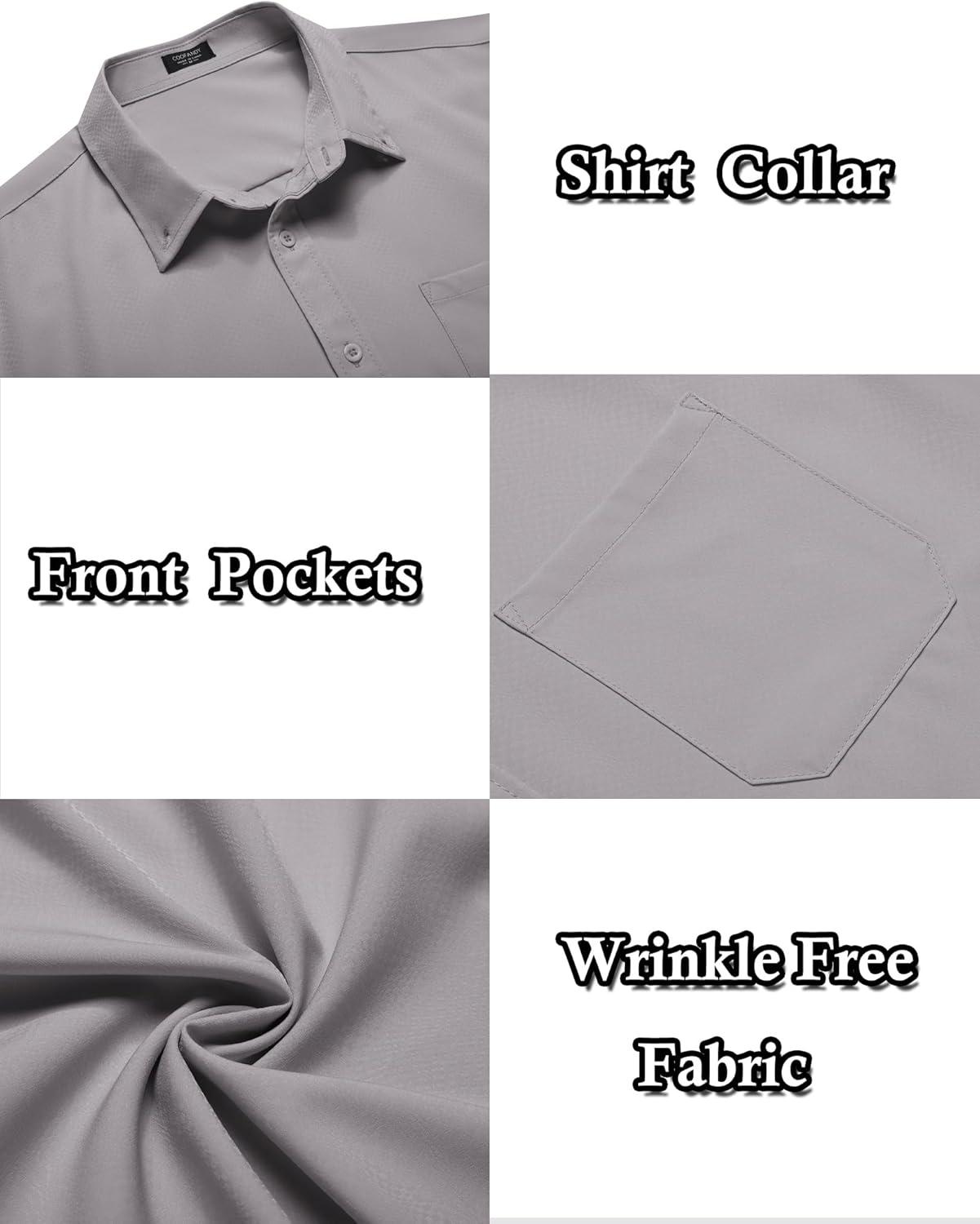 COOFANDY Mens Casual Dress Shirt Short Sleeve Wrinkle Free Dress Shirt Business Casual Shirts(Light Grey)