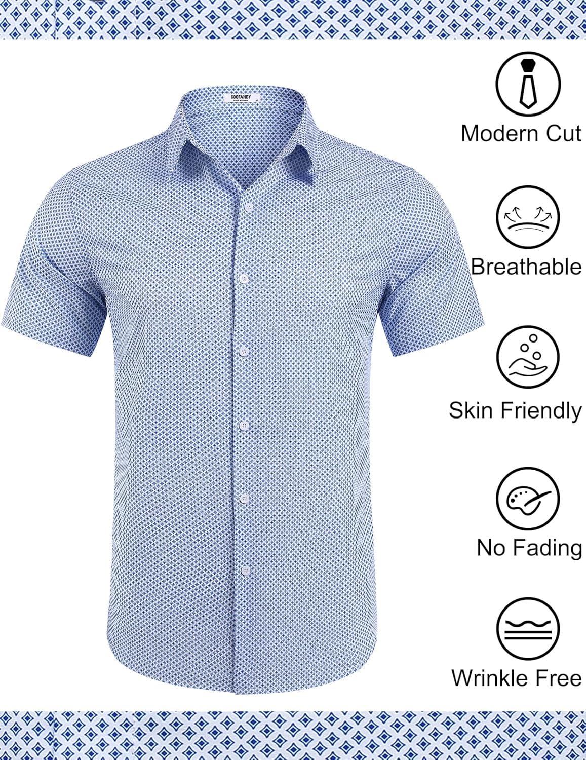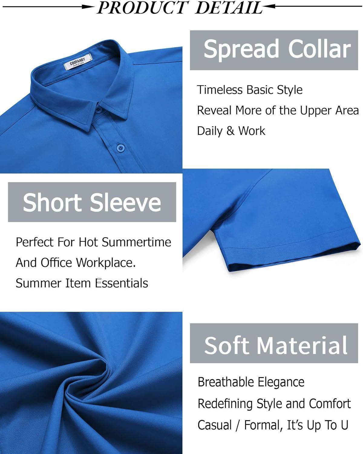 COOFANDY Mens Casual Button Down Shirts Short Sleeve Business Shirts Lightweight Wrinkle Free Dress Shirts(Blue)