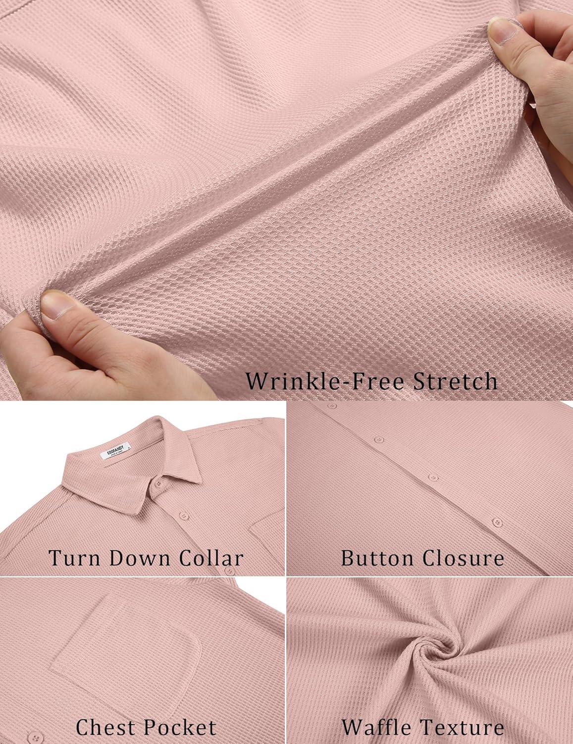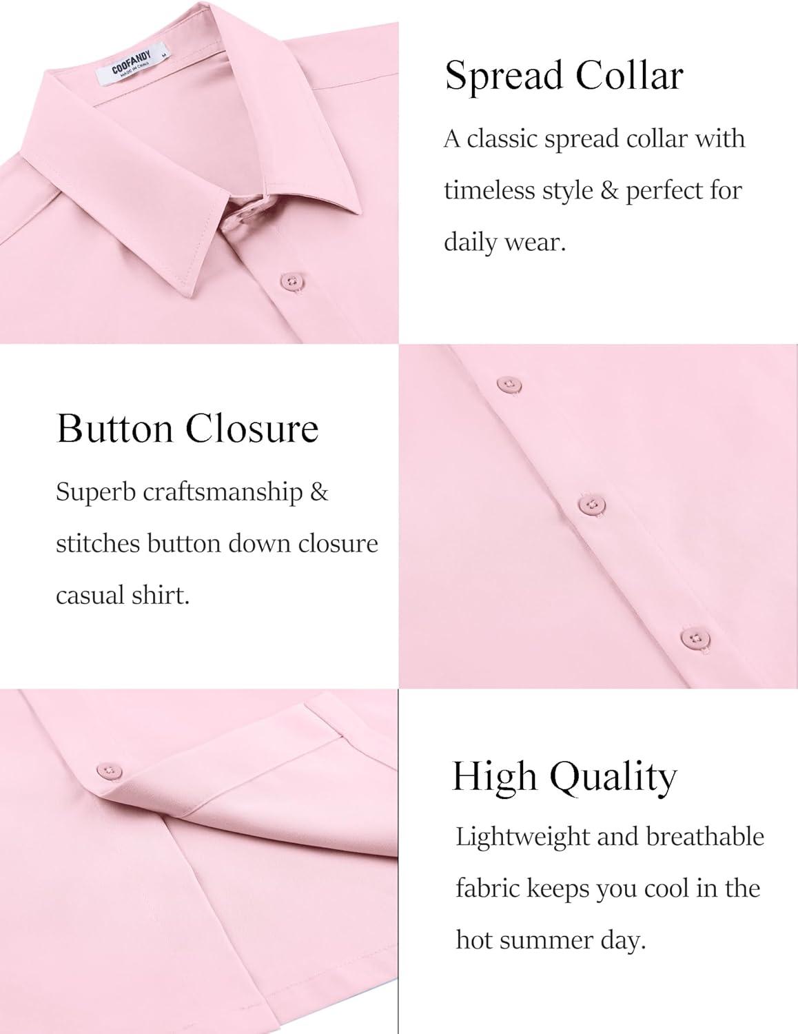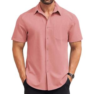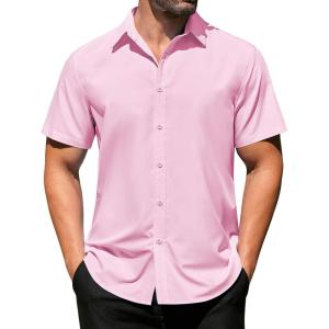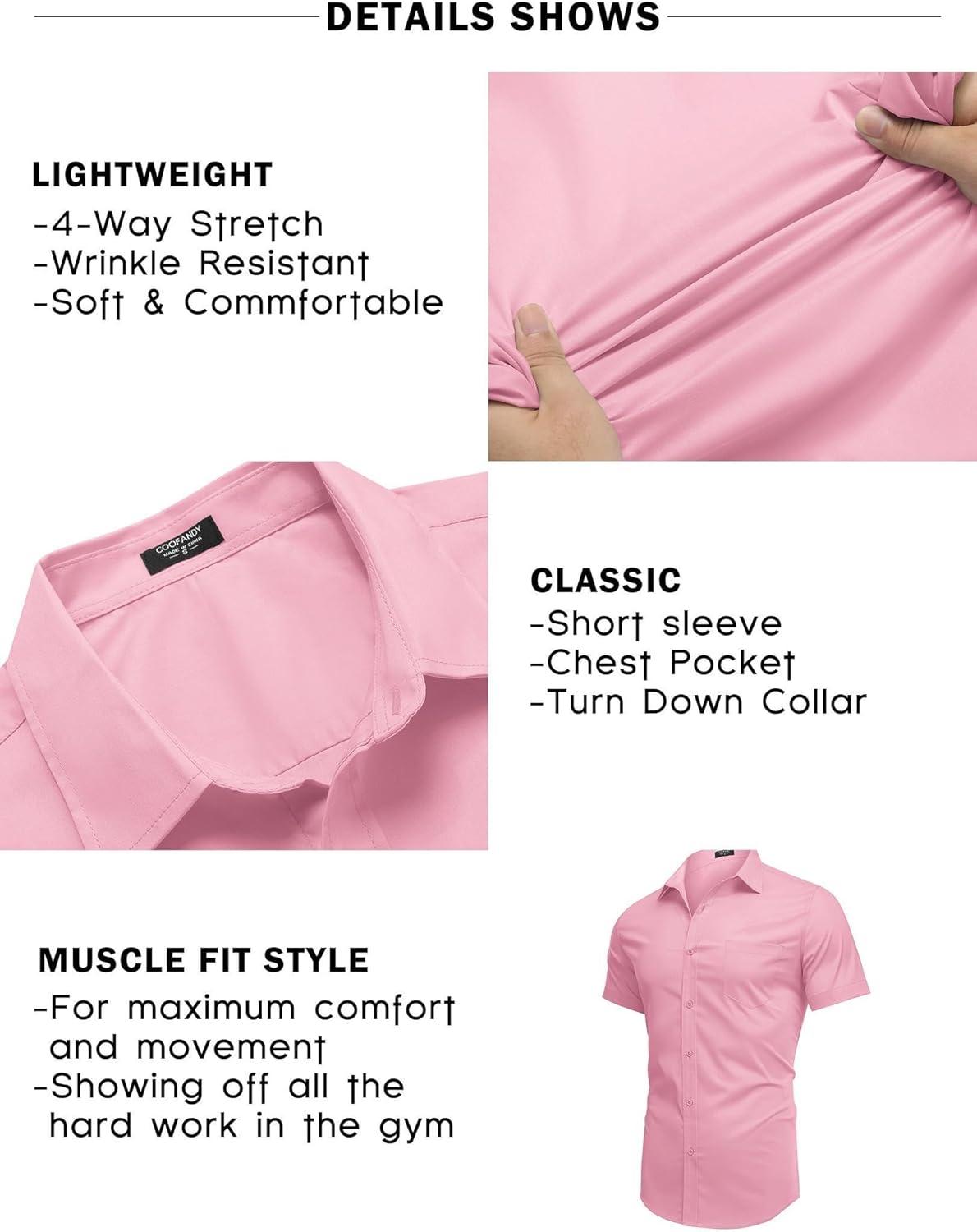 COOFANDY Men’s Dress Shirt Short Sleeve Button Down Shirts with Pocket(Pink)