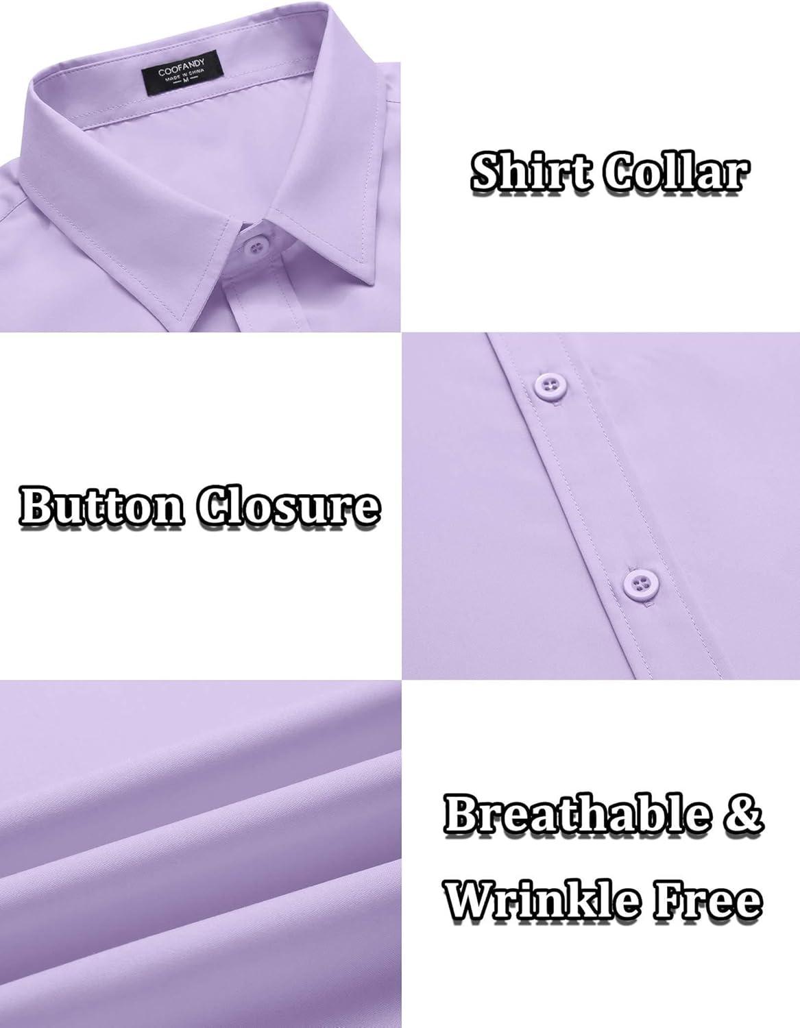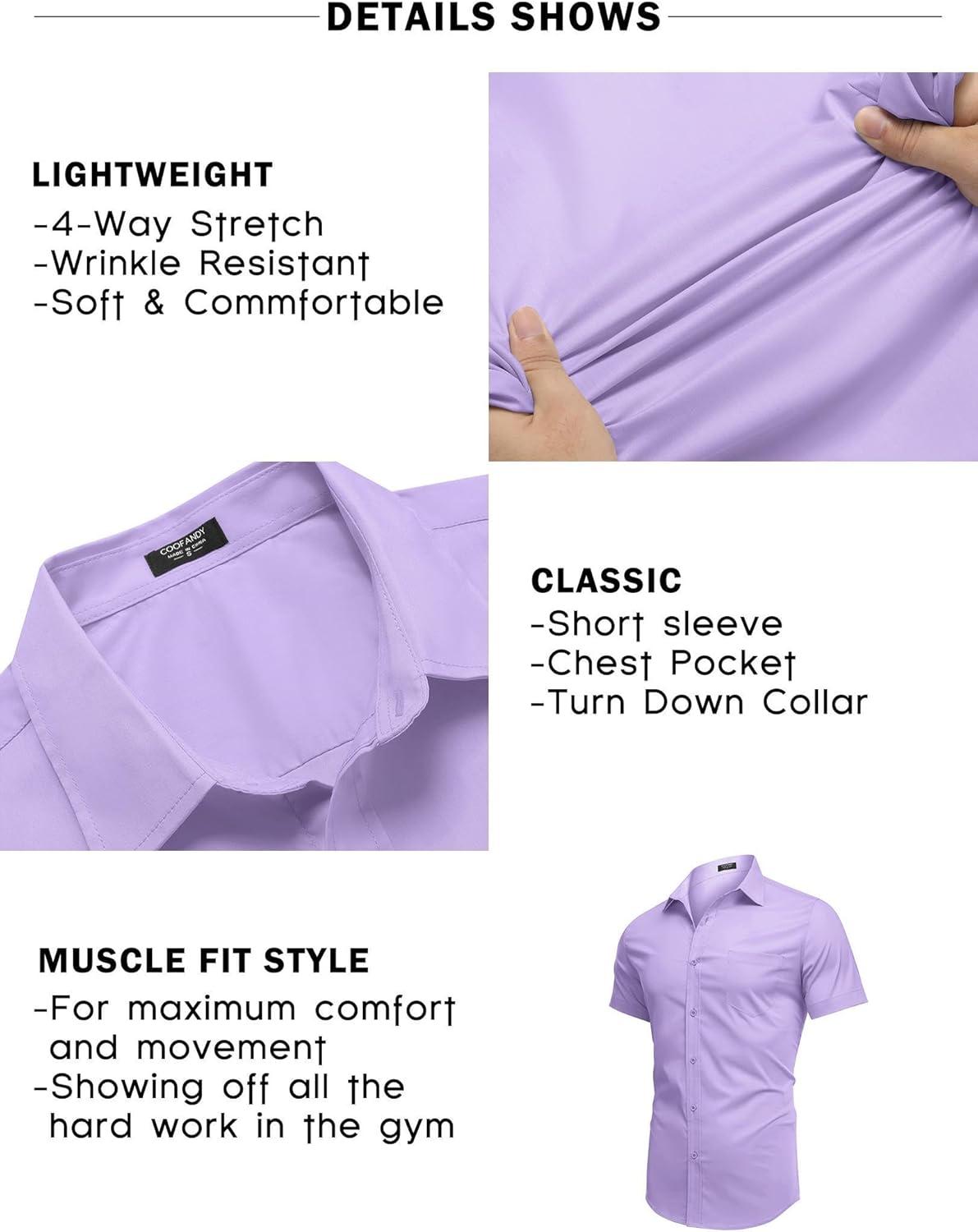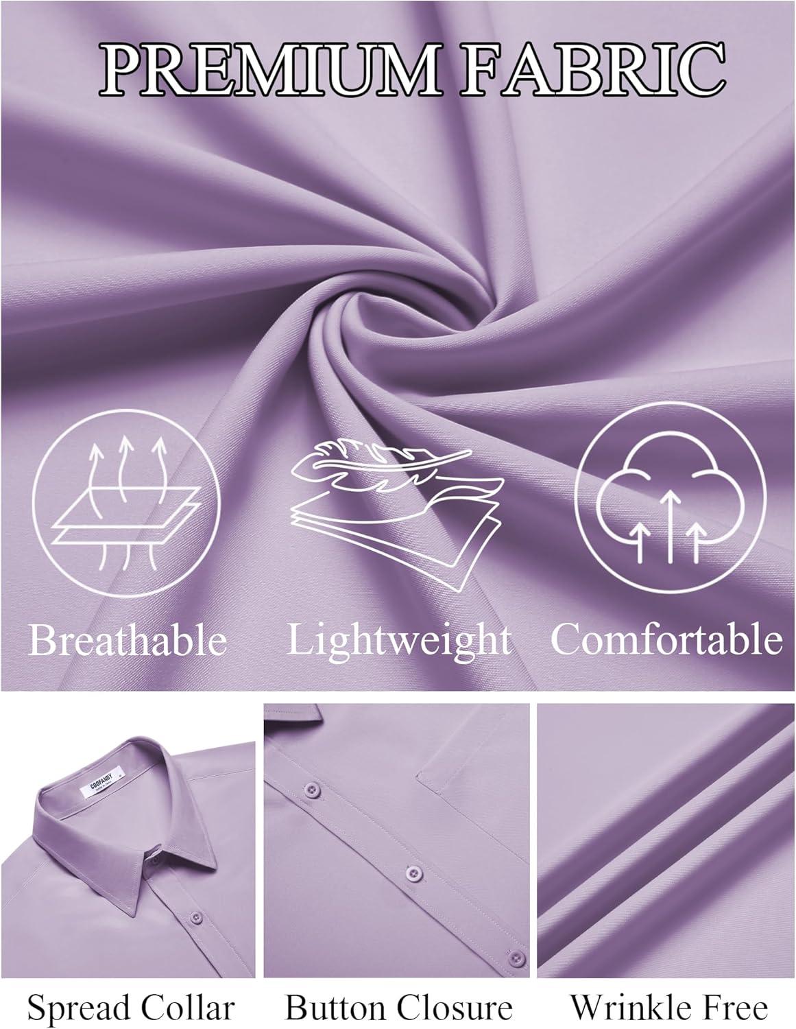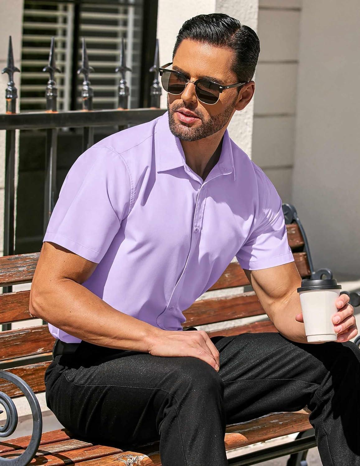 COOFANDY Mens Casual Dress Shirt Short Sleeve Wrinkle Free Dress Shirt Business Casual Shirts(Light Purple)