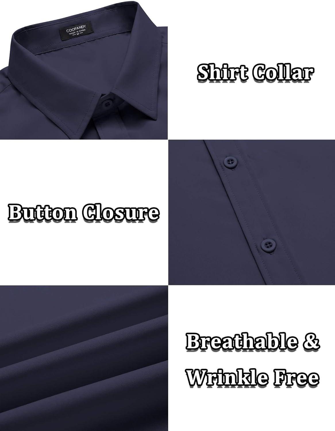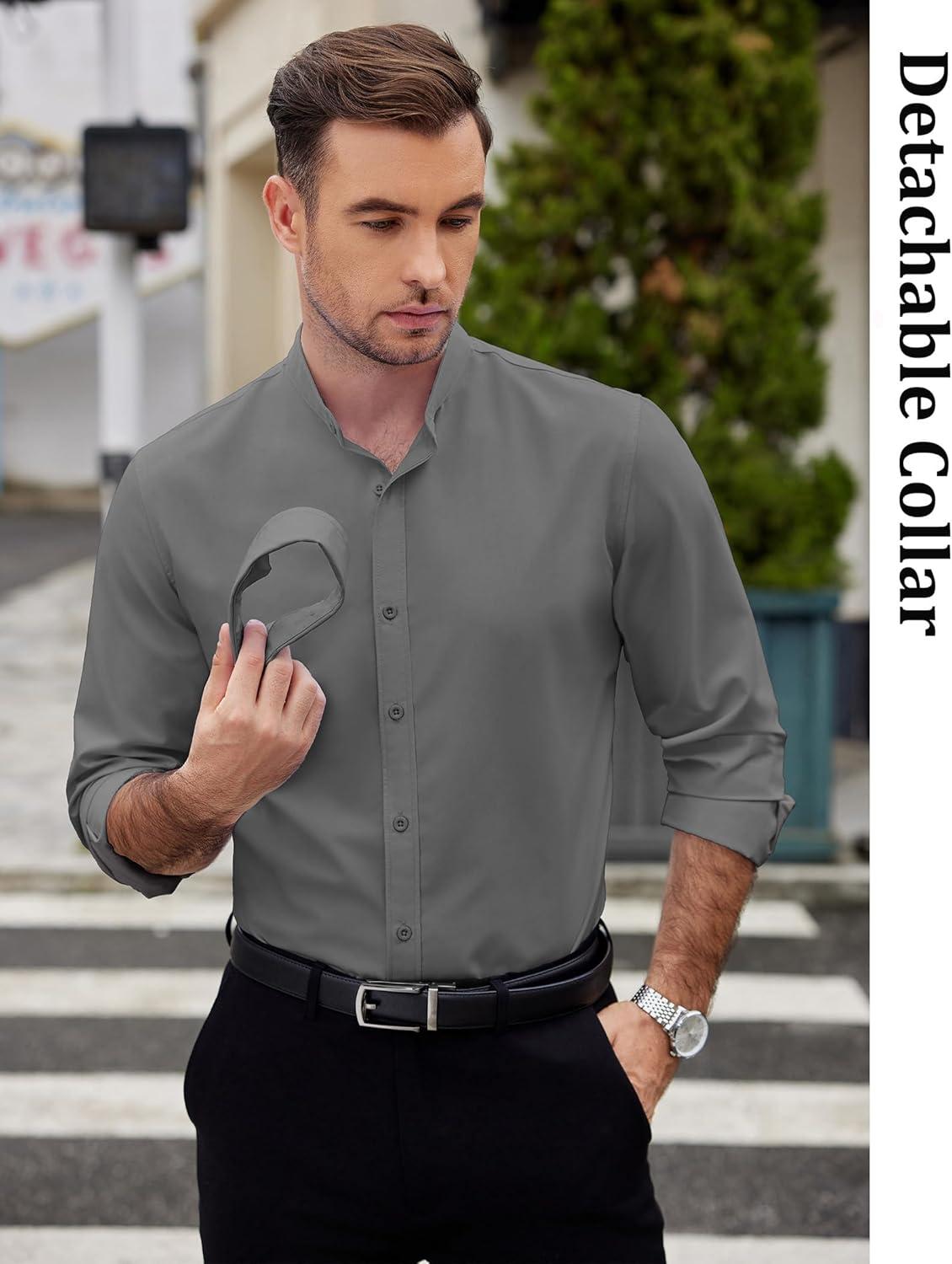 COOFANDY Mens 2-in-1 Dress Shirts Detachable Collar Long Sleeve Wrinkle Free Shirt Business Casual Button Down Shirt(Dark Grey)