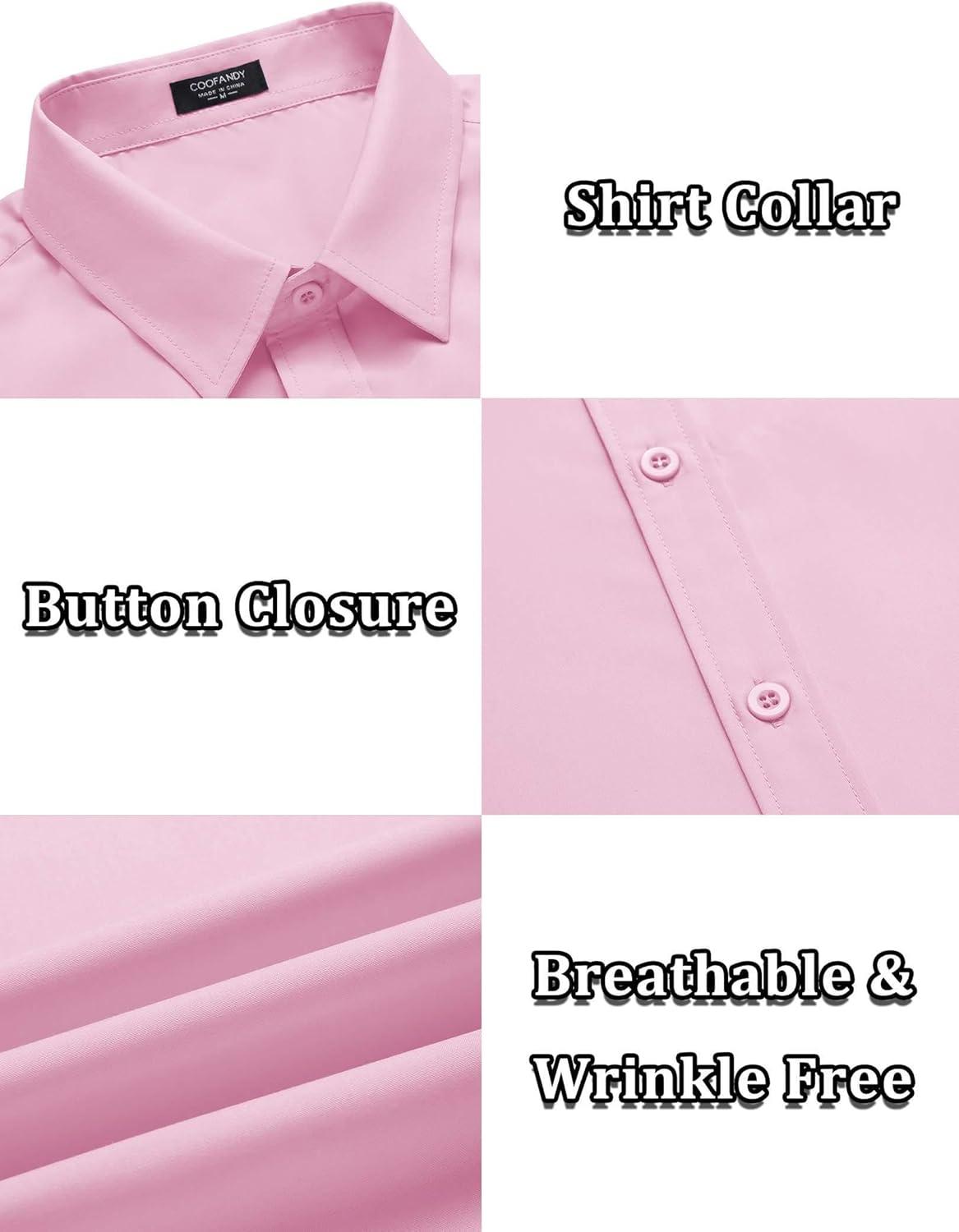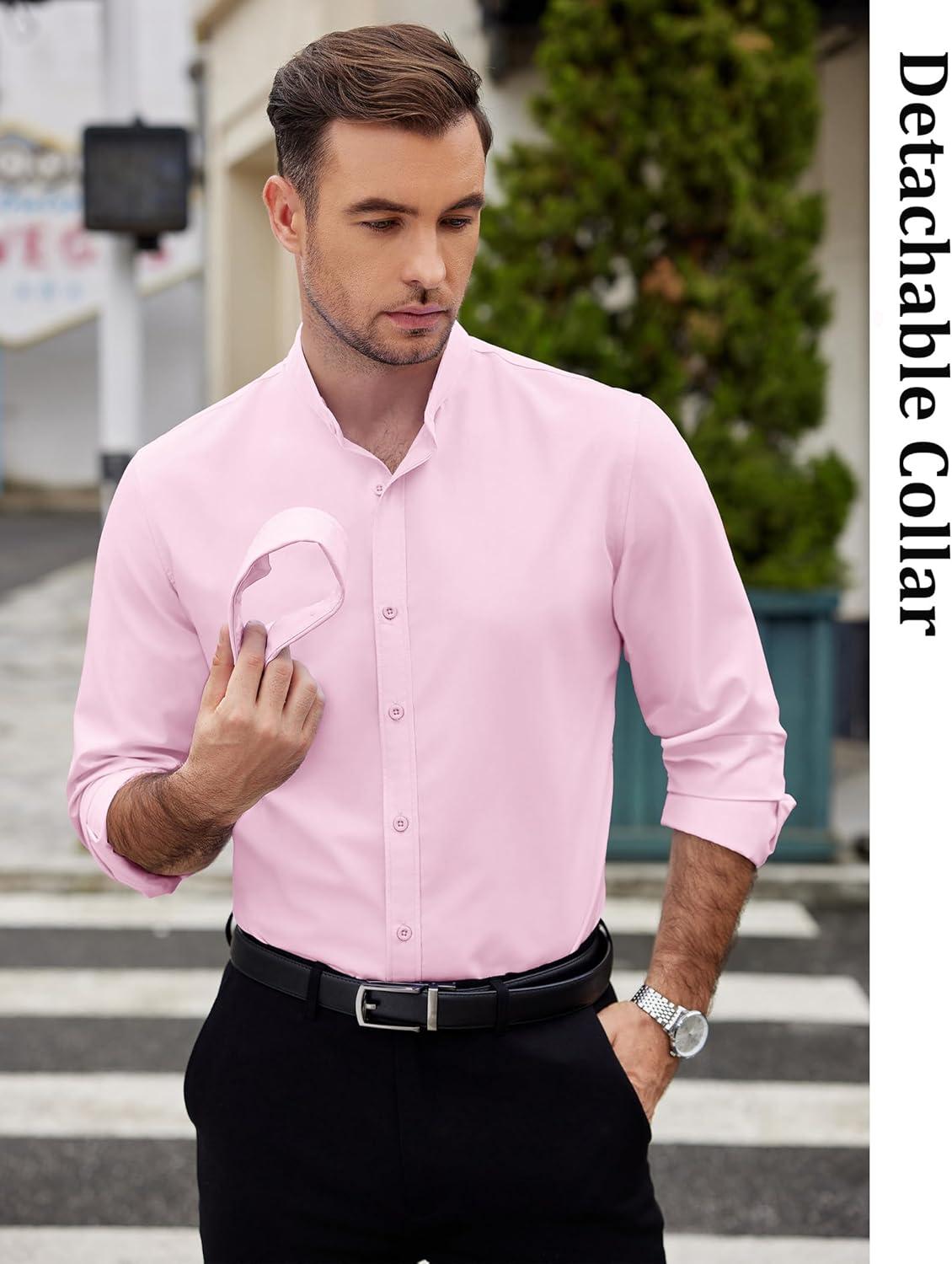 COOFANDY Mens 2-in-1 Dress Shirts Detachable Collar Long Sleeve Wrinkle Free Shirt Business Casual Button Down Shirt(Pink)