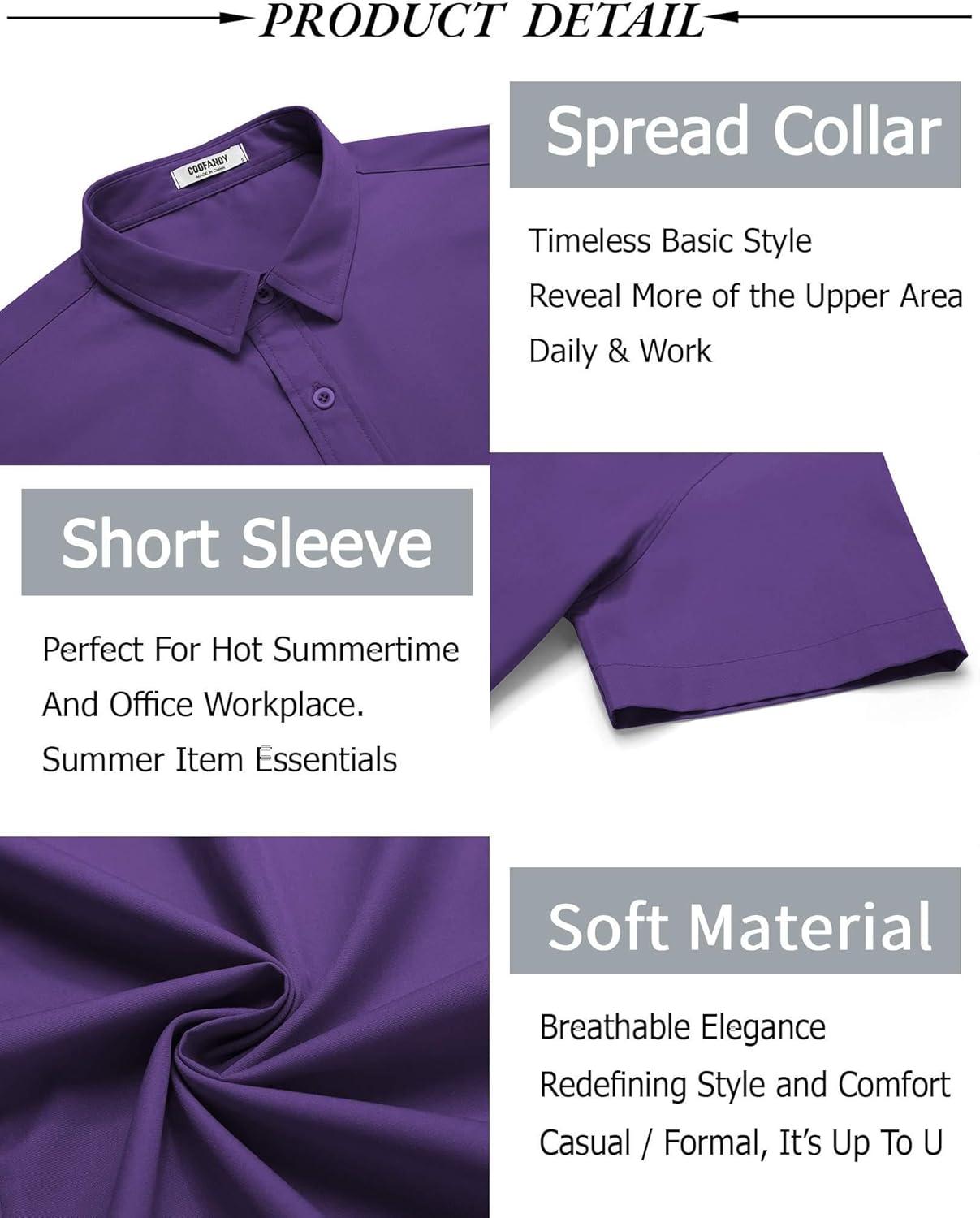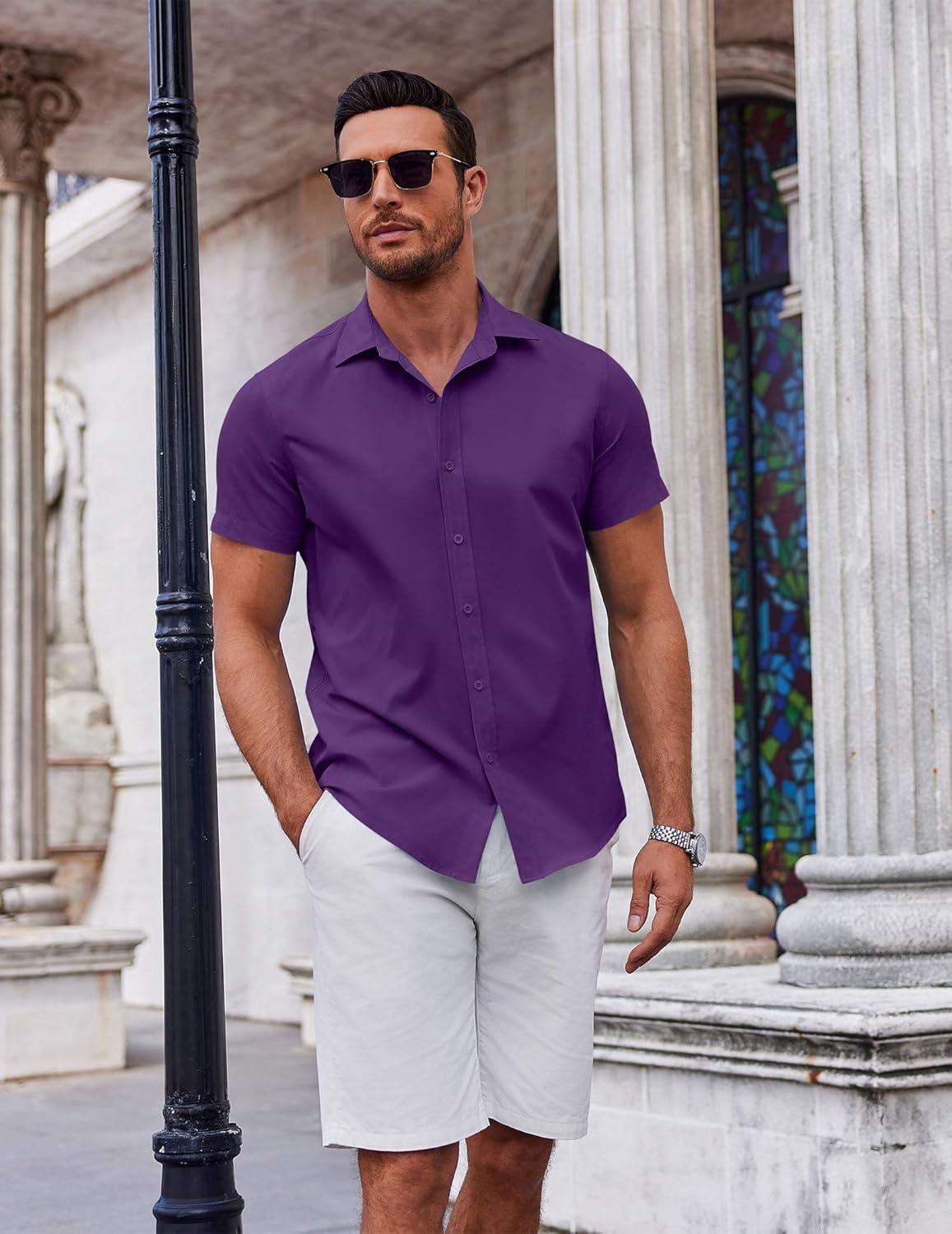 COOFANDY Mens Short Sleeve Dress Shirts Wrinkle Free Button Down Shirts Stain Shield Shirts with Pocket(Purple)