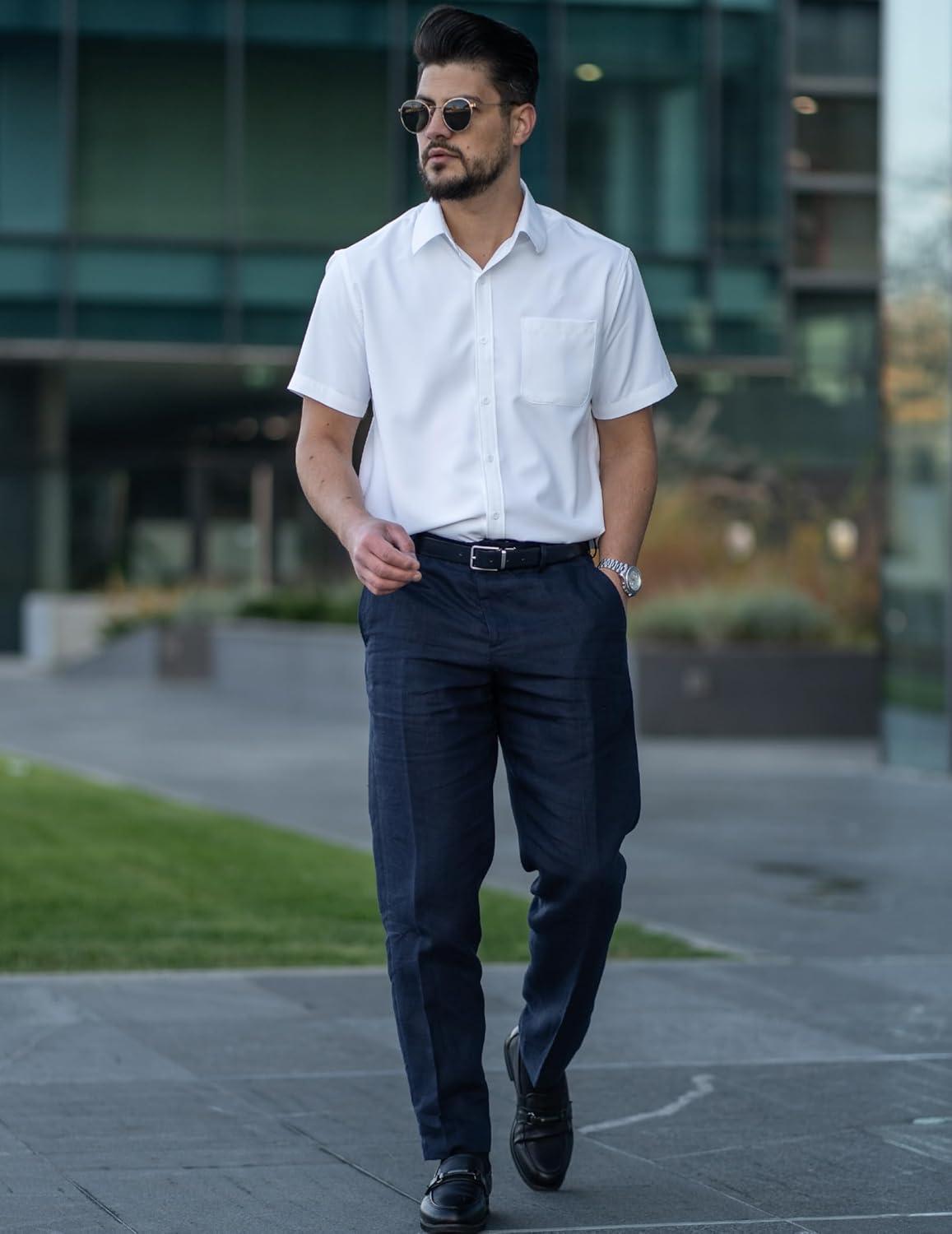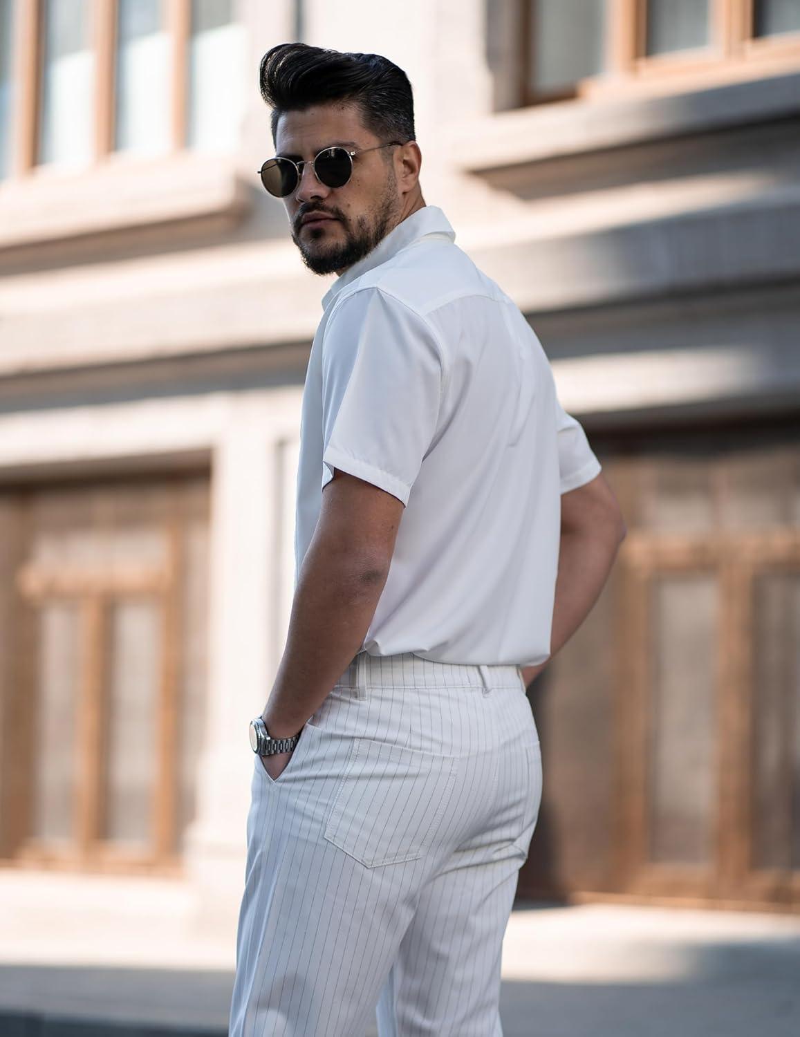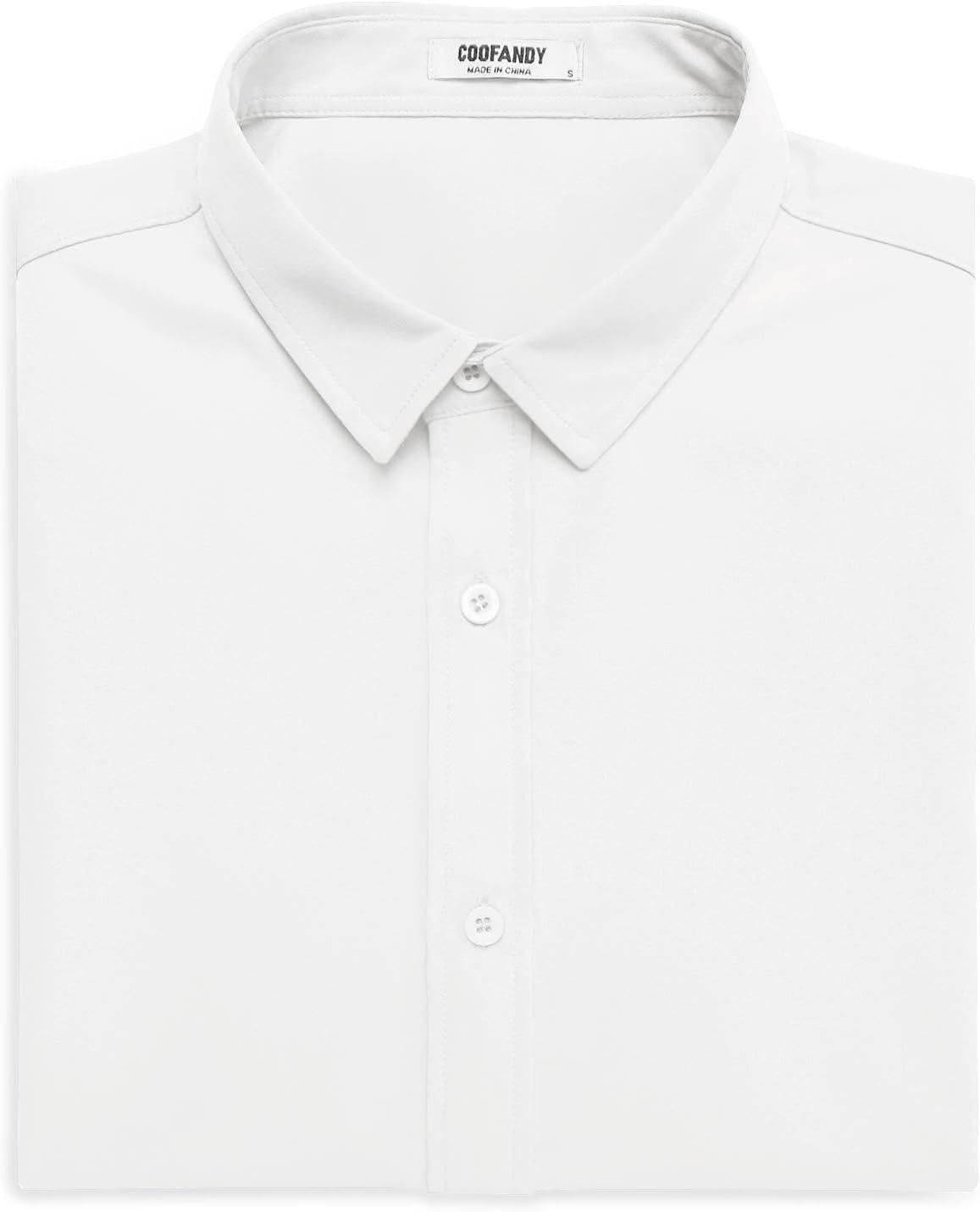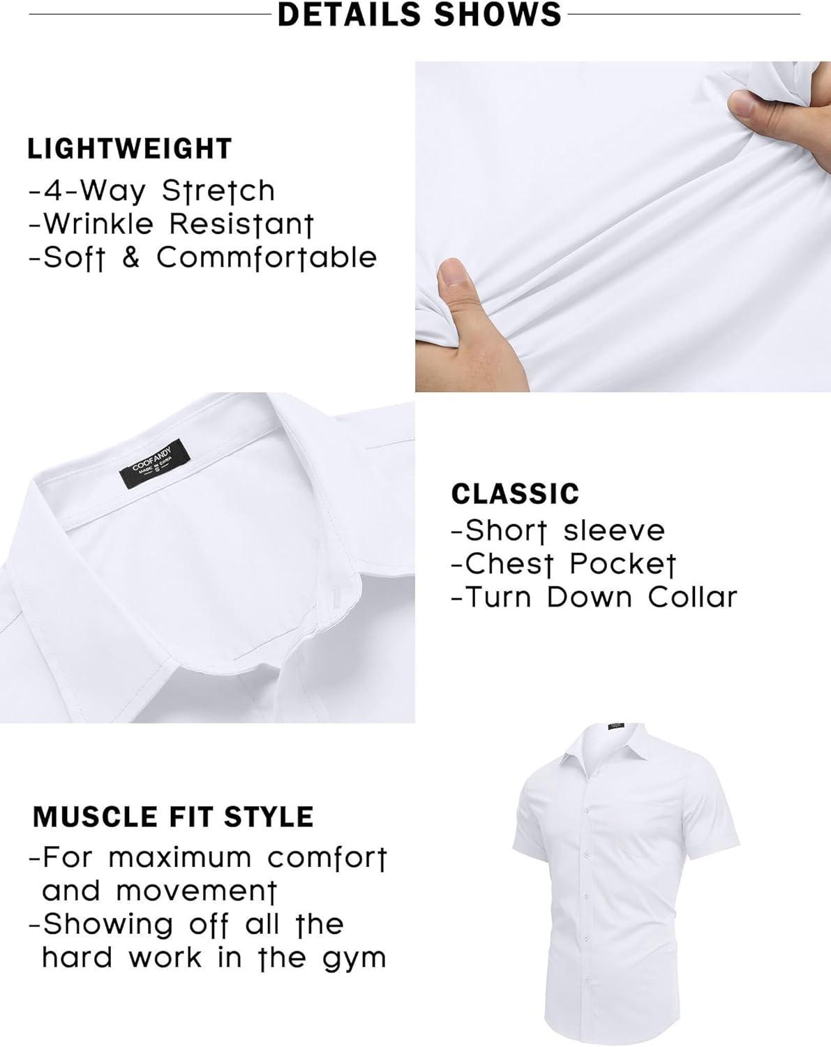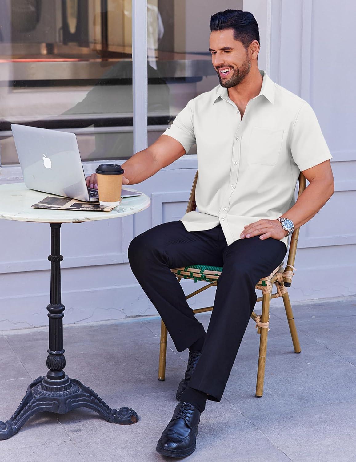 COOFANDY Mens Casual Dress Shirt Short Sleeve Wrinkle Free Dress Shirt Business Casual Shirts(White)