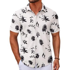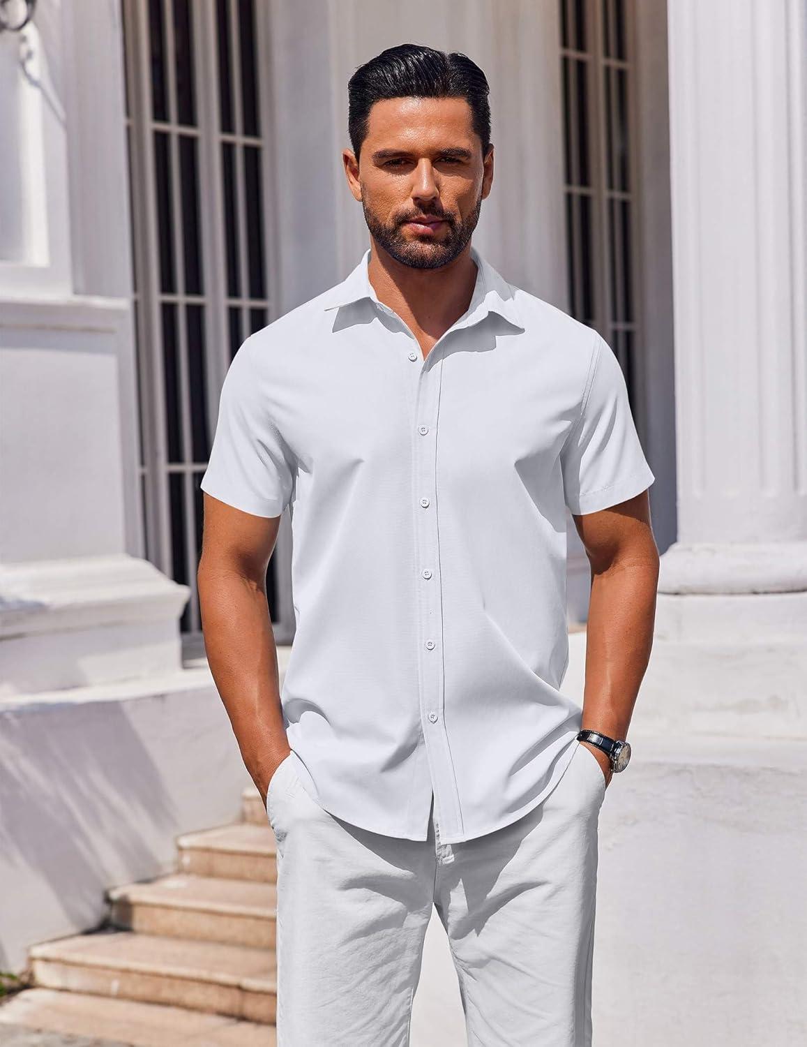 COOFANDY Mens Casual Button Down Shirts Lightweight Short Sleeve Shirts(White)