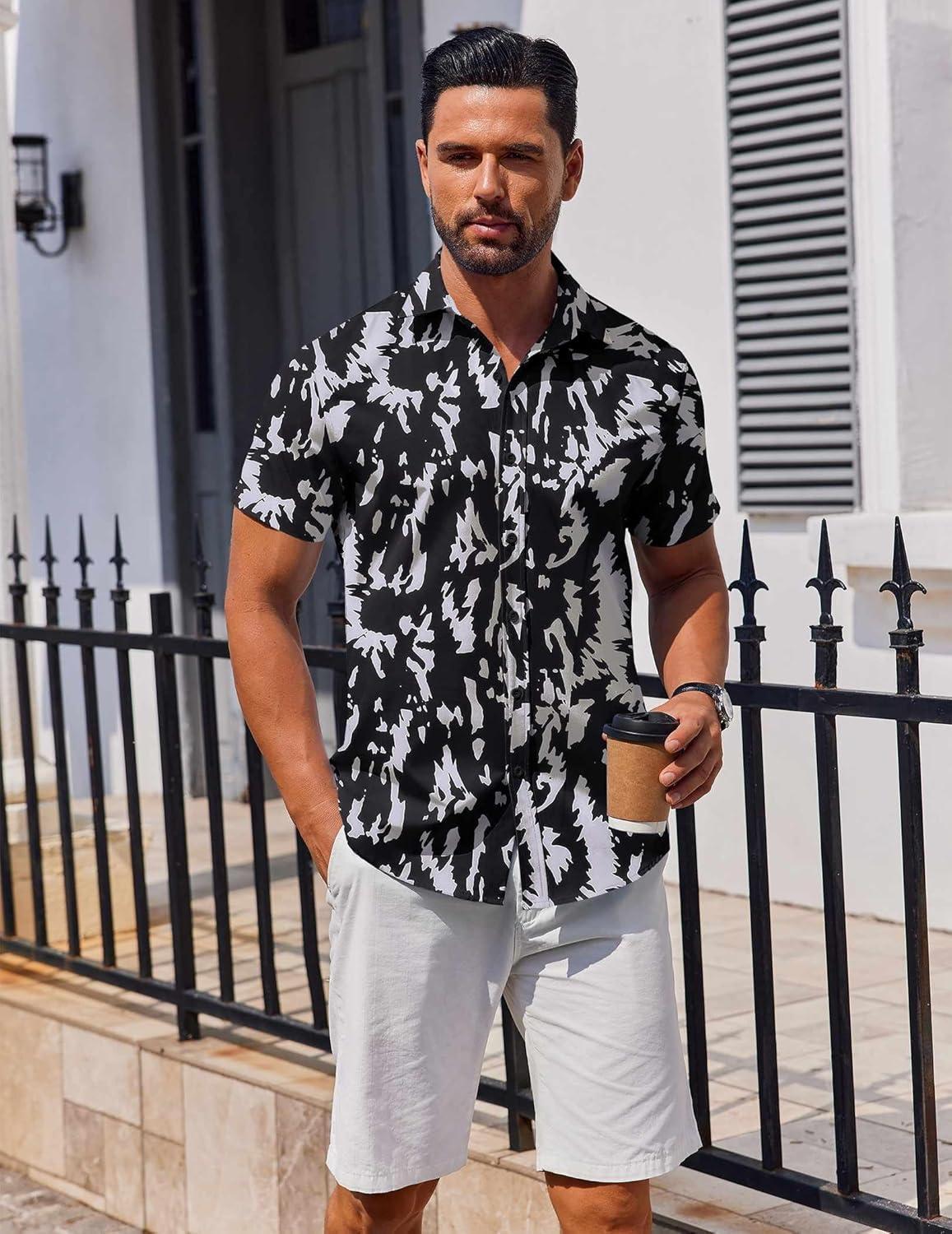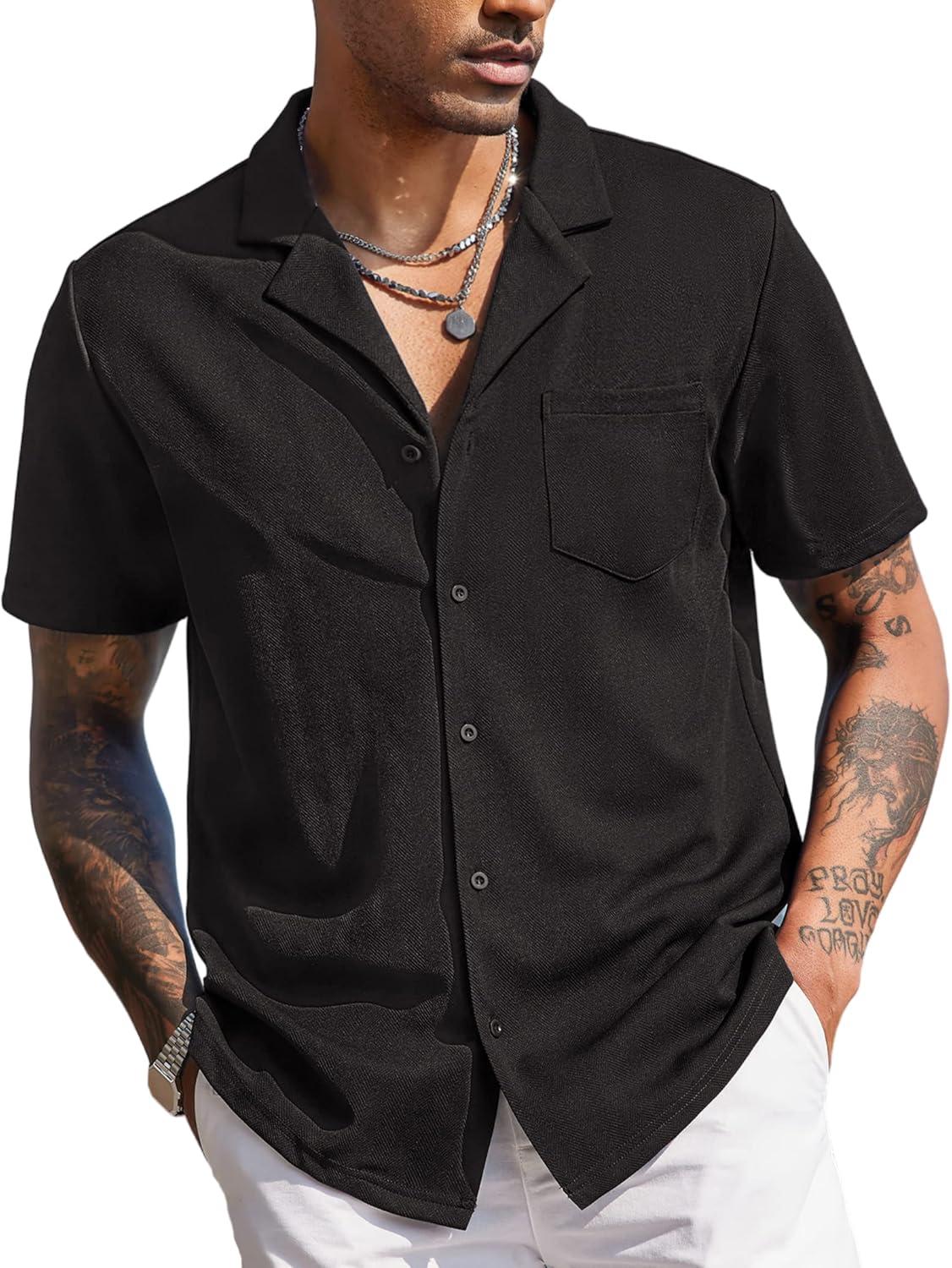 COOFANDY Mens Short Sleeve Button Down Shirts Casual Summer Beach Shirt Wedding Dress Shirts with Pocket(Black)