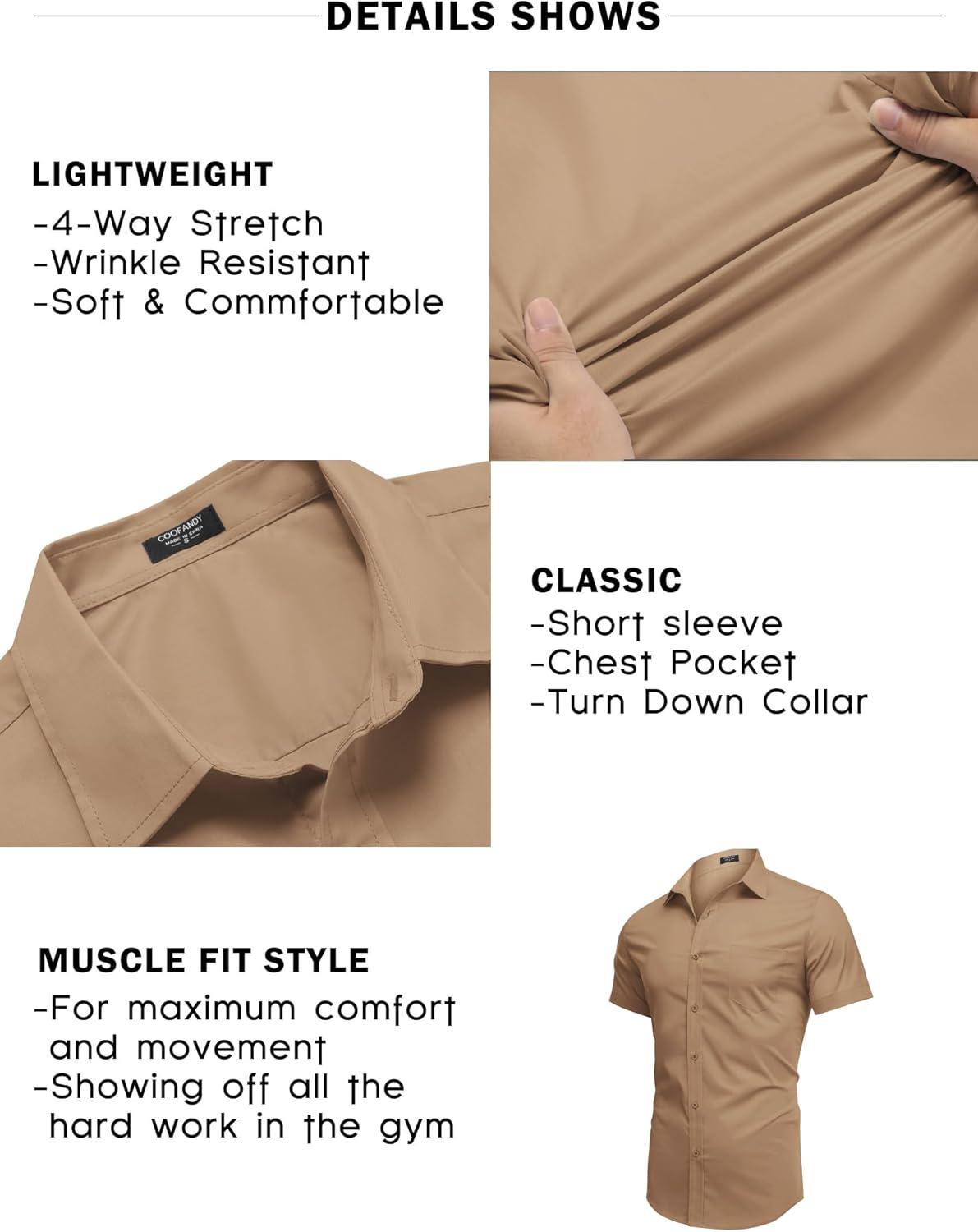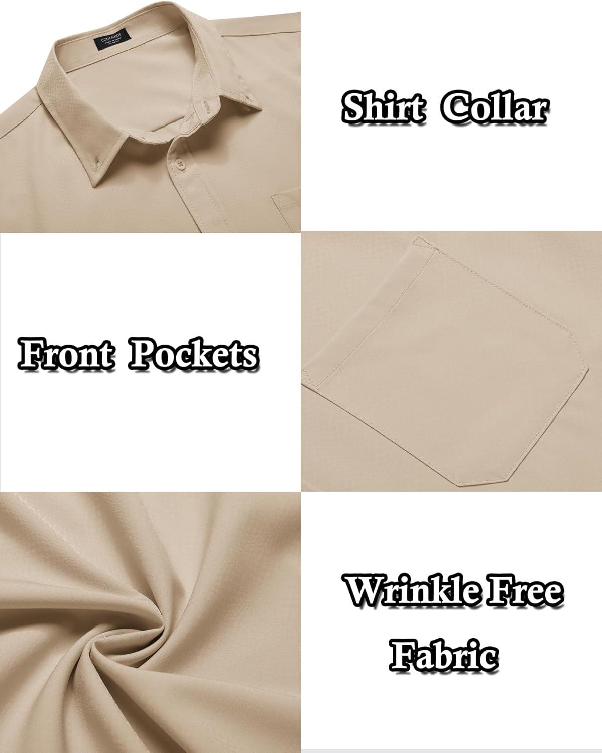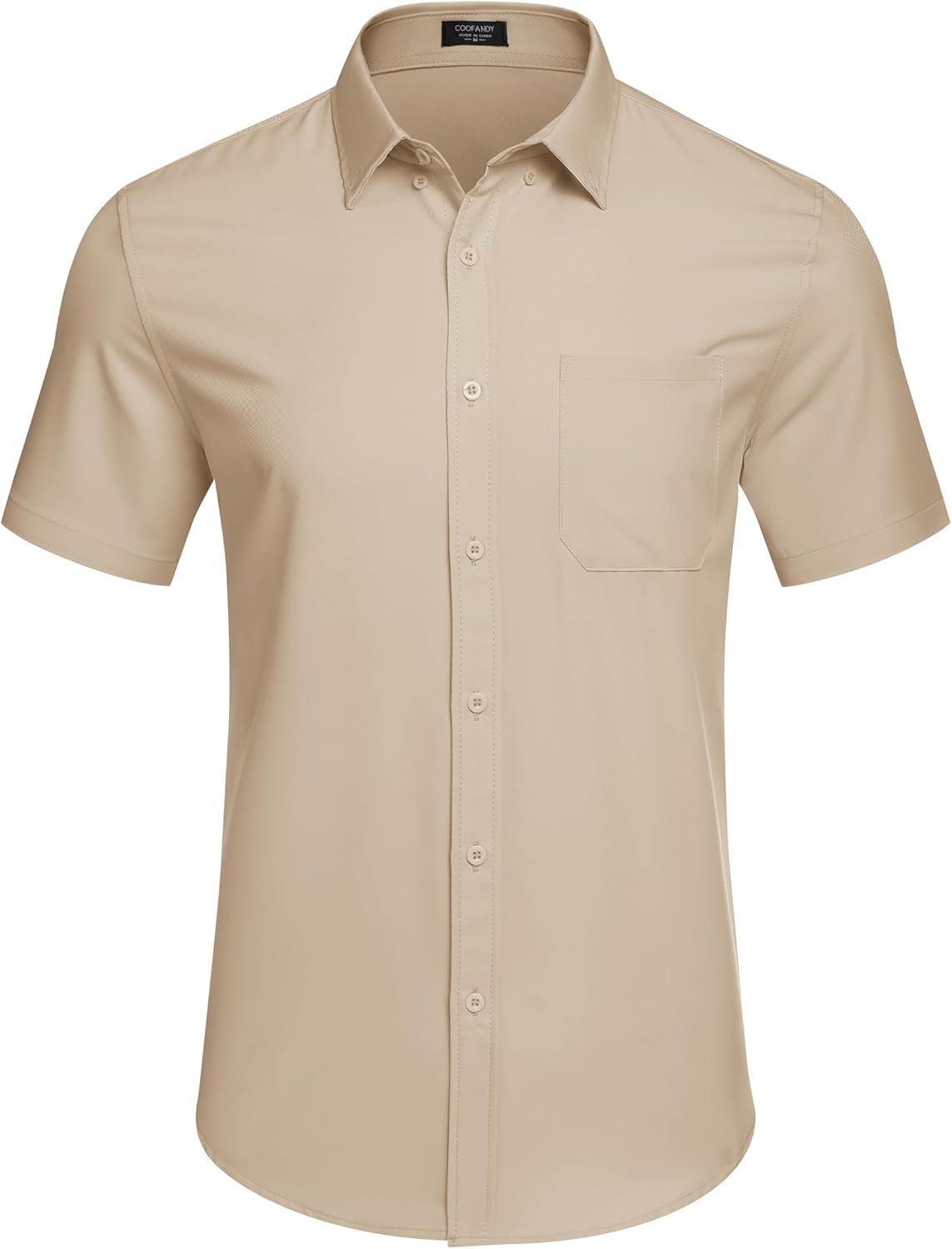 COOFANDY Mens Casual Dress Shirt Short Sleeve Wrinkle Free Dress Shirt Business Casual Shirts(Light Khaki)
