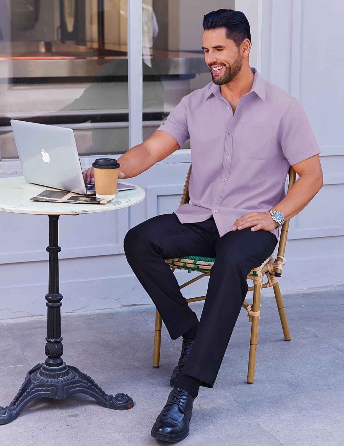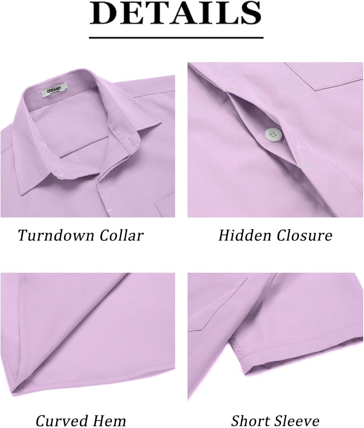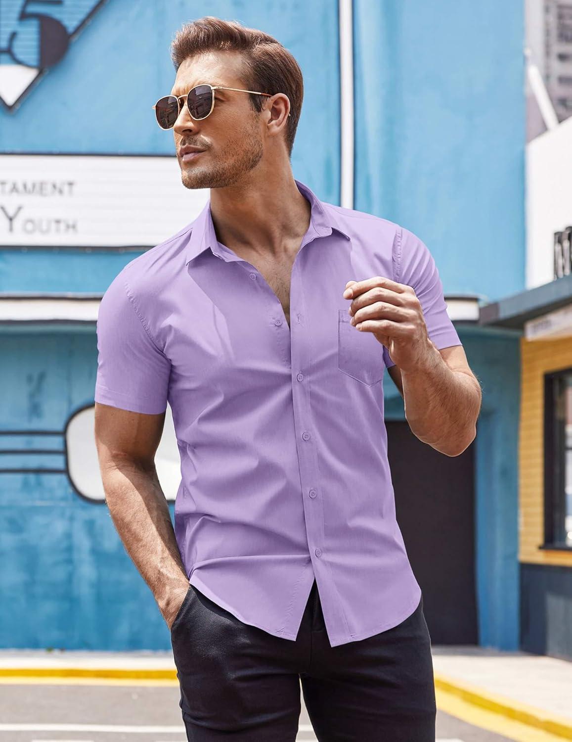 COOFANDY Men’s Dress Shirt Short Sleeve Button Down Shirts with Pocket(Lavender)