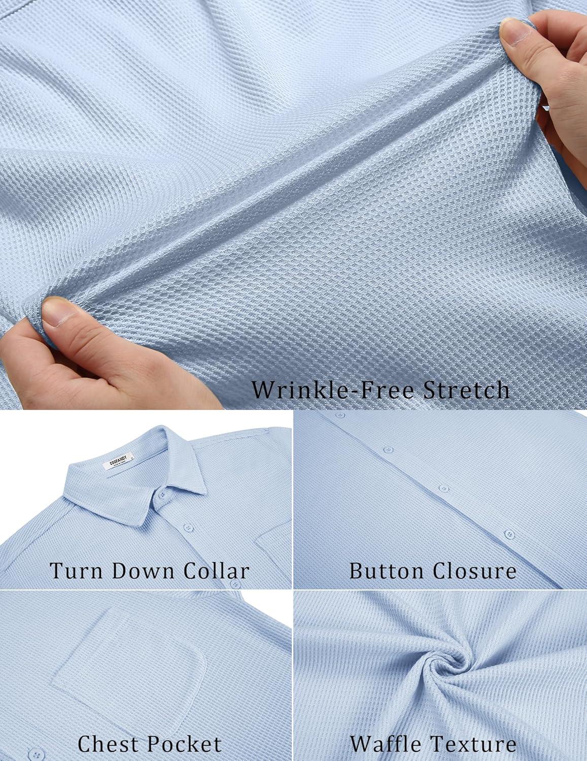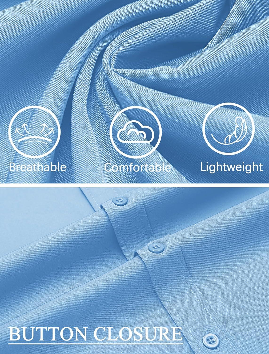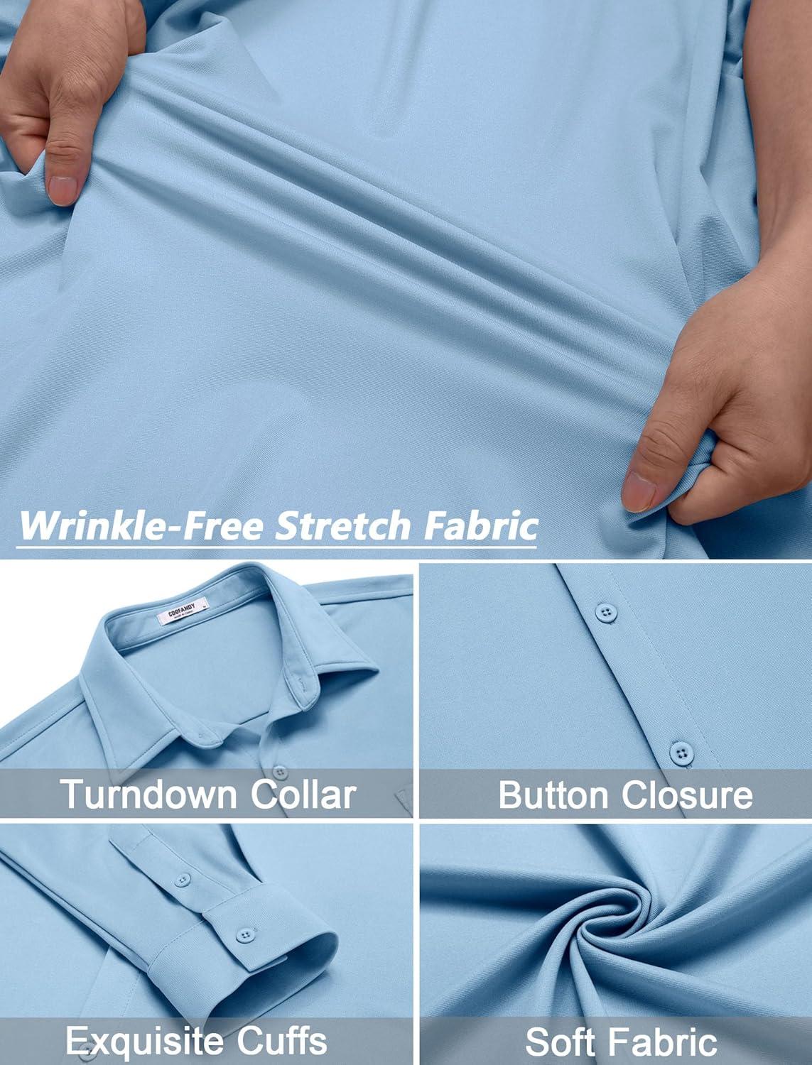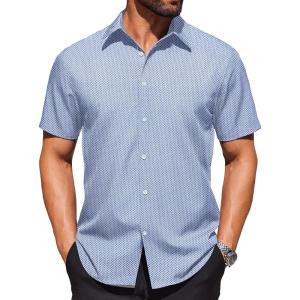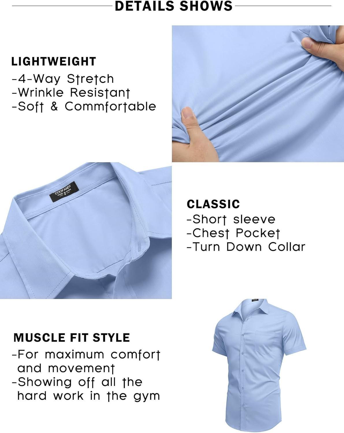 COOFANDY Mens Casual Dress Shirt Short Sleeve Wrinkle Free Dress Shirt Business Casual Shirts(Light Blue)