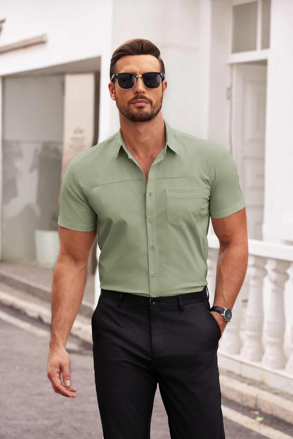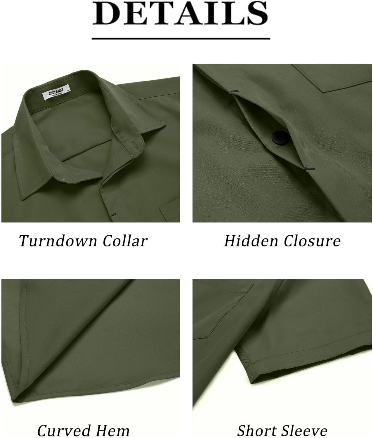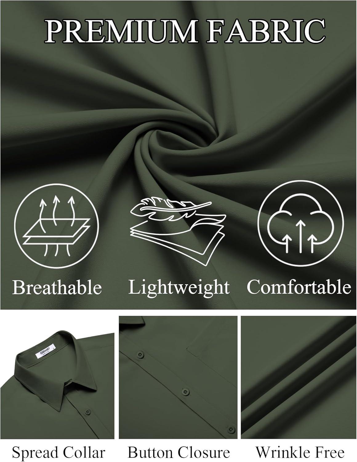 COOFANDY Mens Short Sleeve Dress Shirts Wrinkle Free Button Down Shirts Stain Shield Shirts with Pocket(Dark Army Green)