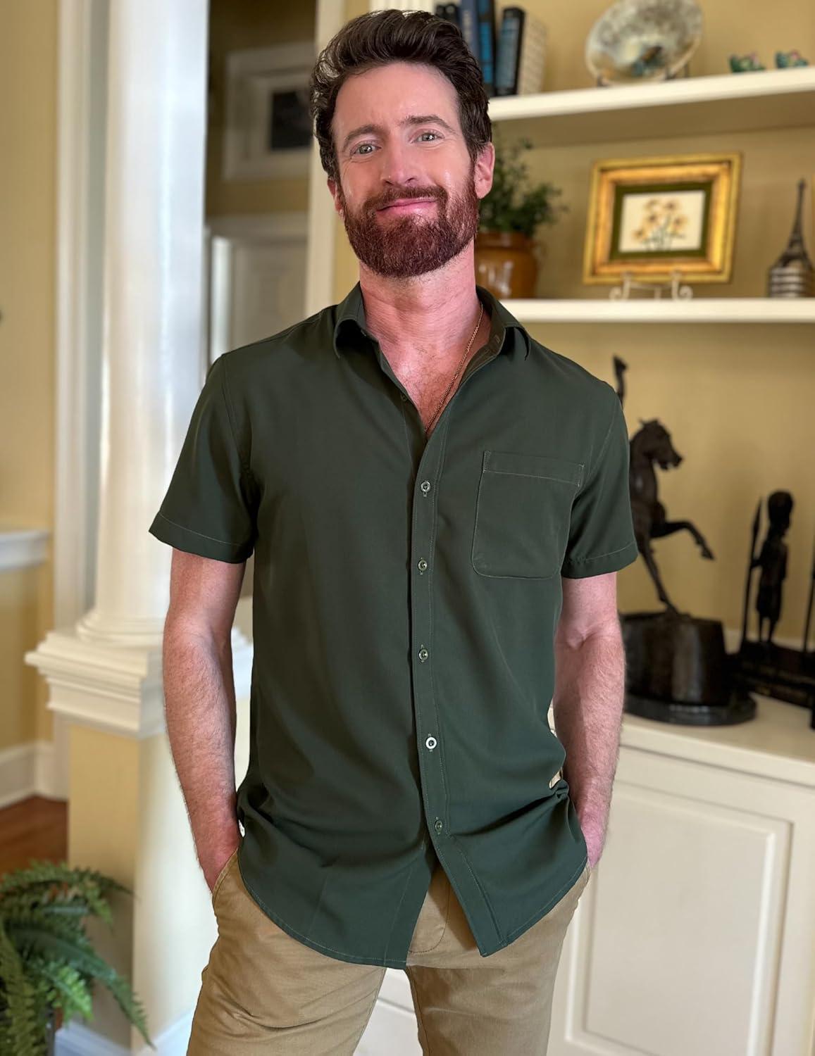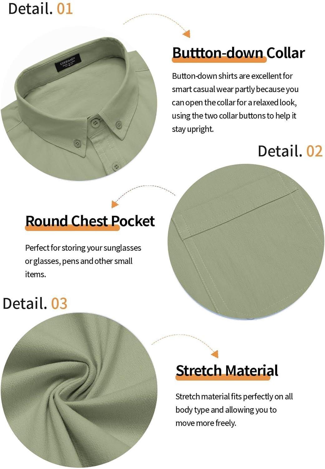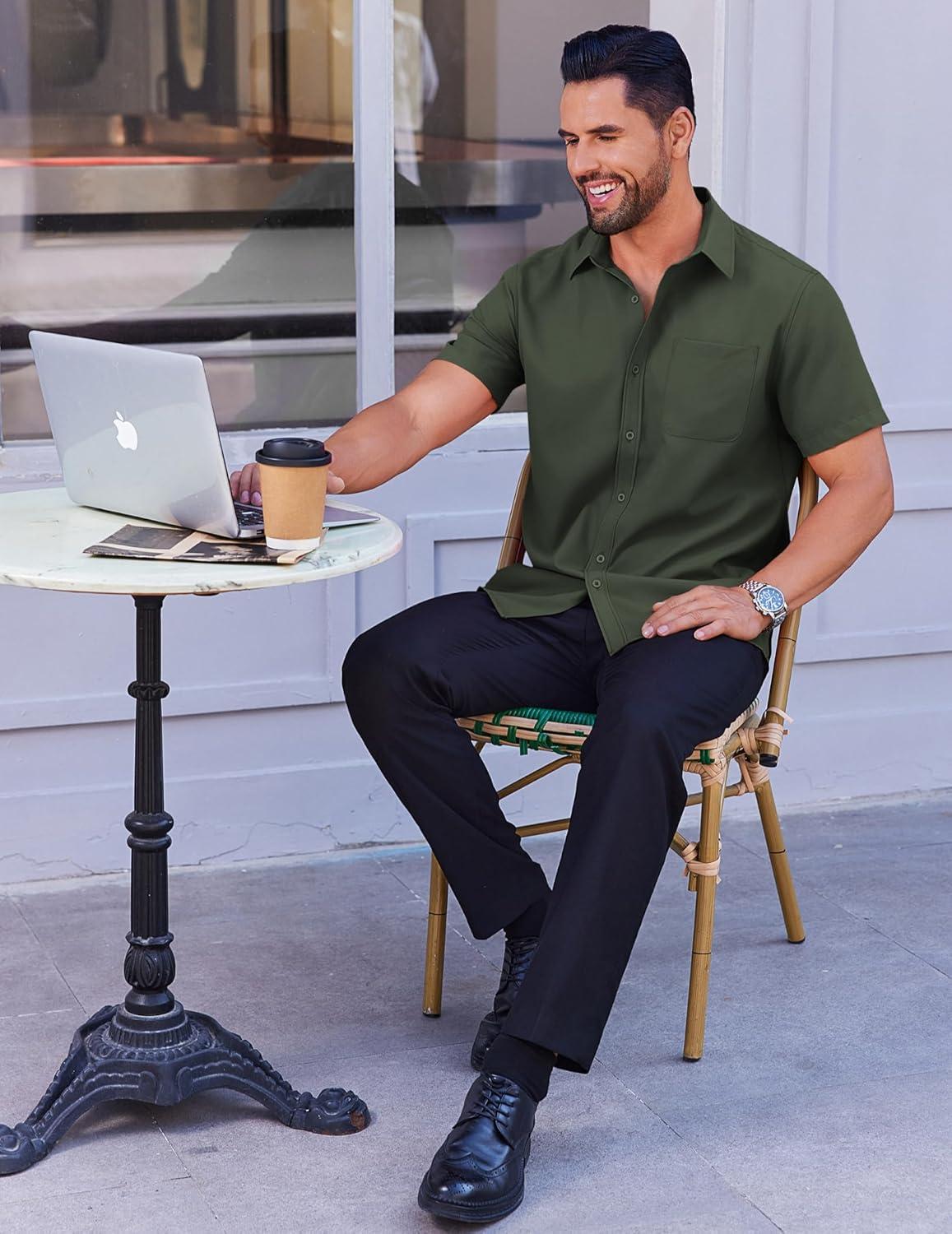 COOFANDY Mens Short Sleeve Dress Shirts Wrinkle Free Button Down Shirts Stain Shield Shirts with Pocket(Dark Army Green)