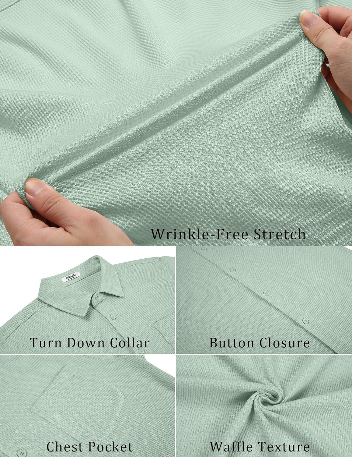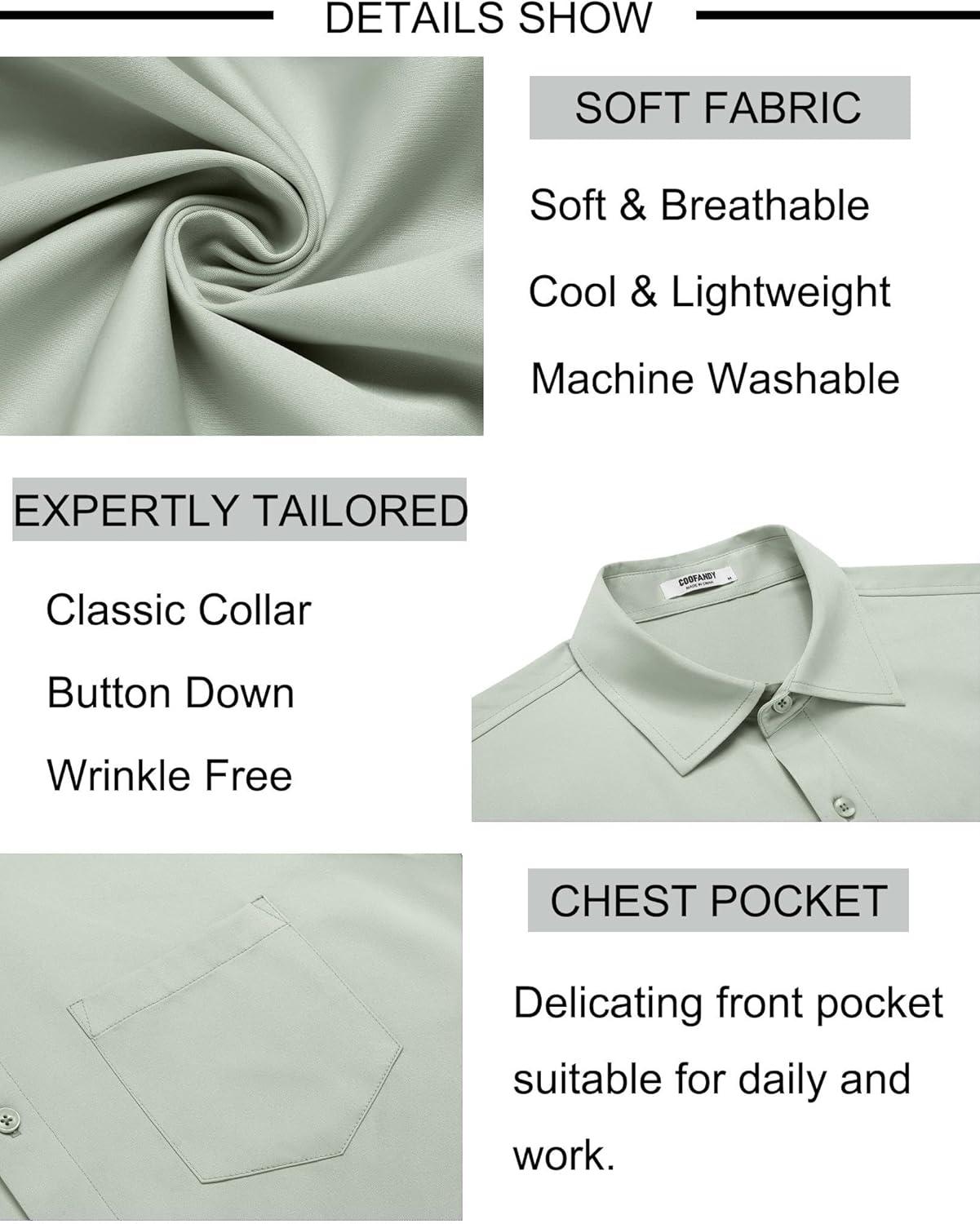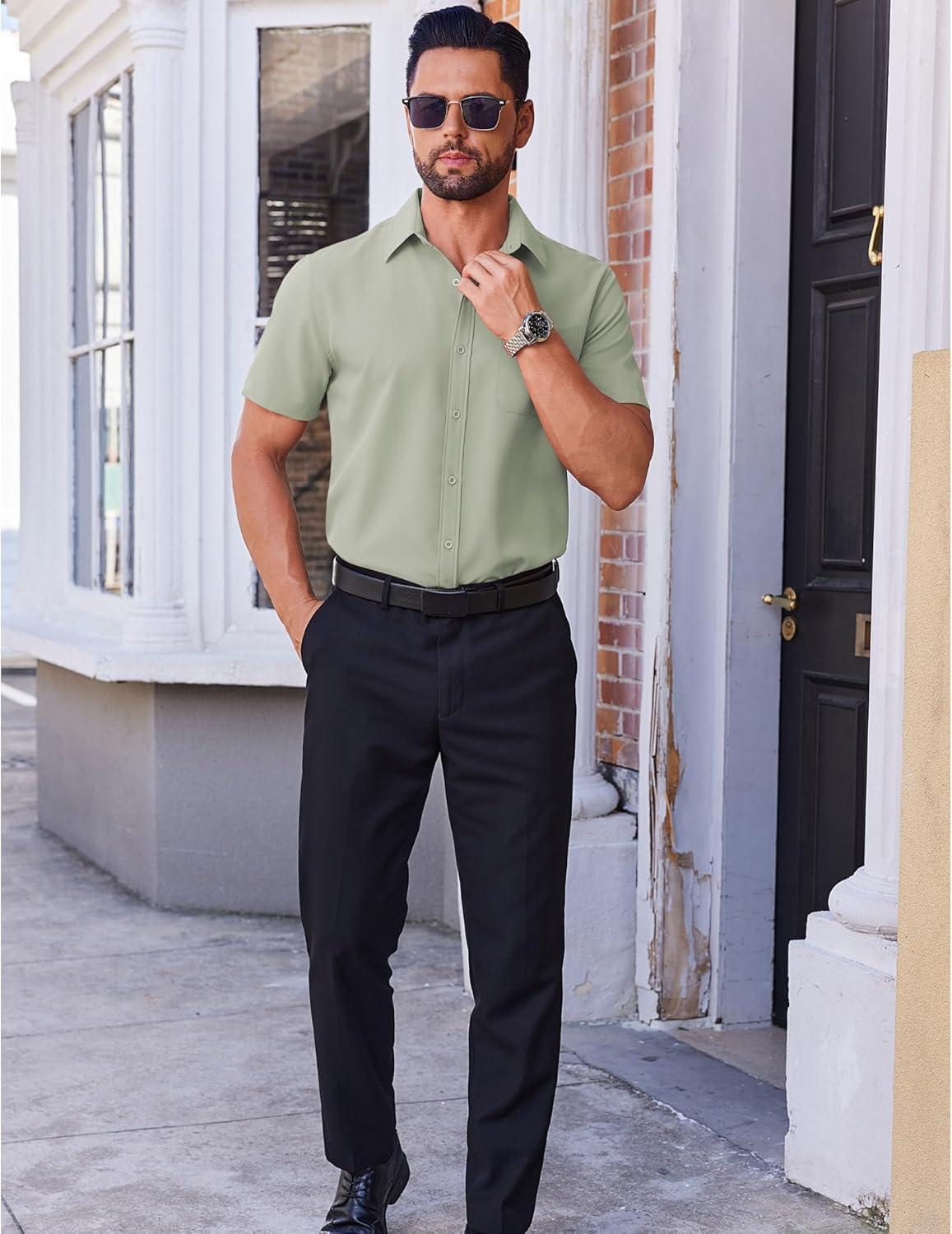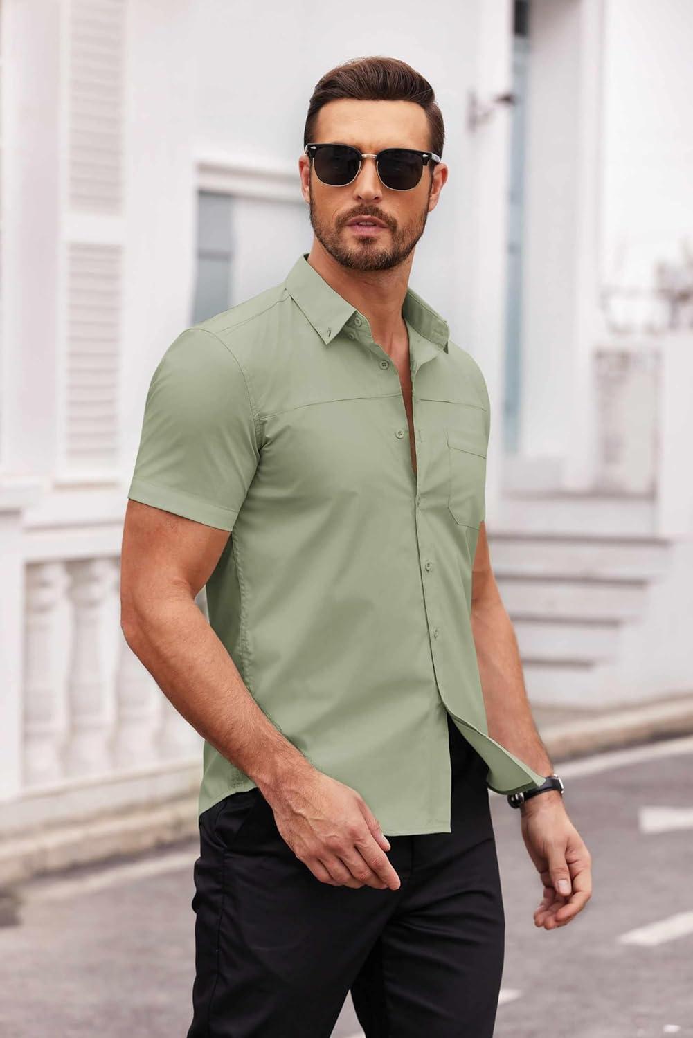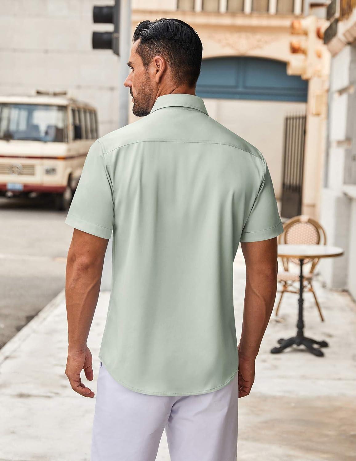 COOFANDY Mens Short Sleeve Dress Shirts Wrinkle Free Button Down Shirts Stain Shield Shirts with Pocket(Light Green)
