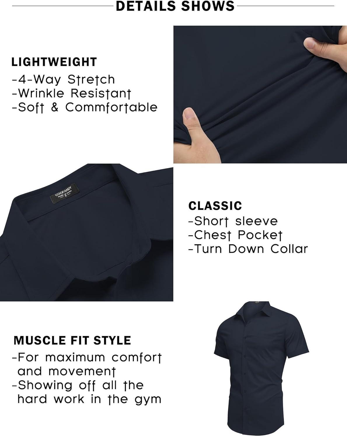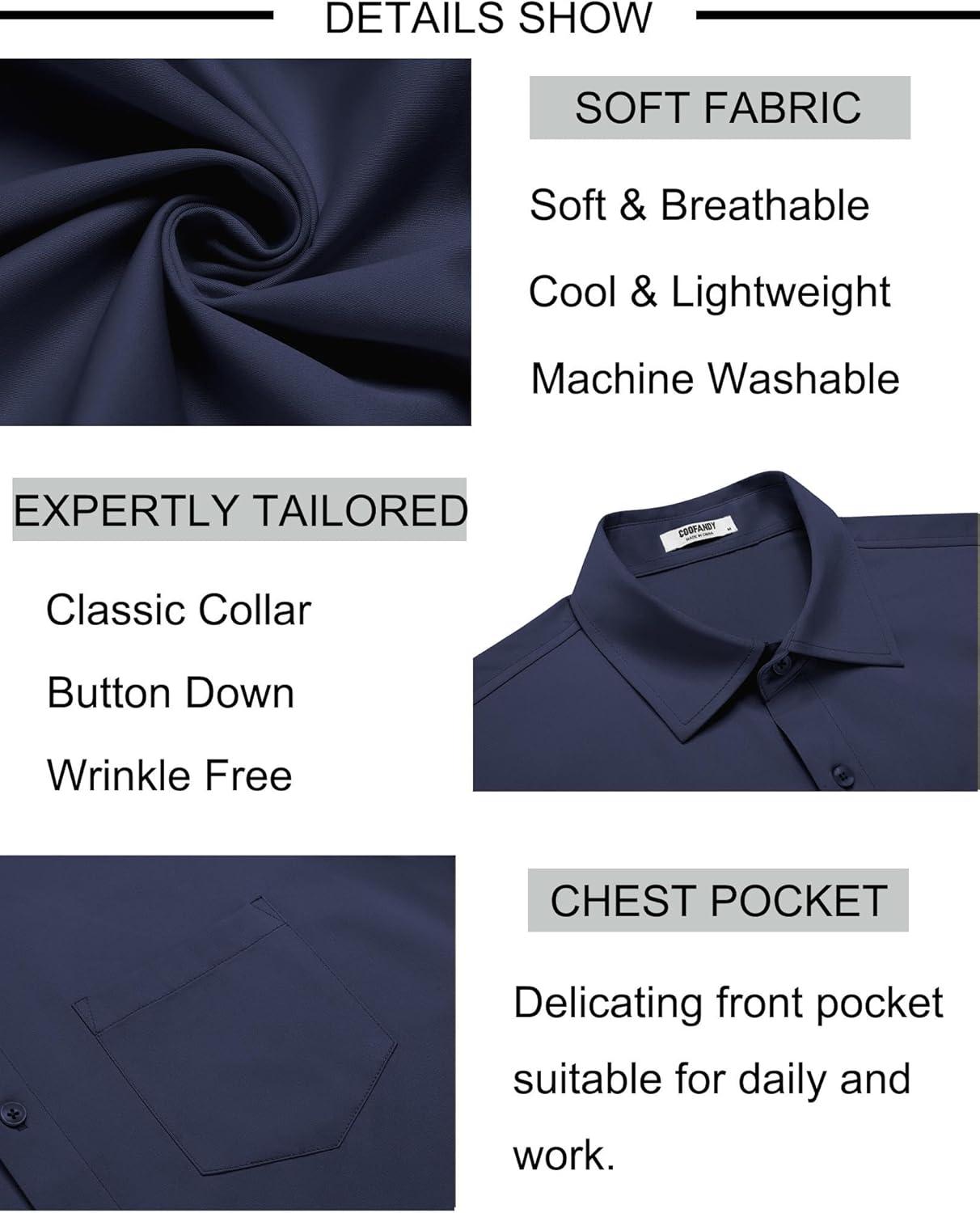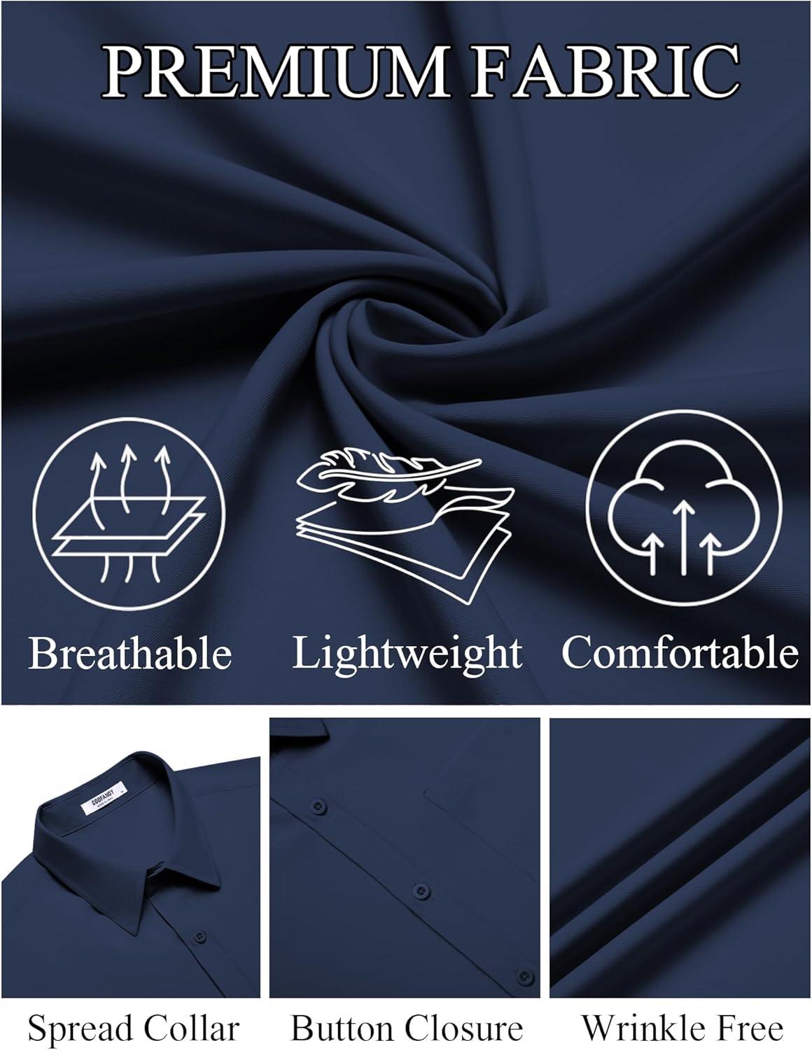 COOFANDY Mens Casual Dress Shirt Short Sleeve Wrinkle Free Dress Shirt Business Casual Shirts(Navy Blue)
