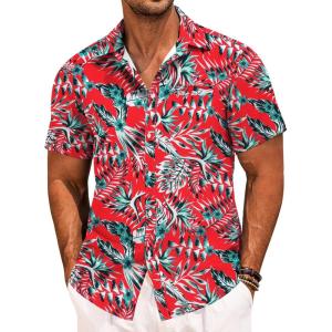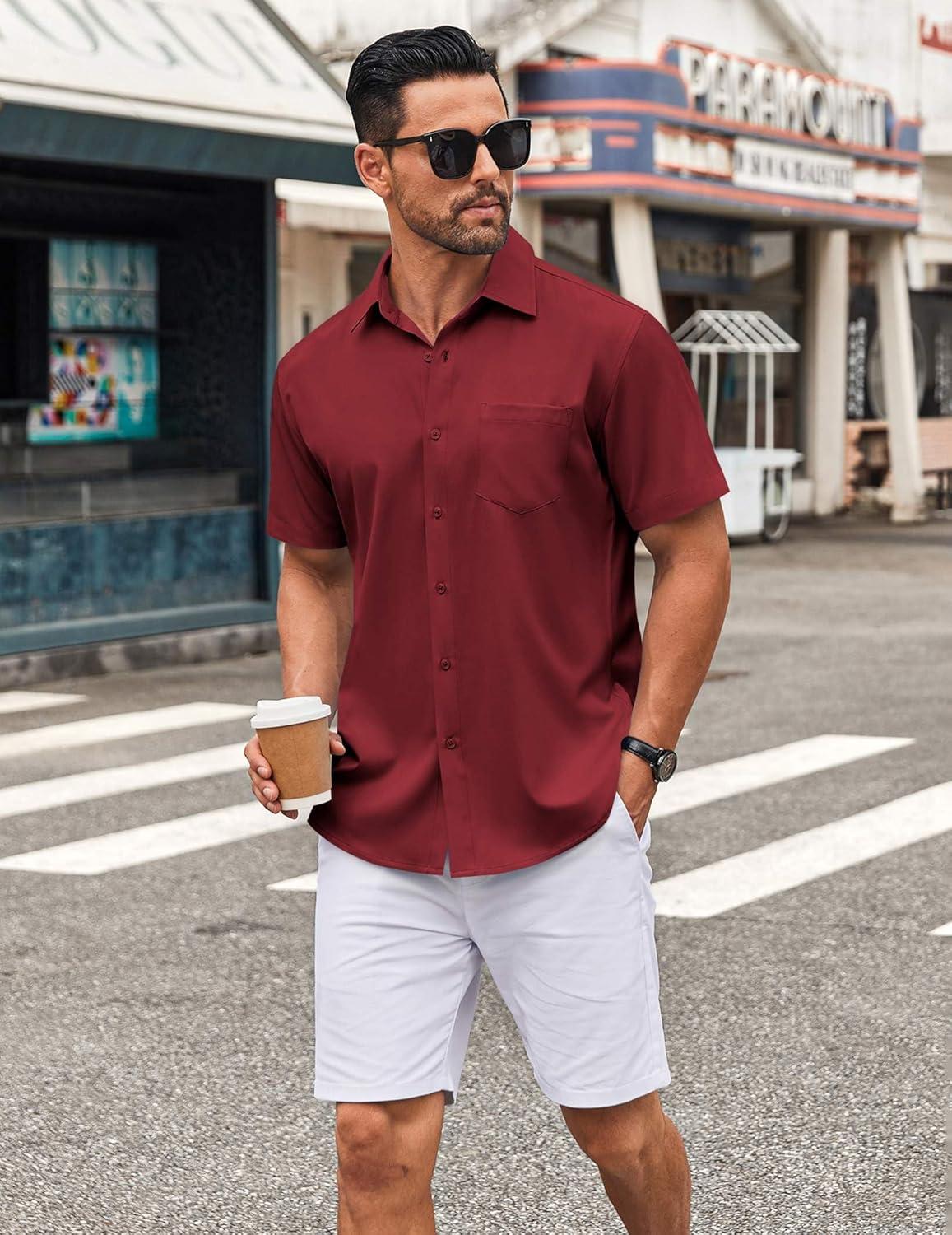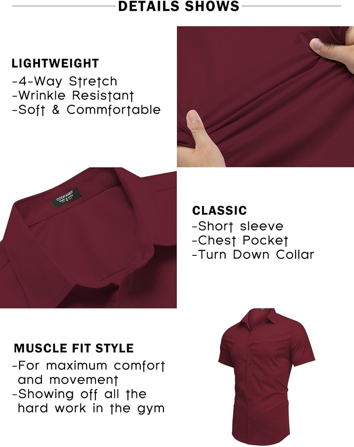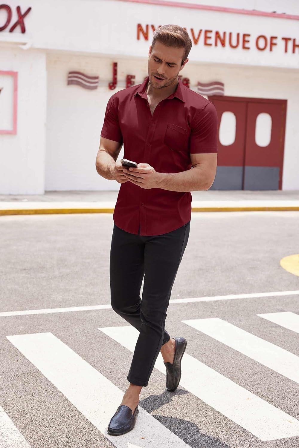 COOFANDY Men’s Casual Button Down Shirts Stretch Short Sleeve Business Dress Shirt with Pocket(Cotton – Red2)