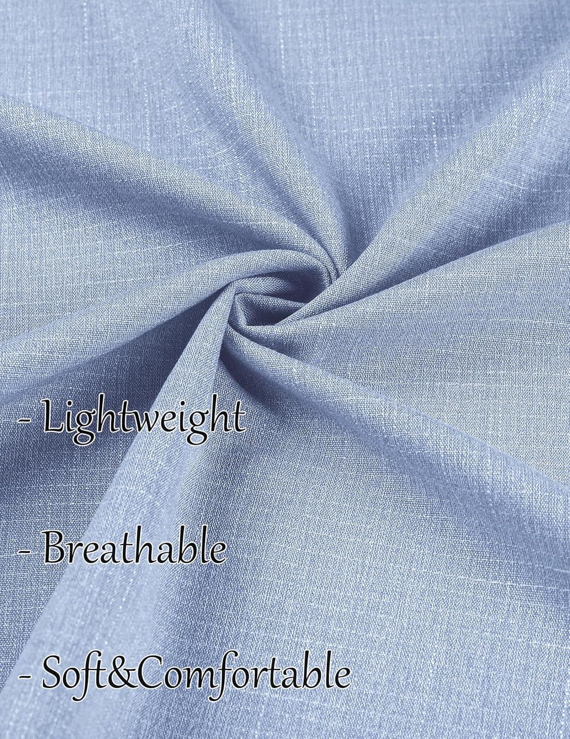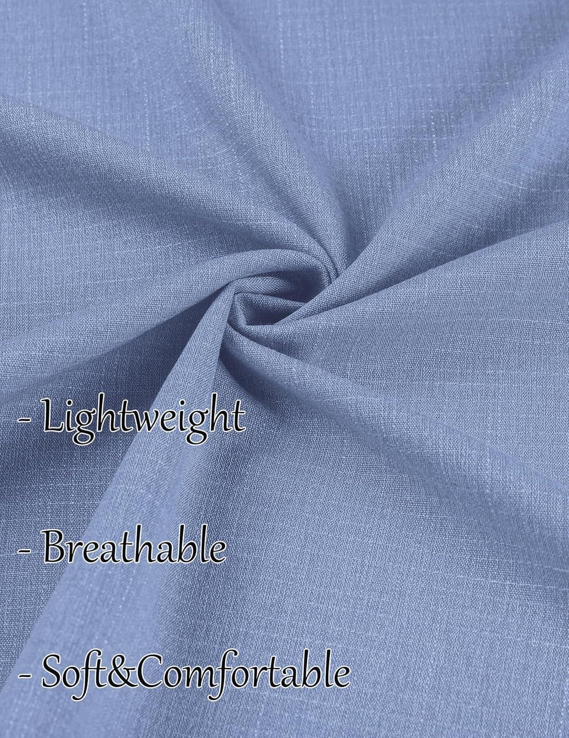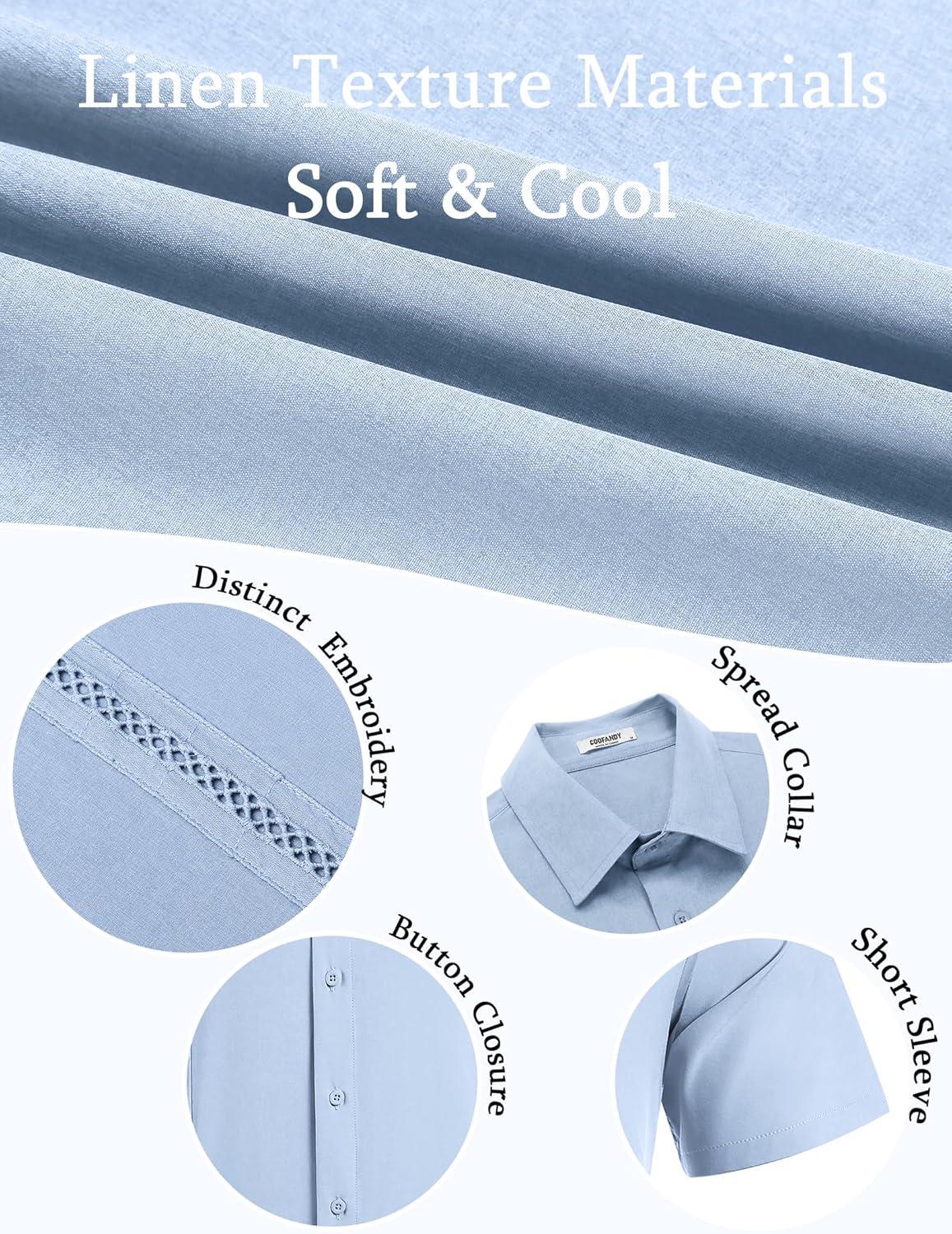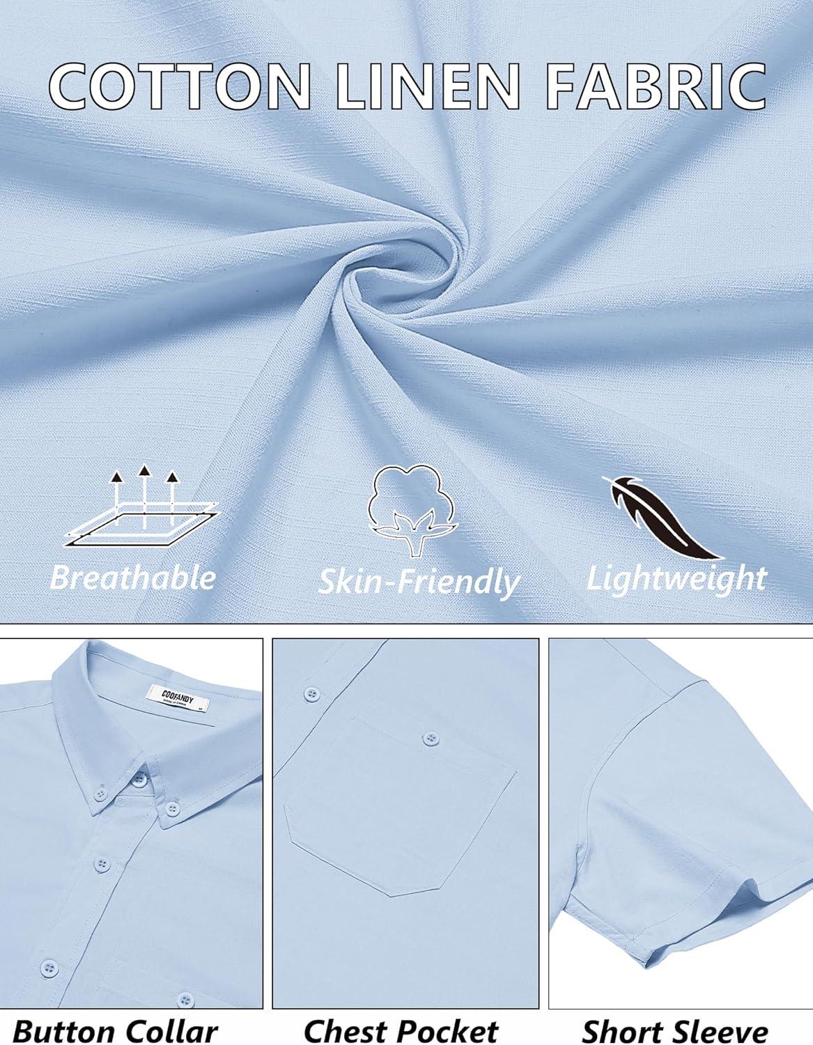 COOFANDY Men’s Cotton Linen Shirts Short Sleeve Casual Shirts Summer Button Down Shirt Linen Beach Vacation Shirt(Light Blue)