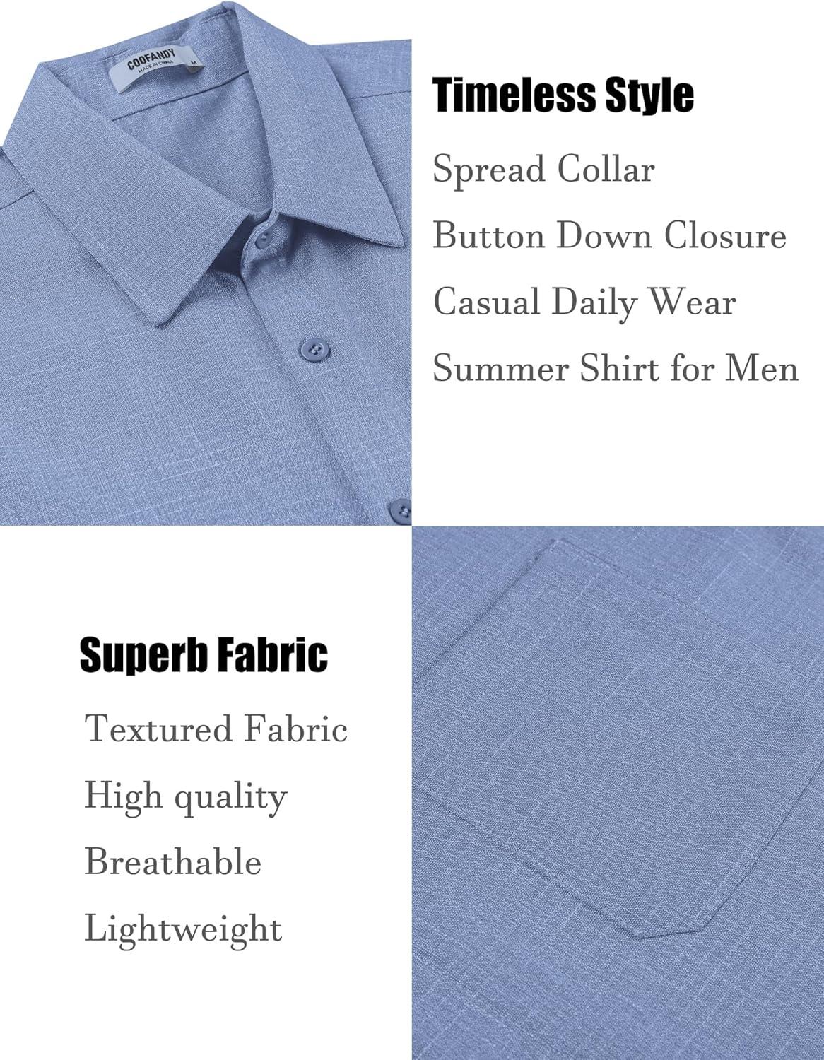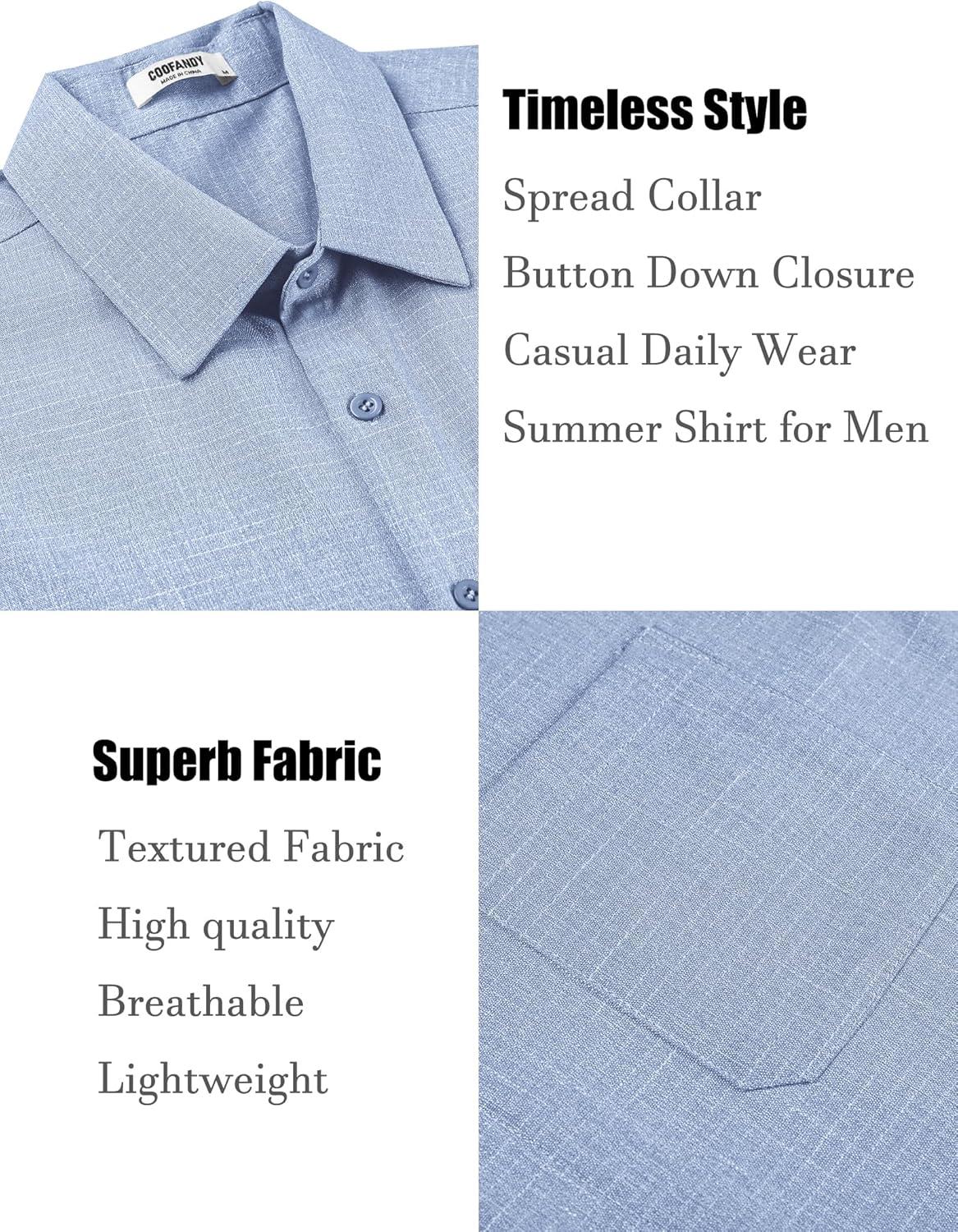 COOFANDY Men’s Linen Shirts Short Sleeve Casual Shirts Summer Beach Button Down Shirts with Pocket(Azure)
