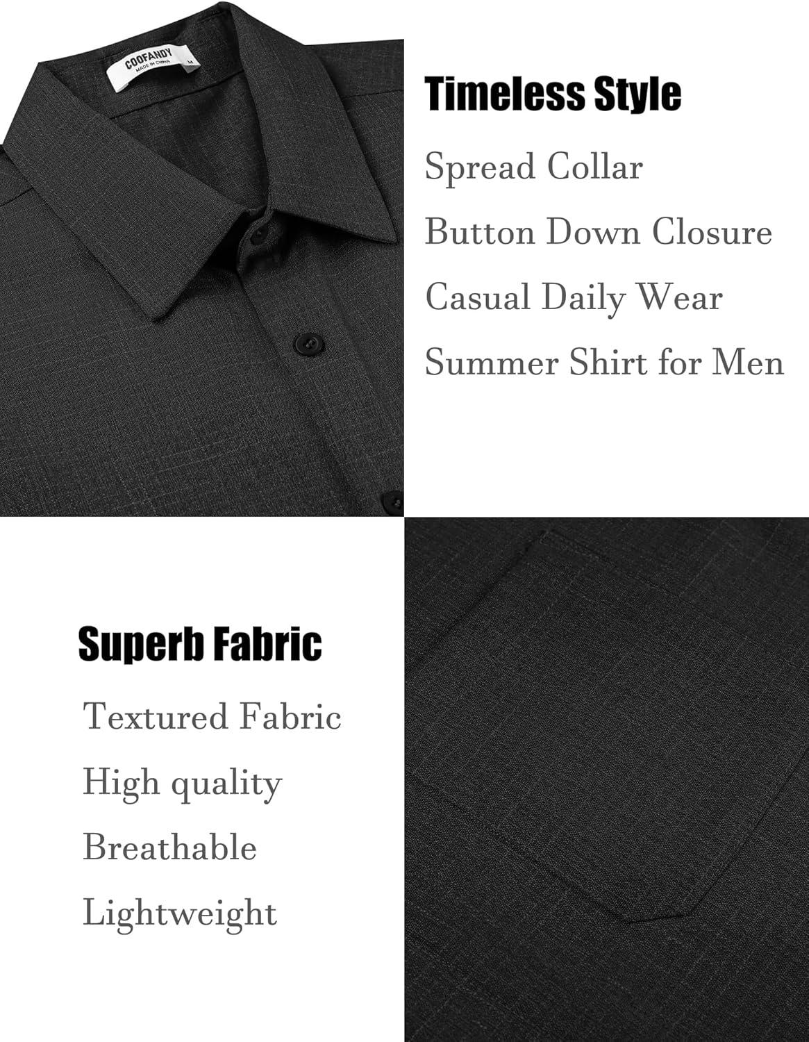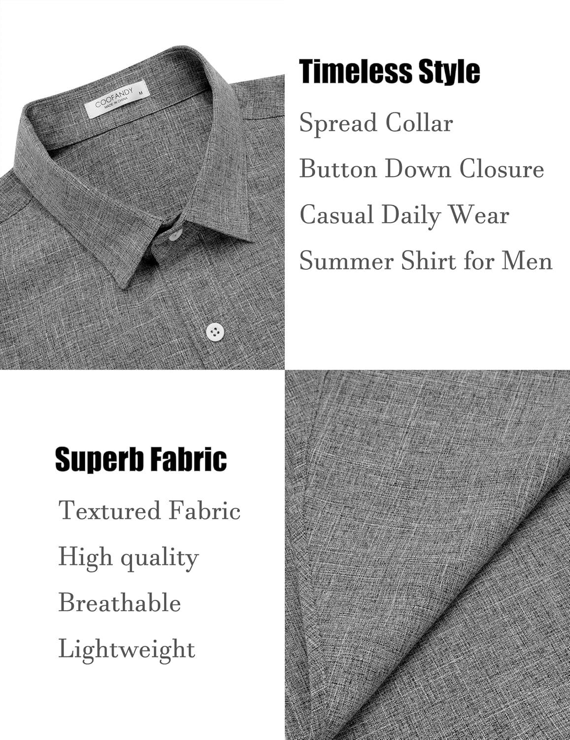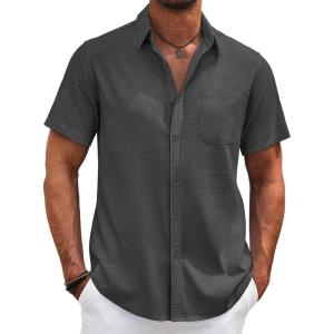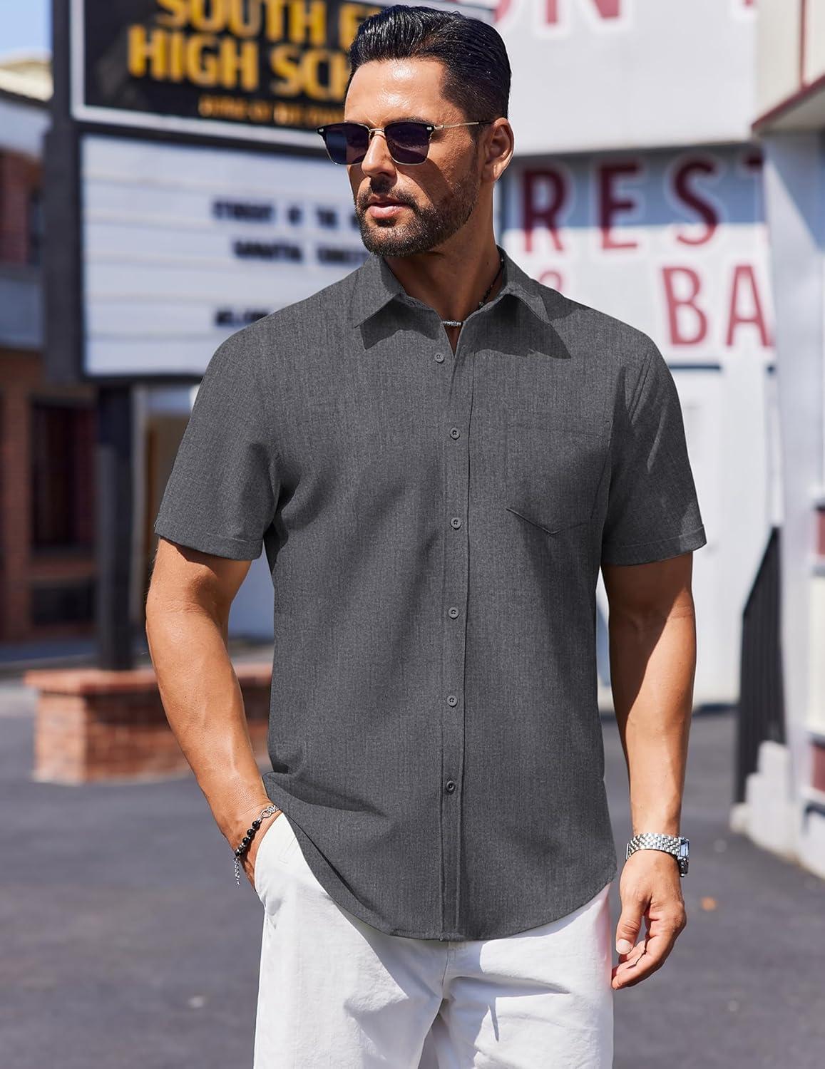 COOFANDY Men’s Linen Shirts Short Sleeve Casual Shirts Summer Beach Button Down Shirts with Pocket(Dark Grey)