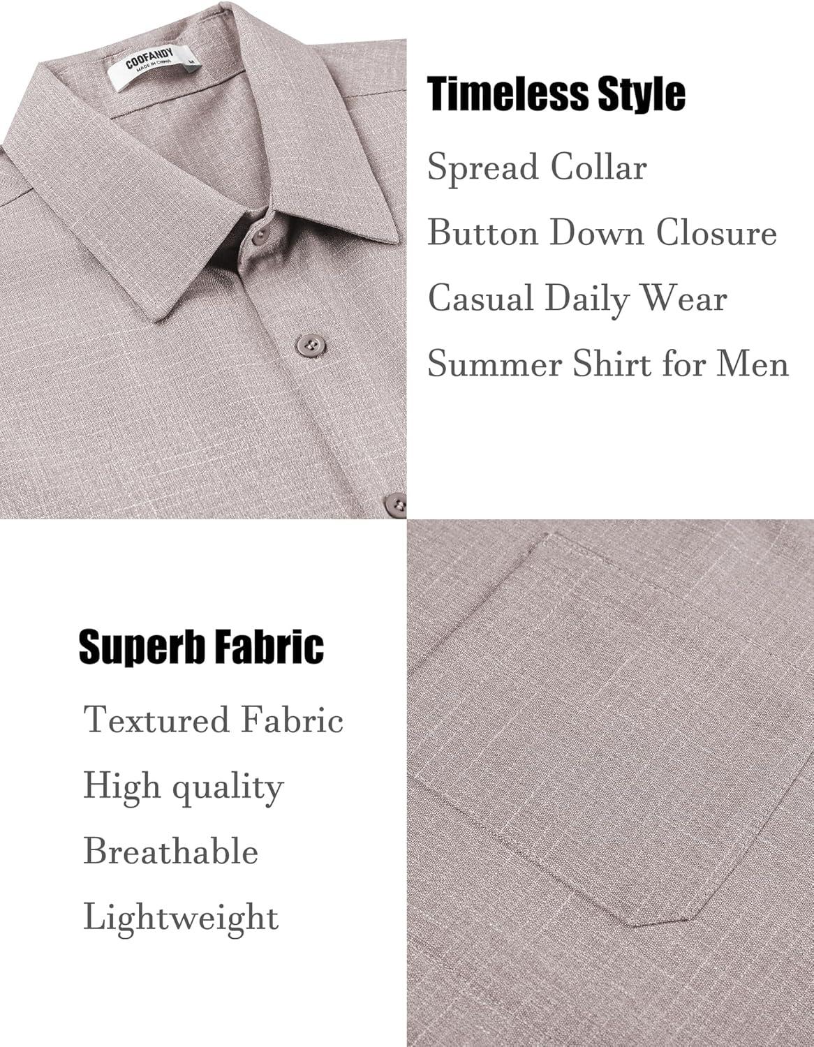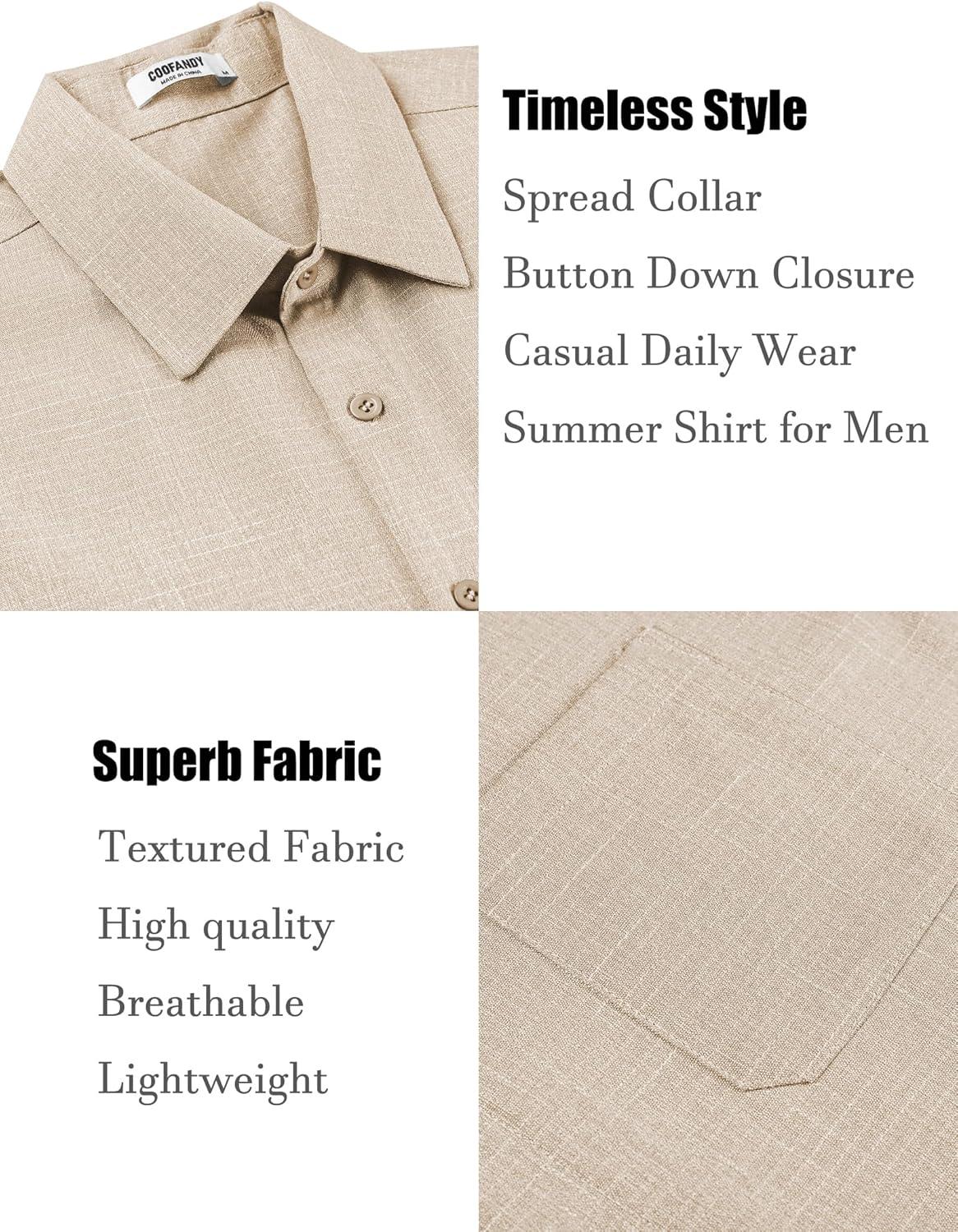 COOFANDY Men’s Linen Shirts Short Sleeve Casual Shirts Summer Beach Button Down Shirts with Pocket(Champagne)