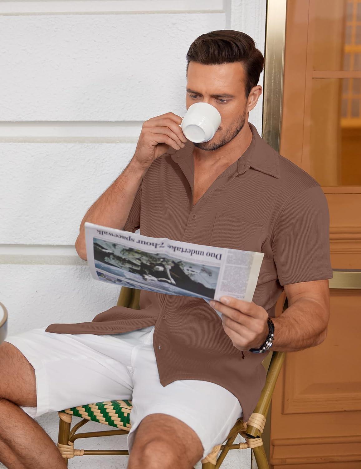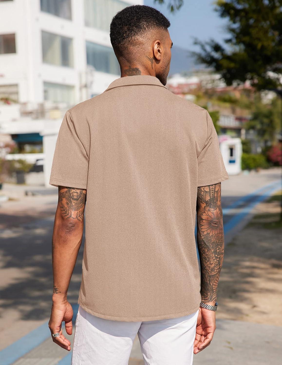 COOFANDY Men’s Knit Button Down Shirts Casual Short Sleeve Polo Shirt Summer Beach Shirts with Pocket(Porcini)