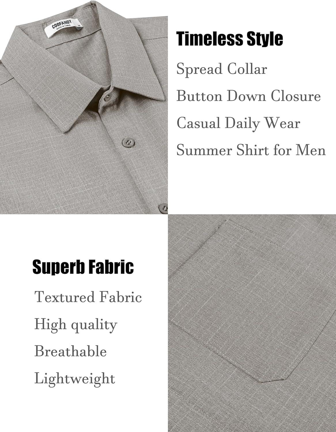 COOFANDY Men’s Linen Shirts Short Sleeve Casual Shirts Summer Beach Button Down Shirts with Pocket(Light Grey)