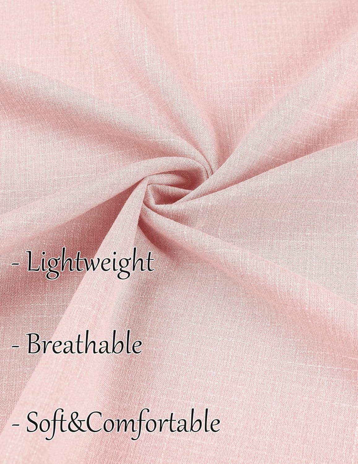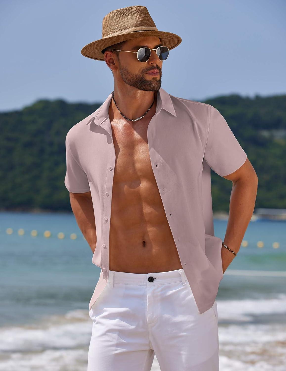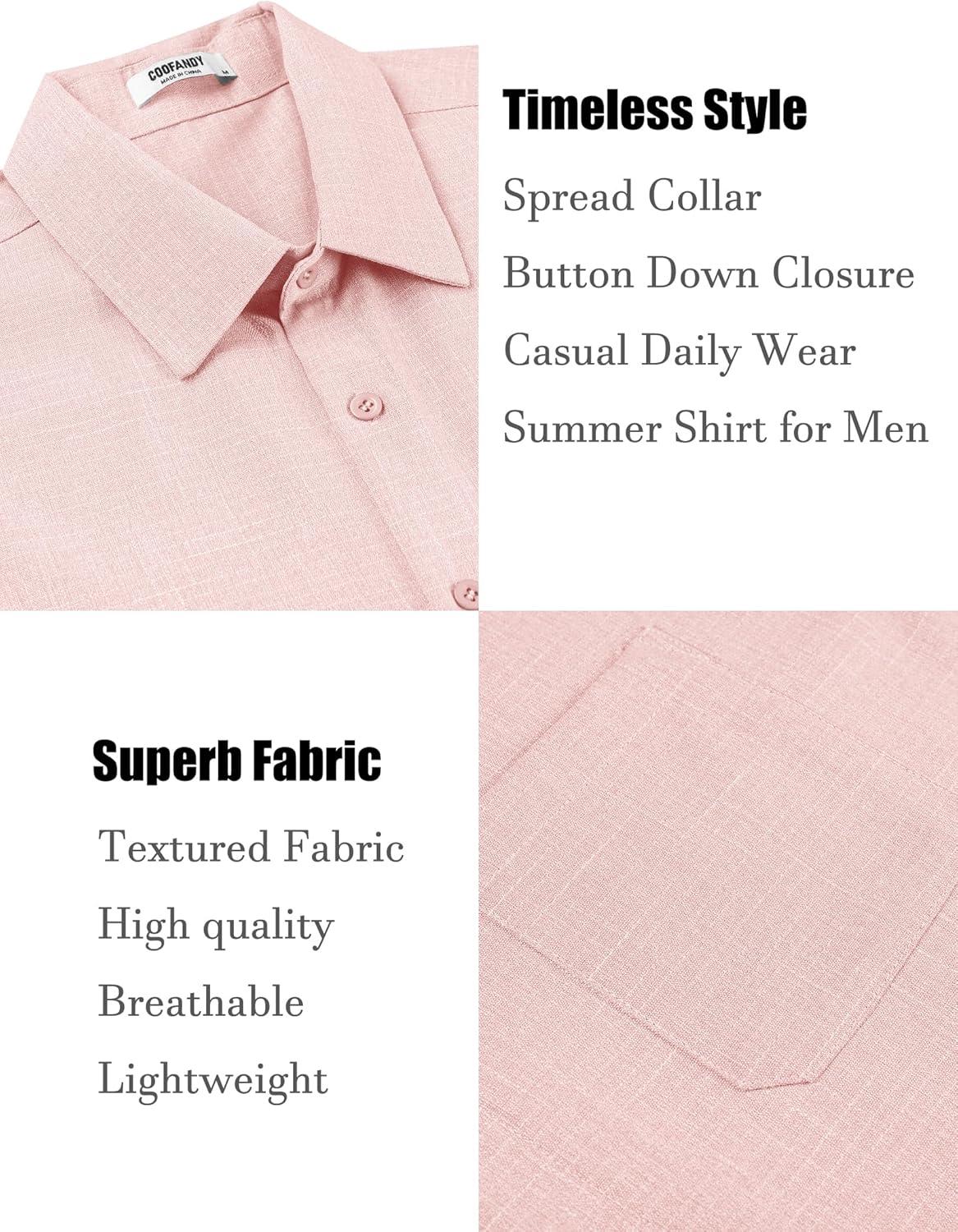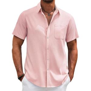 COOFANDY Men’s Linen Shirts Short Sleeve Casual Shirts Summer Beach Button Down Shirts with Pocket(Light Pink)