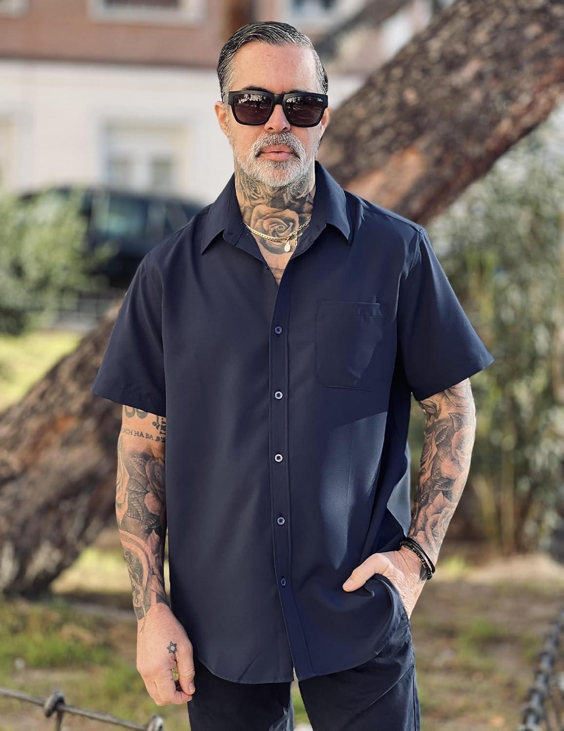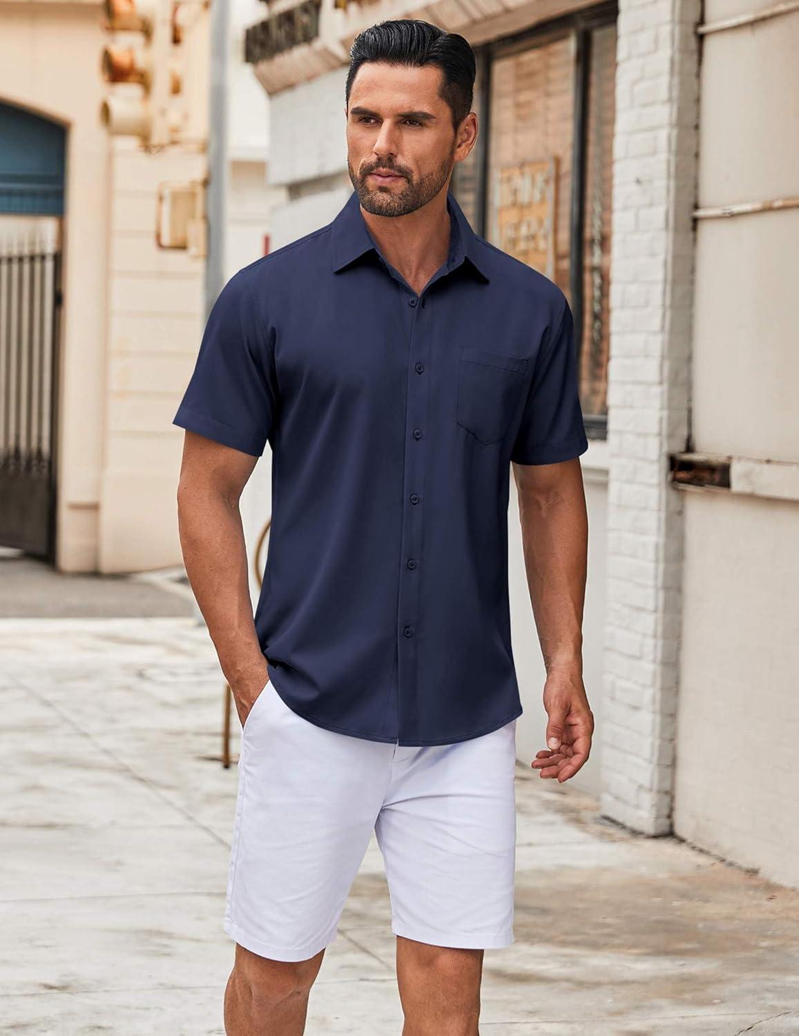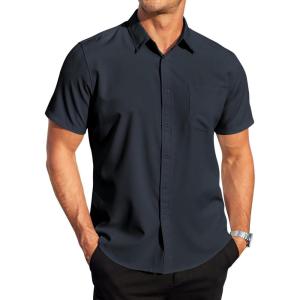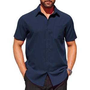 COOFANDY Men’s Dress Shirt Short Sleeve Button Down Shirts with Pocket(Navy Blue)