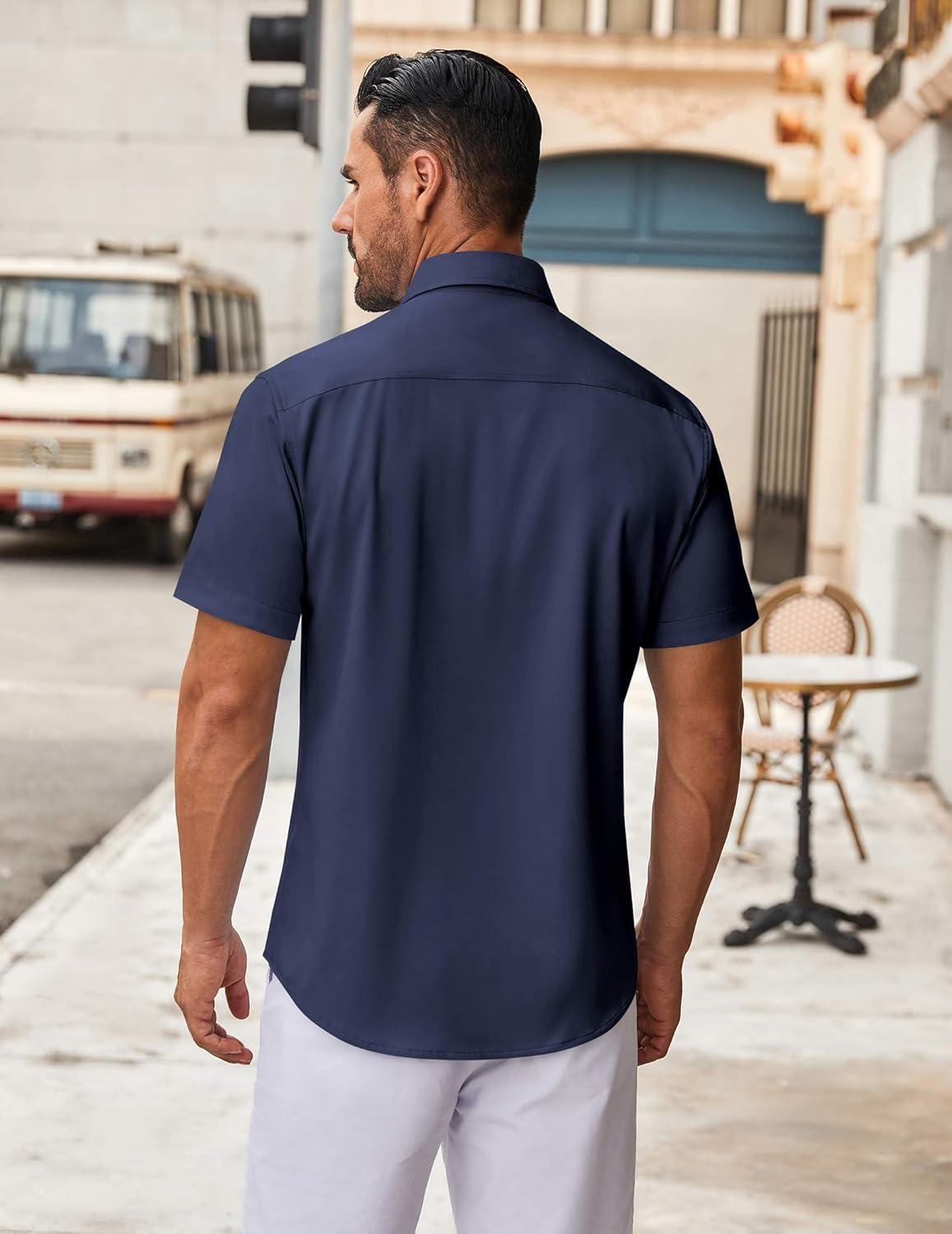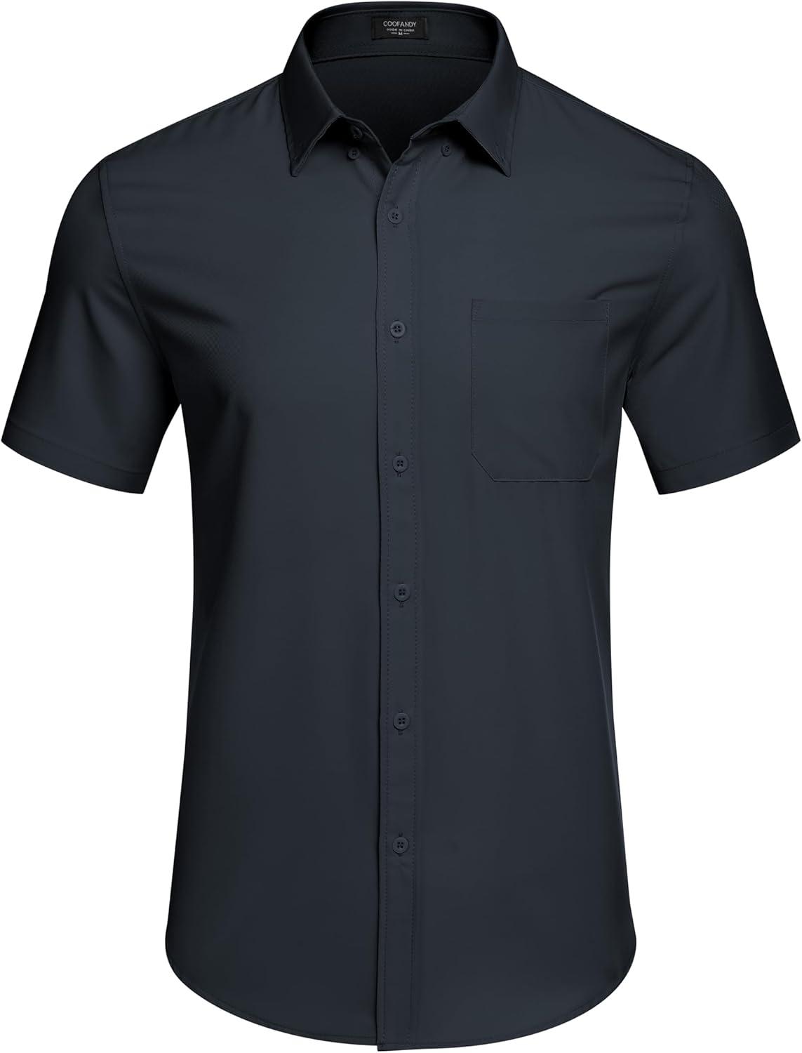 COOFANDY Mens Short Sleeve Dress Shirts Wrinkle Free Button Down Shirts Stain Shield Shirts with Pocket(Navy Blue)