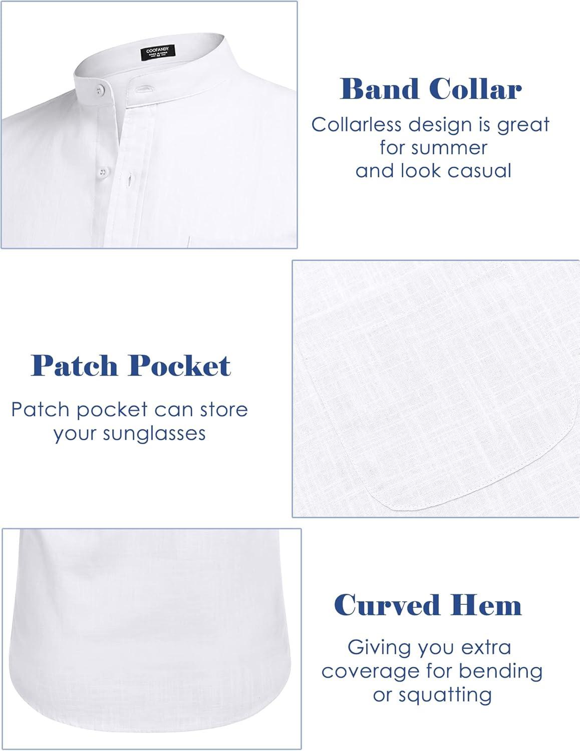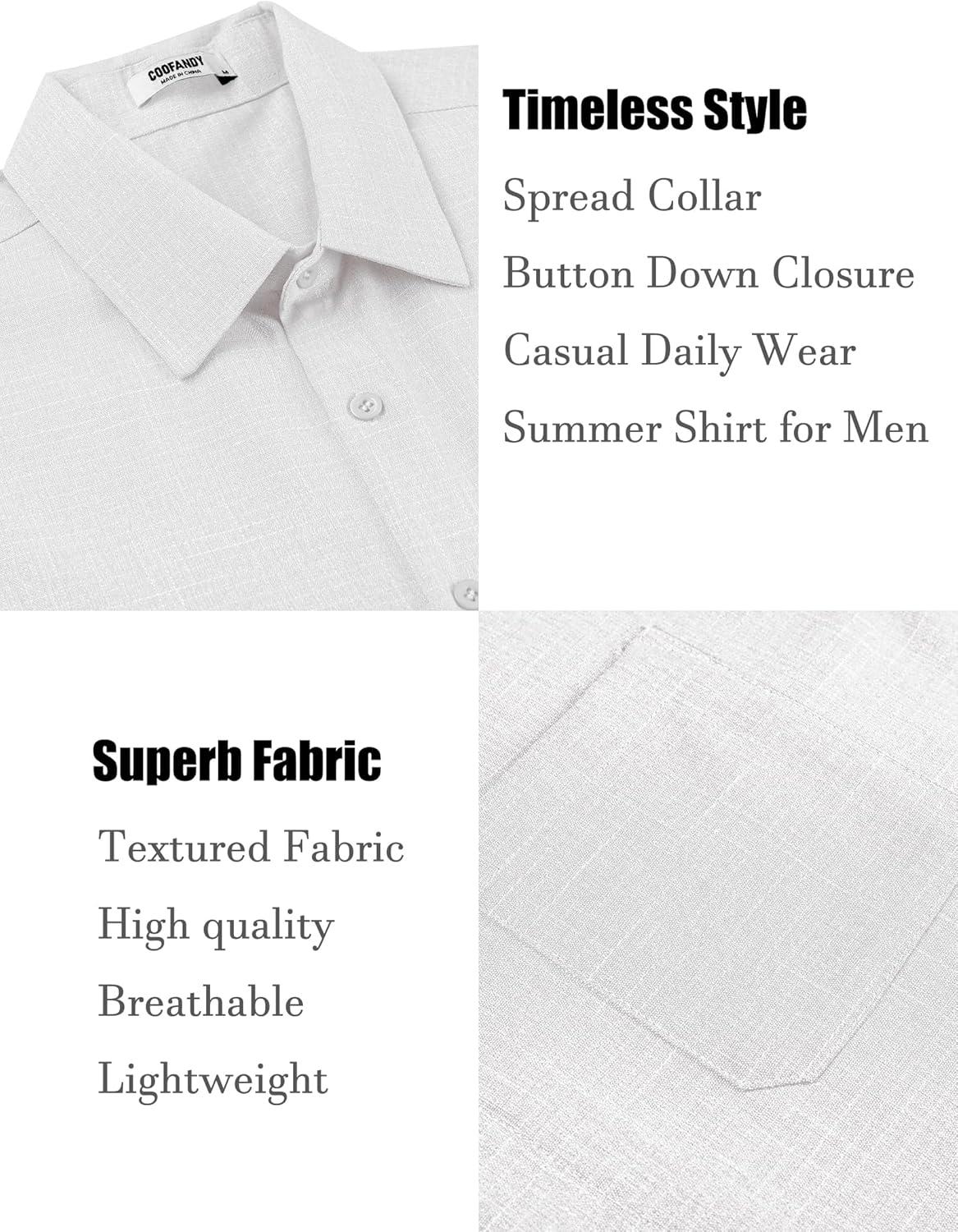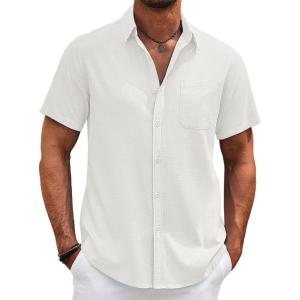 COOFANDY Men’s Linen Shirts Short Sleeve Casual Shirts Summer Beach Button Down Shirts with Pocket(White)