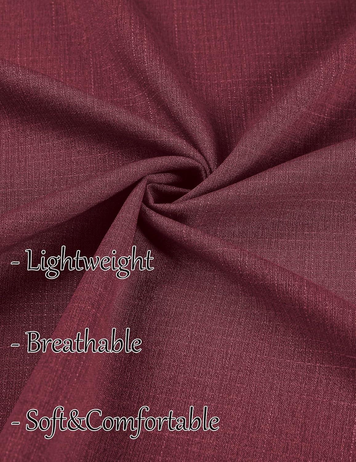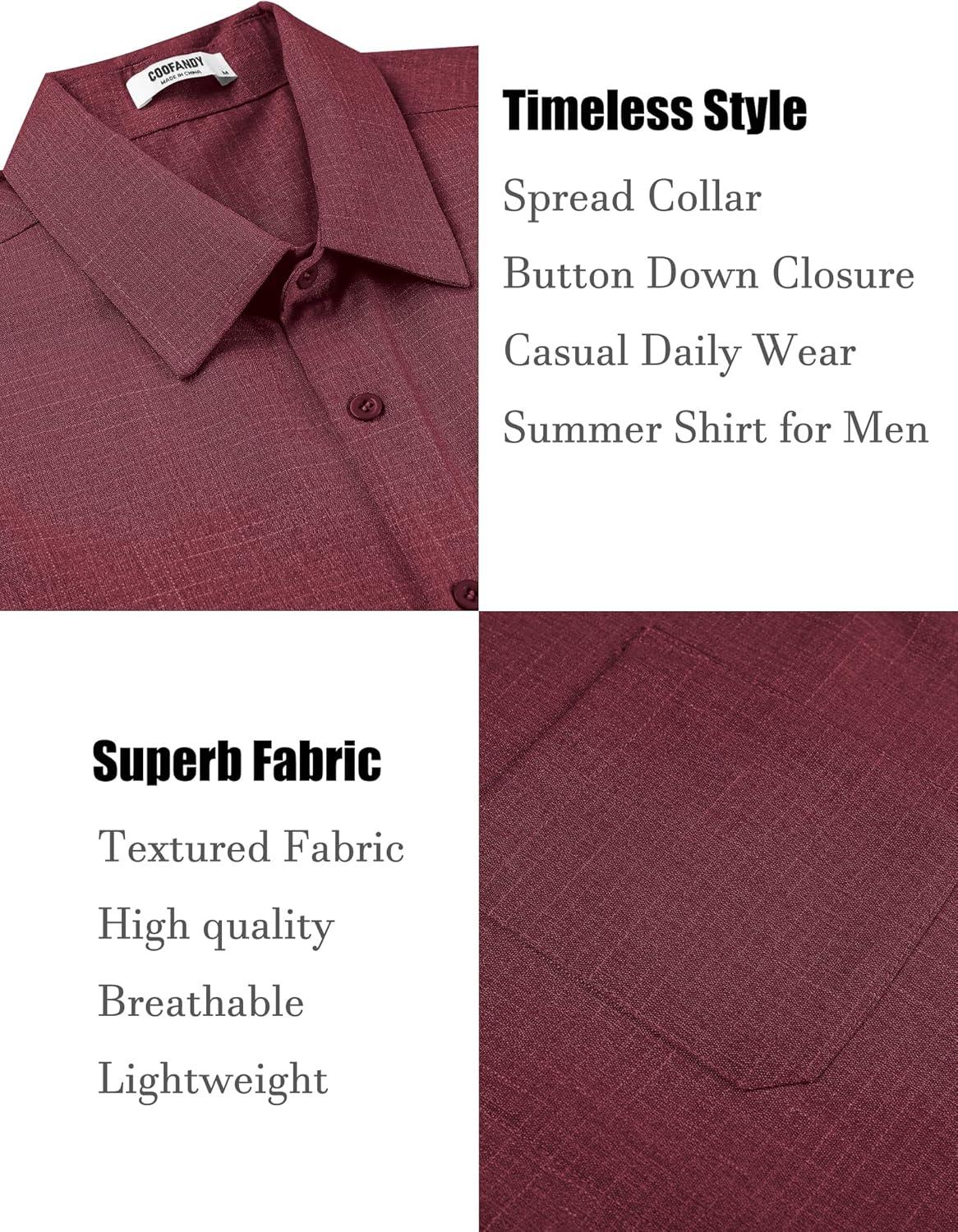 COOFANDY Men’s Linen Shirts Short Sleeve Casual Shirts Summer Beach Button Down Shirts with Pocket(Wine Red)