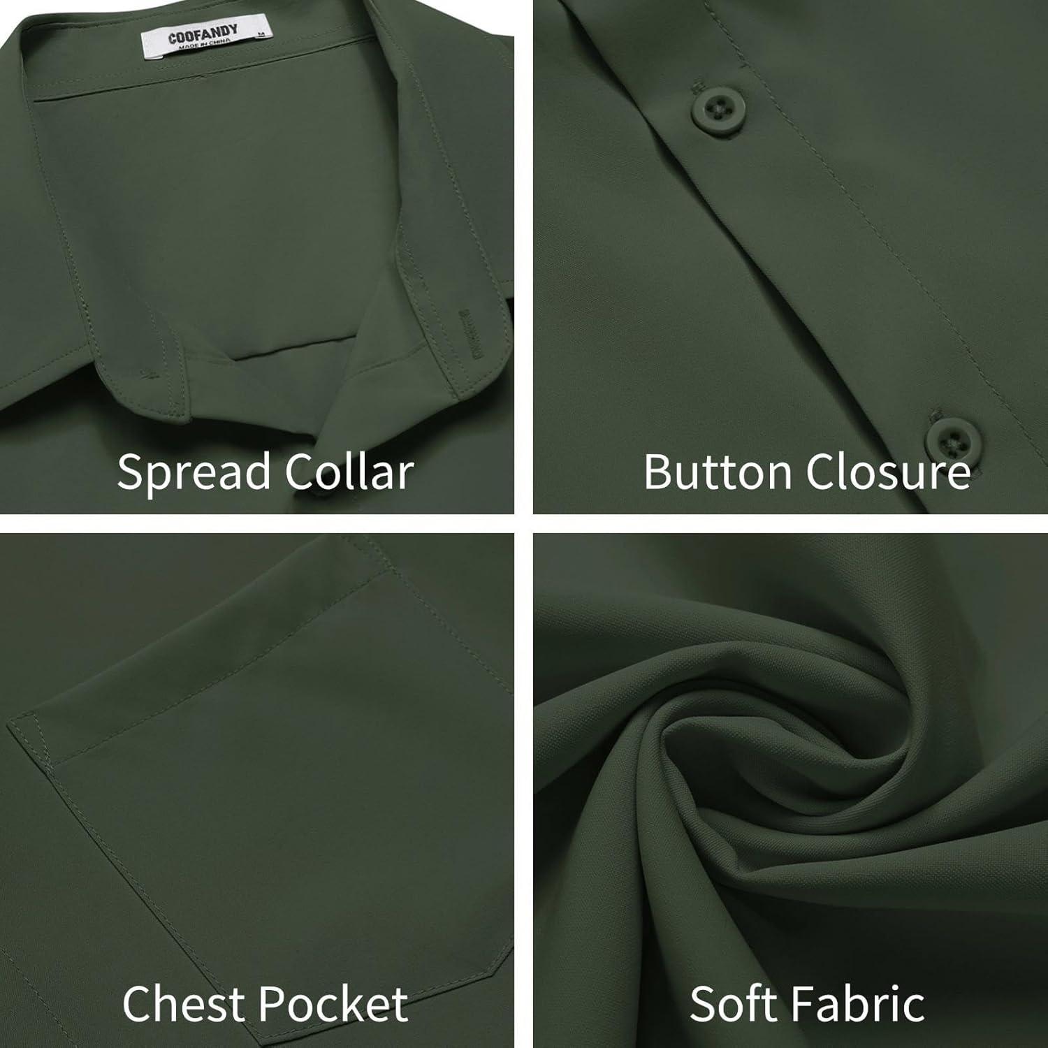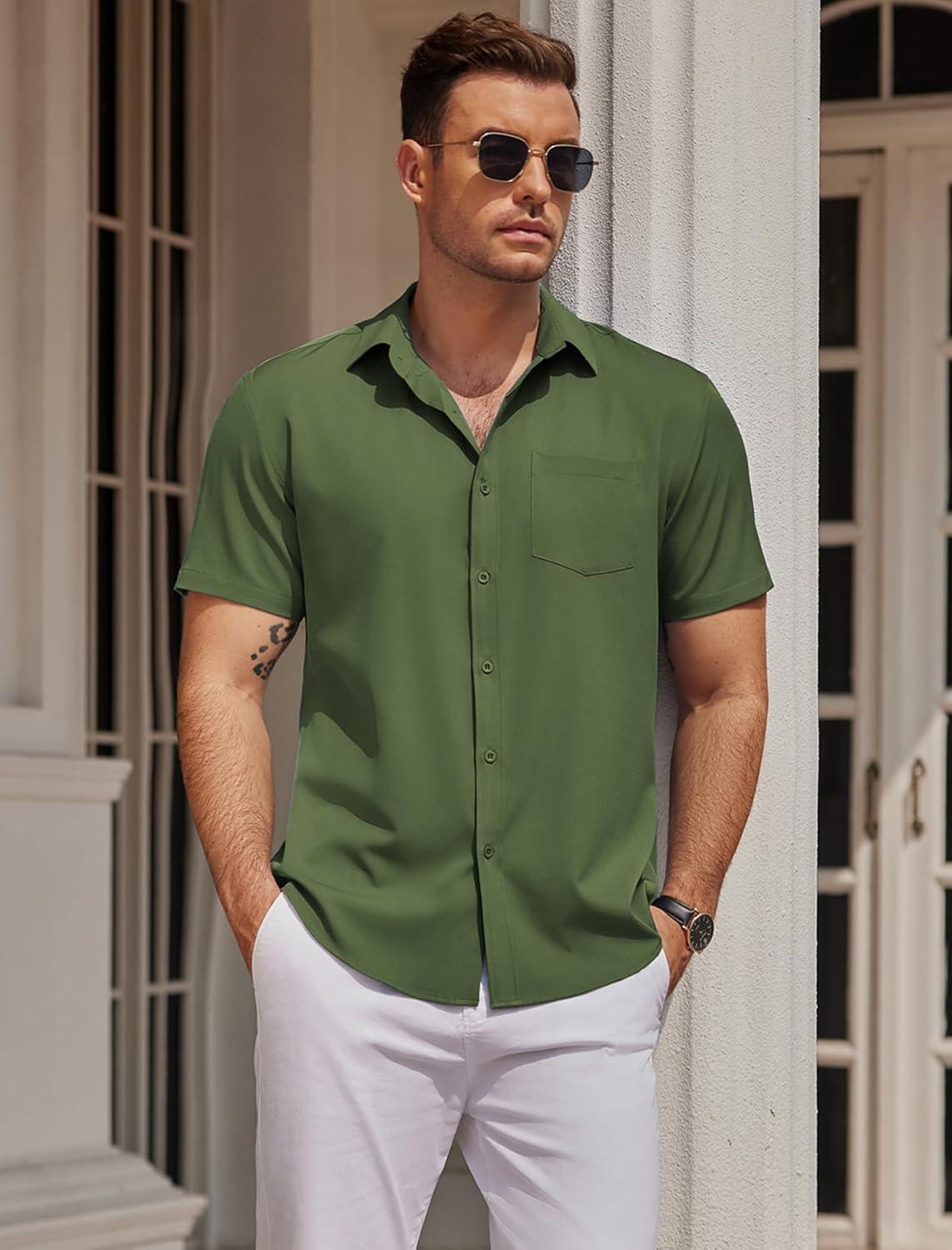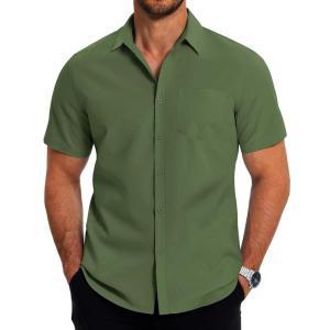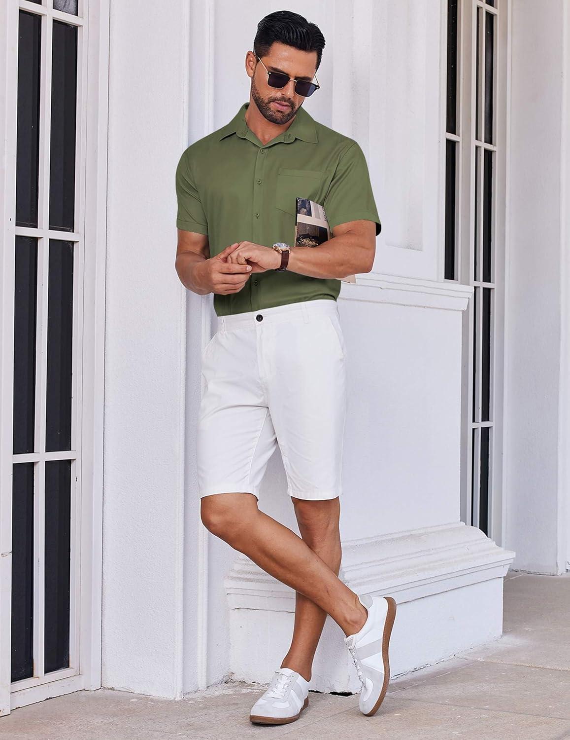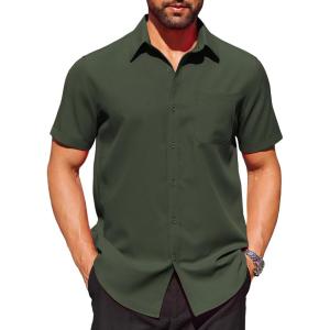 COOFANDY Mens Short Sleeve Button Down Shirt Wrinkle Free Dress Shirts Casual Summer Untucked Shirt(Army Green)