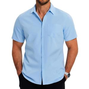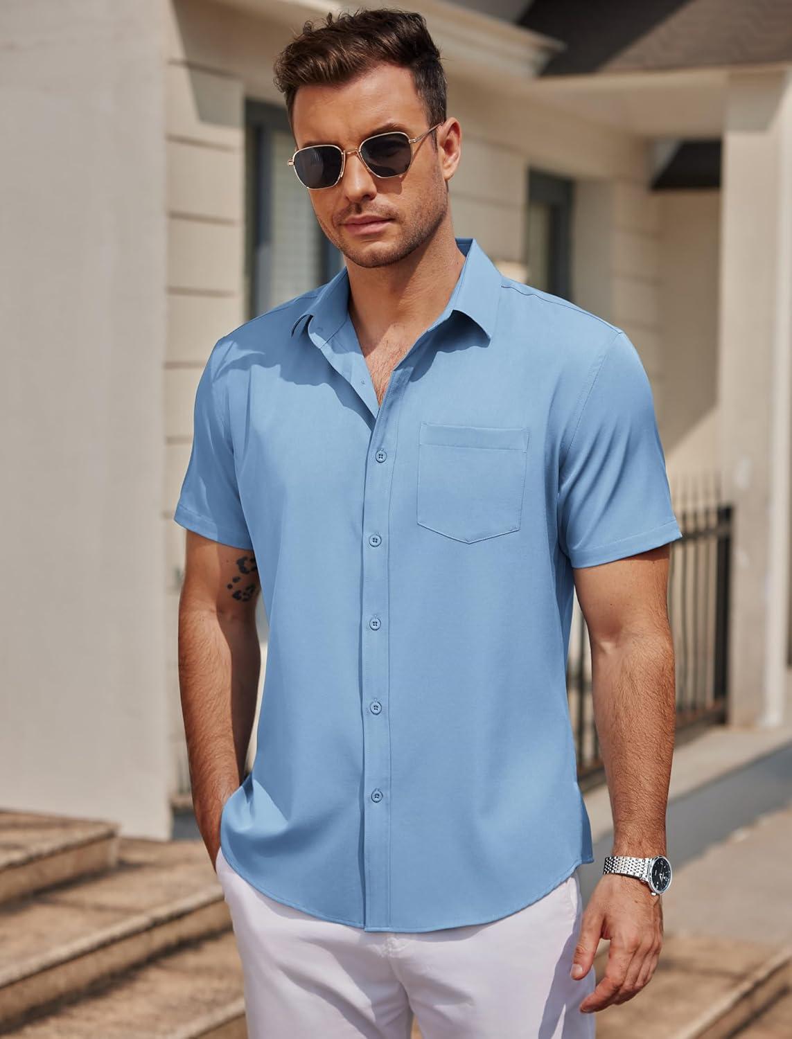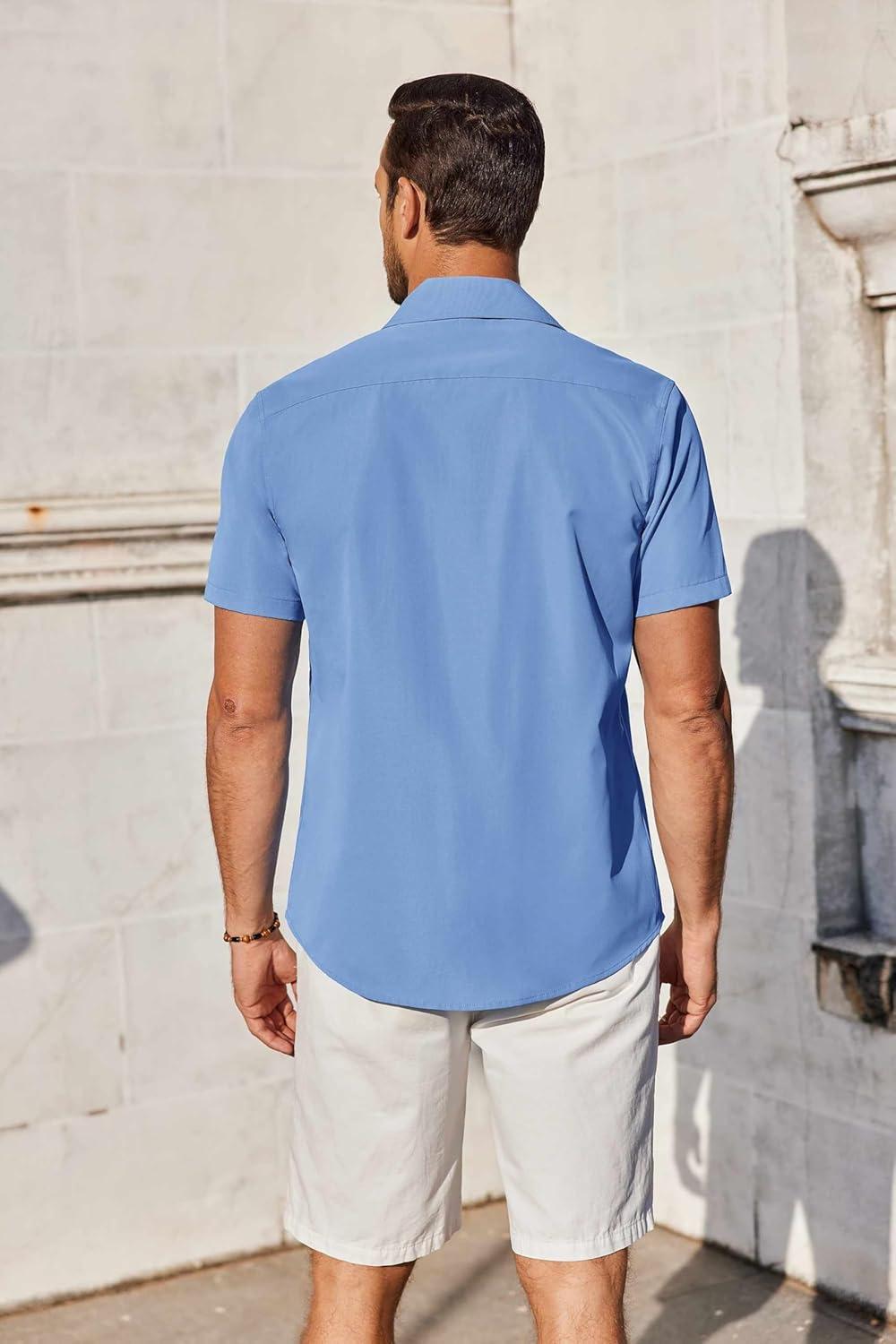 COOFANDY Men’s Dress Shirt Short Sleeve Button Down Shirts with Pocket(Light Blue)