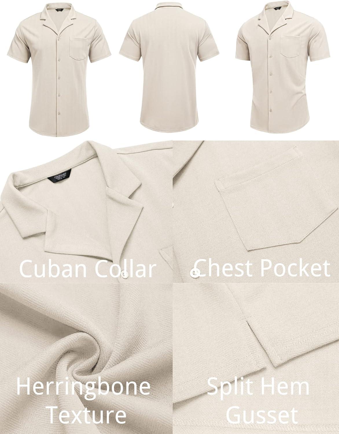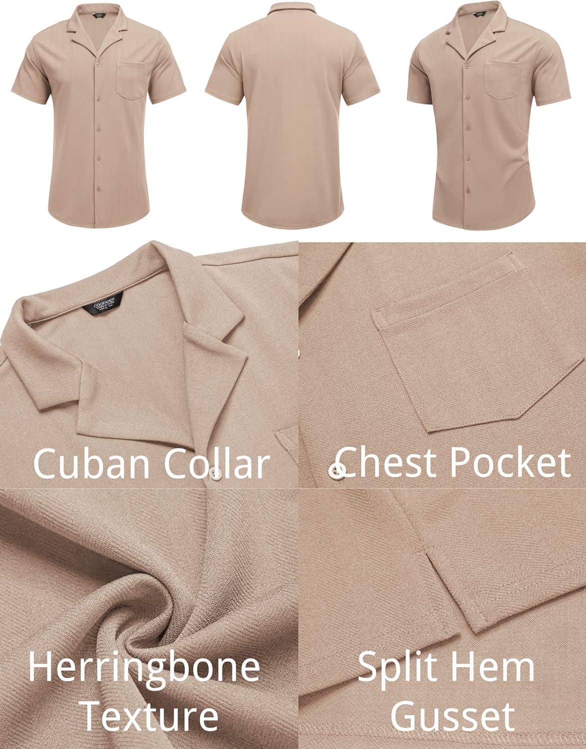 COOFANDY Men’s Wrinkle Free Untucked Cuban Shirt Business Casual Button Down Shirts Short Sleeve Shirt(Beige)