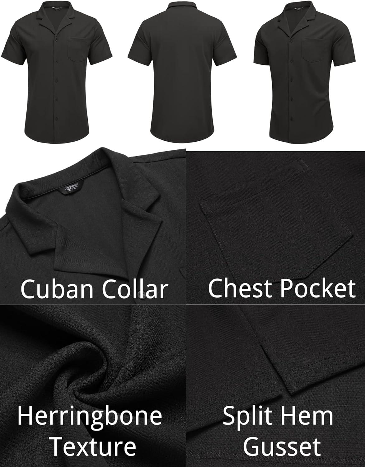 COOFANDY Men’s Wrinkle Free Untucked Cuban Shirt Business Casual Button Down Shirts Short Sleeve Shirt(Black)