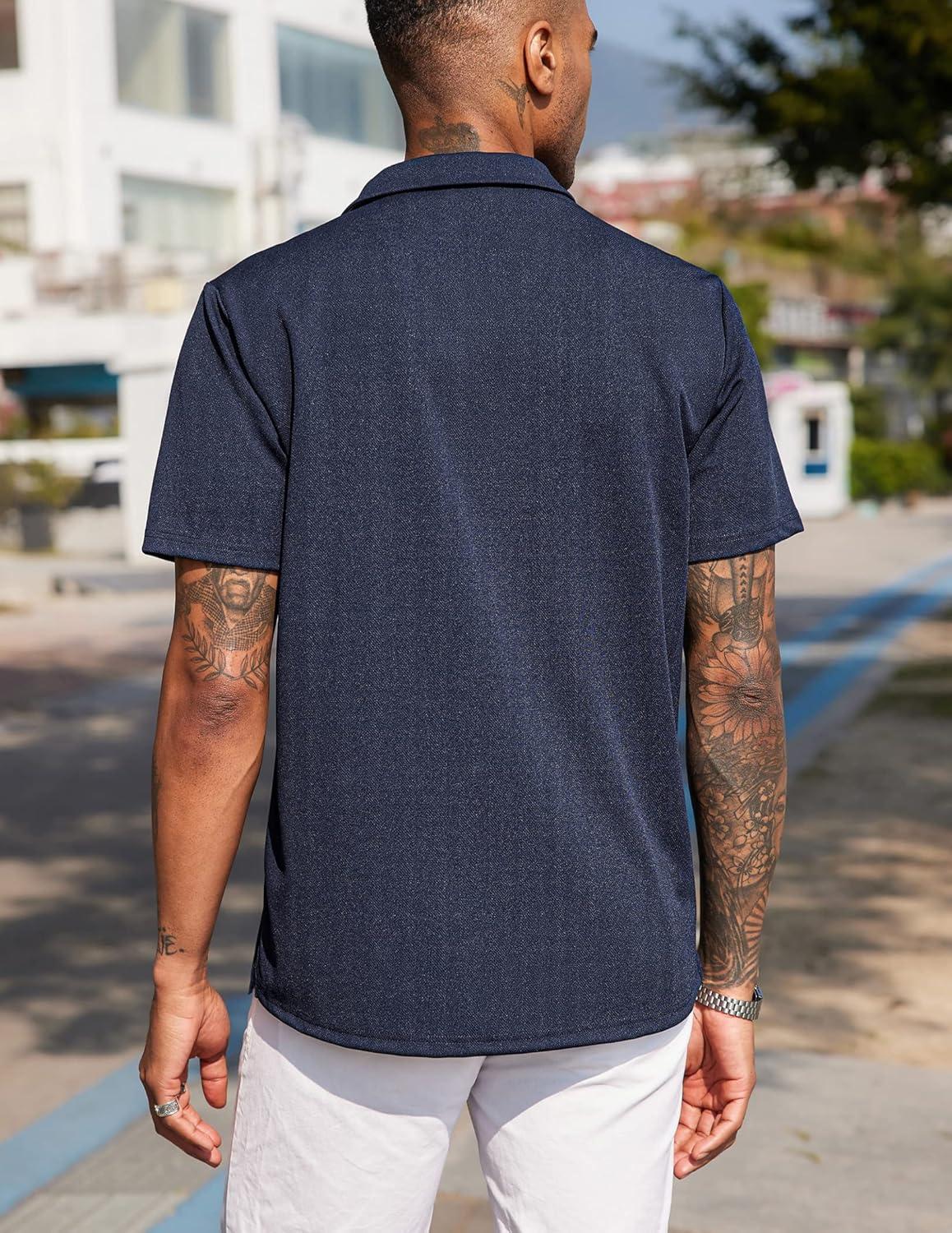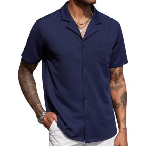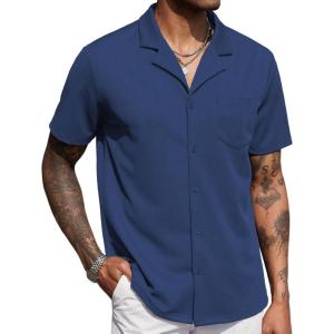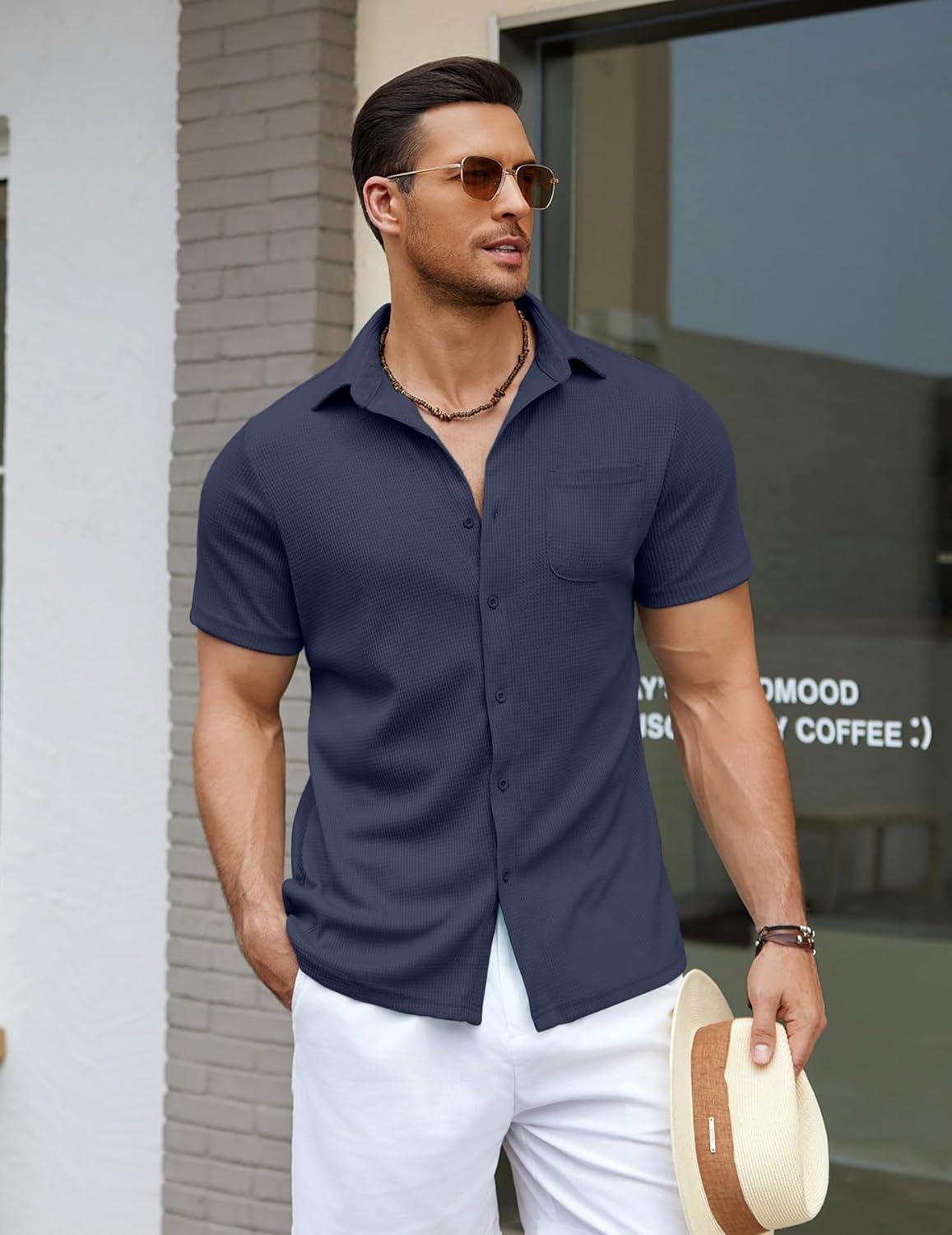 COOFANDY Mens 2025 Fashion Textured Shirts Short Sleeve Summer Beach Shirt Casual Button Down Shirts(Navy Blue)