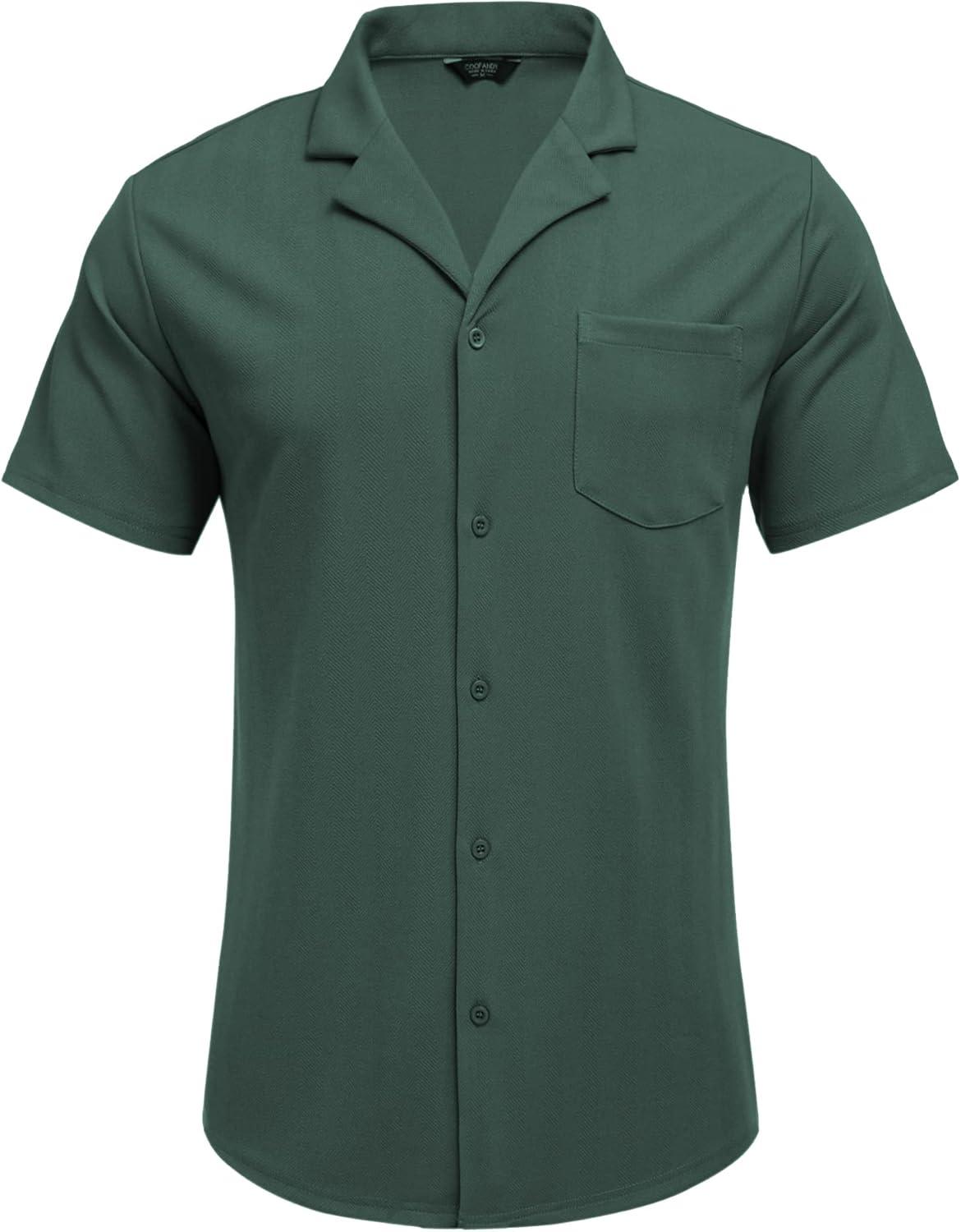 COOFANDY Men’s Wrinkle Free Untucked Cuban Shirt Business Casual Button Down Shirts Short Sleeve Shirt(Dark Green)