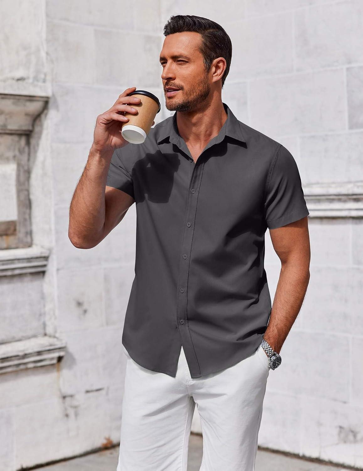 COOFANDY Mens Casual Button Down Shirts Lightweight Short Sleeve Shirts(Dark Gray)