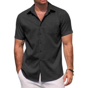 COOFANDY Mens Short Sleeve Button Down Shirts Casual Summer Beach Shirt Wedding Dress Shirts with Pocket(Dark Grey)